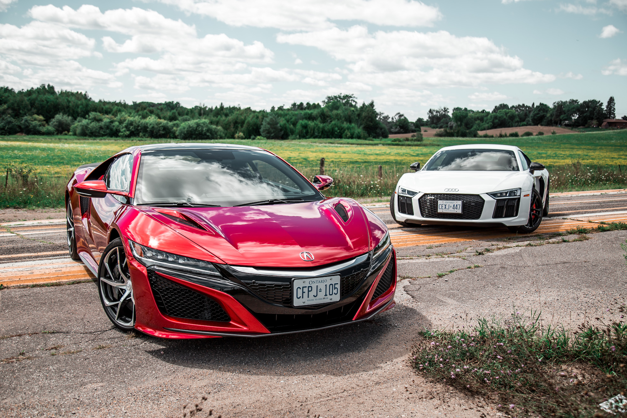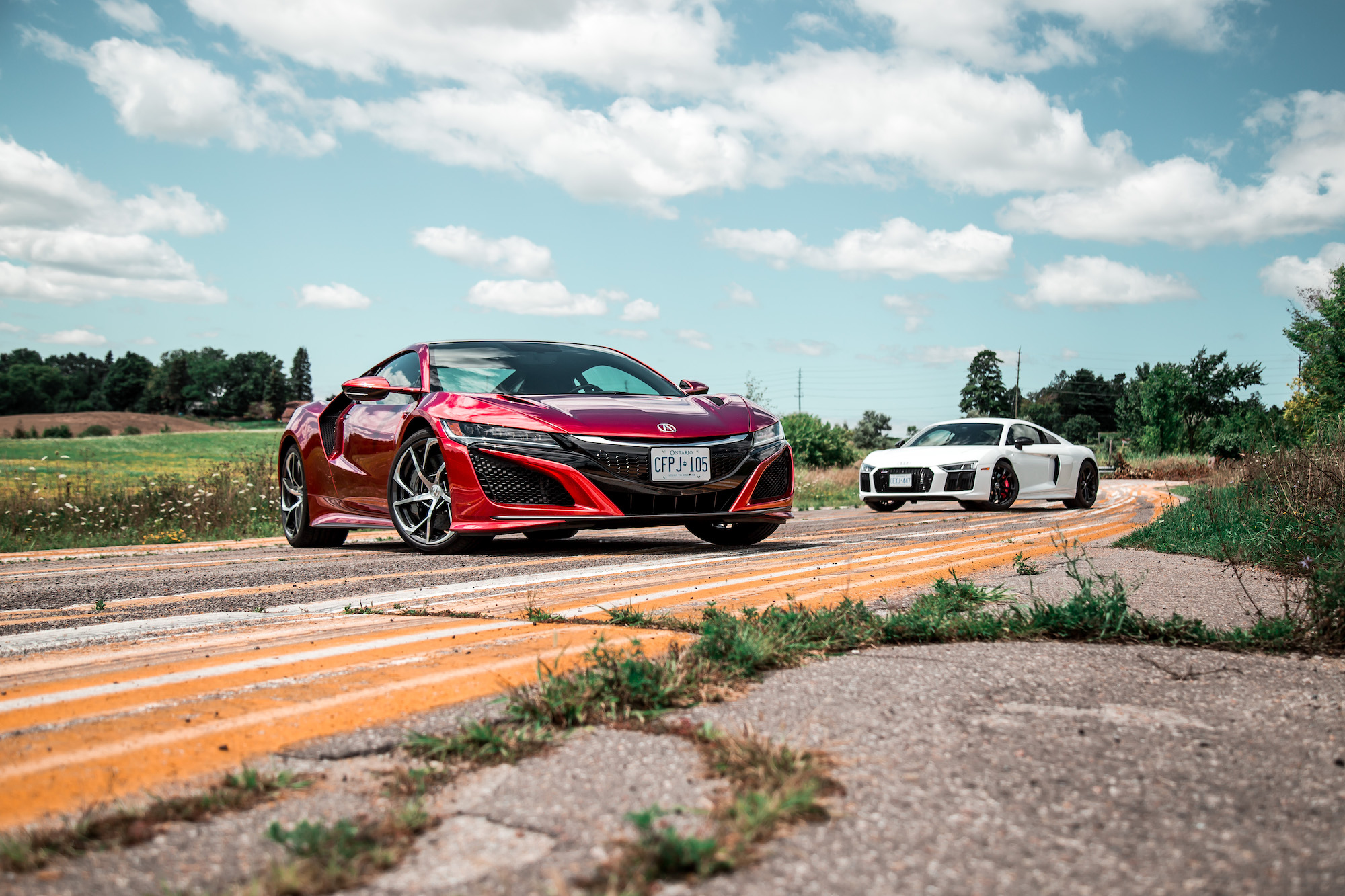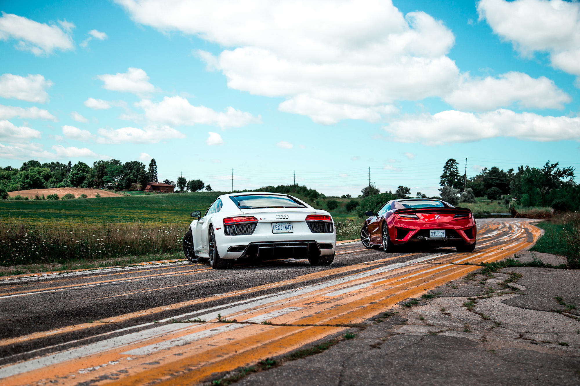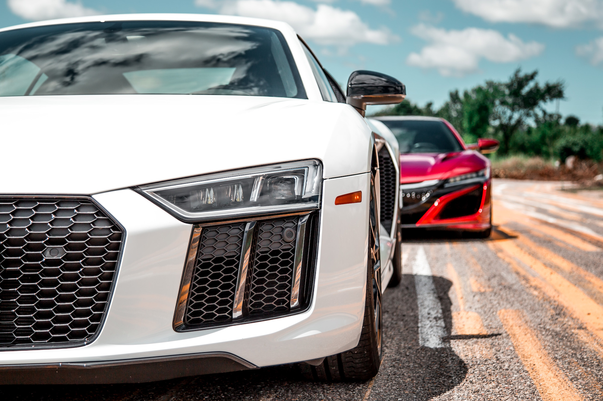 The speed is painless to manage, and while I found the NSX to be more reactive and fluid than the R8 through its steering, it is numbed out like a Playstation controller without rumble feedback. It’s light, perhaps too light, but feels appropriate when maneuvering the NSX on a day-to-day basis. The rear-driven R8 on the other hand delivers more feedback in terms of available grip through its uncorrupted steering, purified and released from the chains of torque, and thus gave us more confidence behind the wheel when traction dwindled.