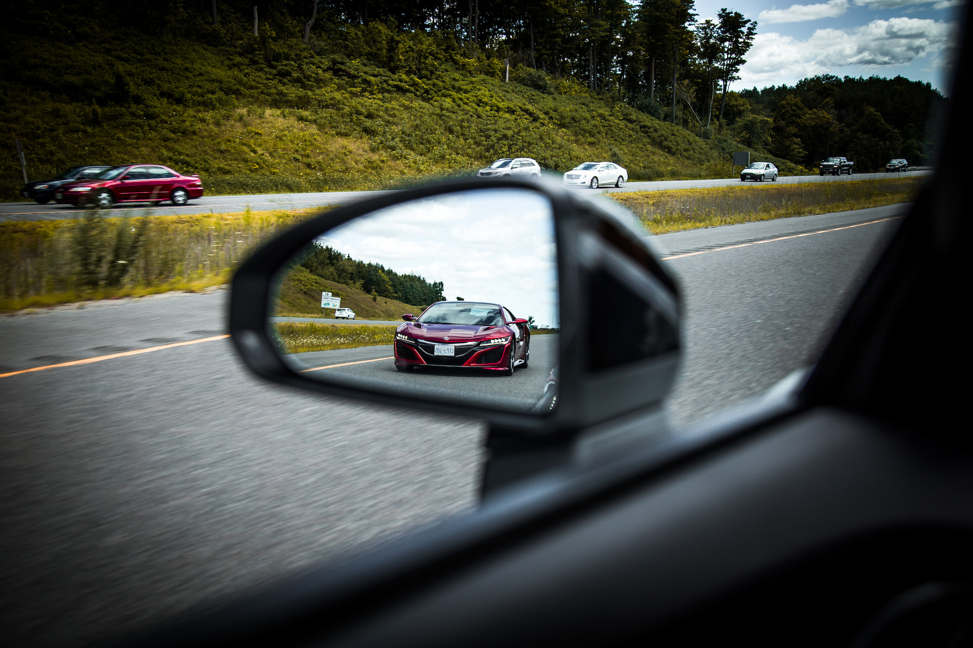 But the NSX does not trade any of these positive “comfort” attributes for an inferior drive. In fact, I enjoyed carving up back roads in the NSX far more than the R8. Reason being are those electric motors that raised so many eyebrows in the first place. While turbocharged motors are known for their initial lag, electric motors have solved the problem by offering propulsion while the turbos take their time spooling. As a result, the NSX is wickedly quick off the line, thrusting occupants forward in a violent manner that the R8 simply cannot replicate, as the majority of the Audi’s power lives in the mid to upper range. The NSX builds speed instantaneously and effortlessly, and the intensity never seems to fade. Not only that, but it never struggles to summon this multi-elemental power, whereas the R8 always requires a bit of elbow grease and unwinding to extract its potential on the street. At low speeds, the R8 just didn’t feel all that special, but the NSX felt memorable at all velocities.