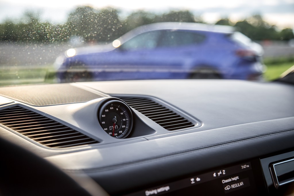 Our Cayenne GTS Coupe was spec’d out with lap times in mind, and was appropriately equipped with an adaptive air suspension, active roll stabilisation with active electromechanical anti-roll bars (PDCC), torque vectoring, rear-wheel steering that enhances both low-speed maneuverability and high-speed stability, 22-inch wheels, a louder exhaust with less sound deadening in the trunk area, and a carbon fibre roof that lowers the center of gravity.