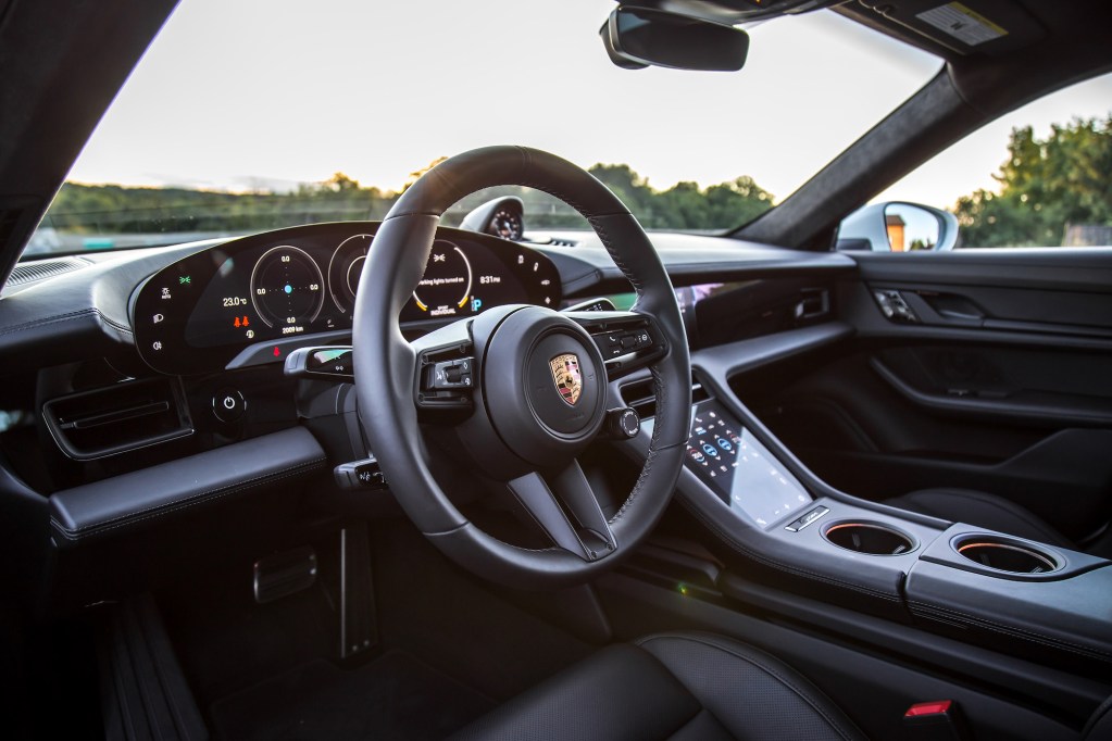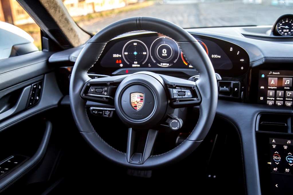 Fingerprints still mar the screens no matter how diligent you are with cleaning, though they’re bright enough that they won’t wash out easily under heavy sunlight. Those who prefer the direct, tactile, and focused controls of buttons will be disappointed, but those looking towards the future of technology will find much to love. Still, there are enough cues so you won’t forget that you’re sitting in a sporty Porsche, like the thin-framed upright steering wheel, sturdy, albeit somewhat unsubstantial materials, and supportive seats. The build quality is exceptional, the fixed panoramic roof is expansive, and the Taycan does a stellar job balancing out the right kind of simplistic and futuristic EV vibe that it wants to convey.