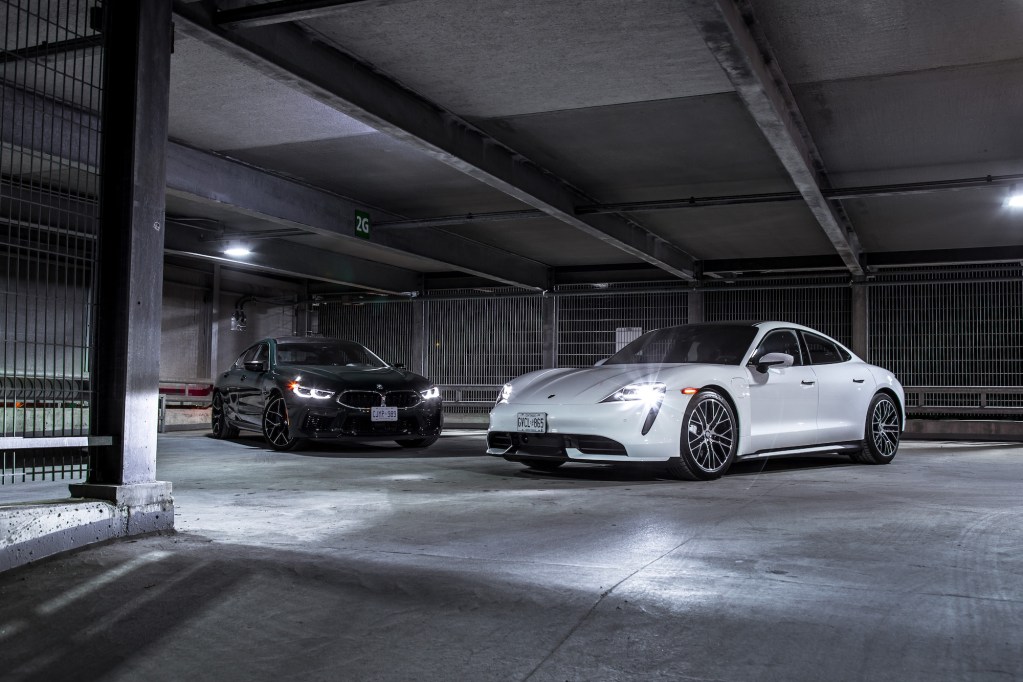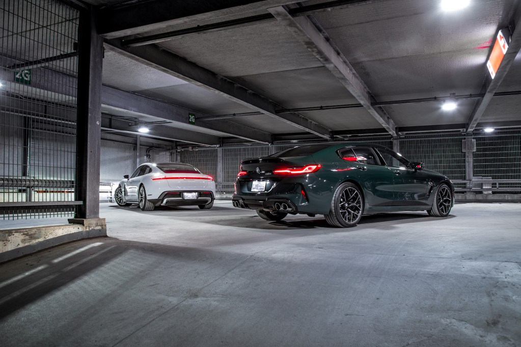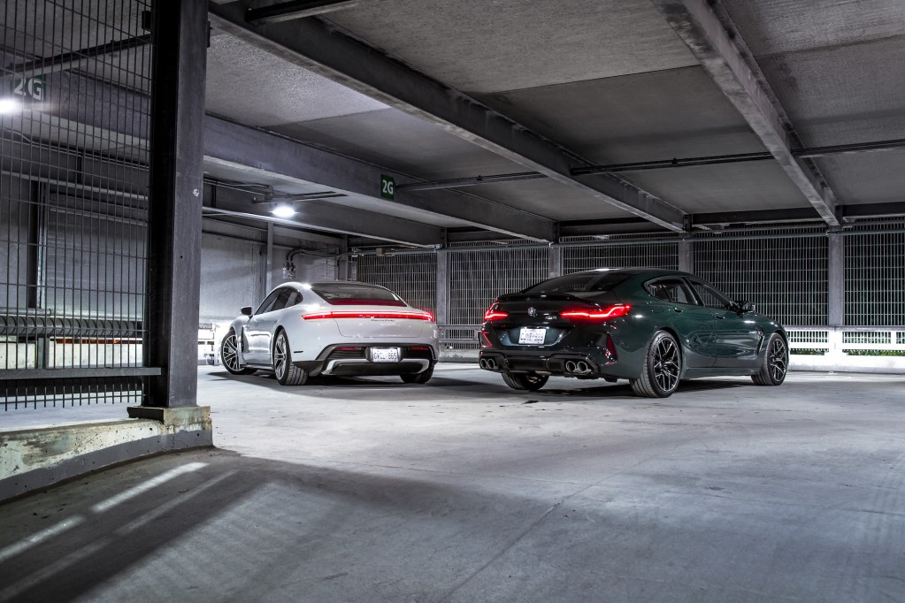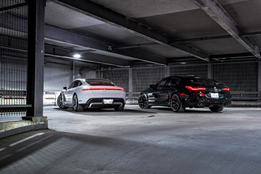 Porsche says the Taycan Turbo has a range of 450 km, while EPA claims it’s more along the lines of 320 km. That should be more than enough for the average driver commuting to work, but far from what’s needed to quell concerns for lengthy road trips or when access to chargers is limited. The BMW M8? It’s 76-litre fuel tank and combined highway and city average of 13.8 L/100km gives us a range estimate of 550 km.
