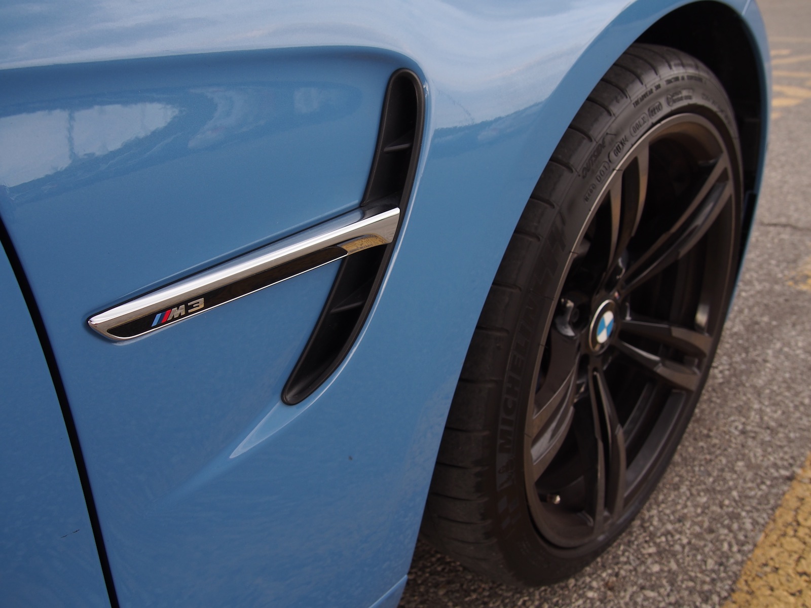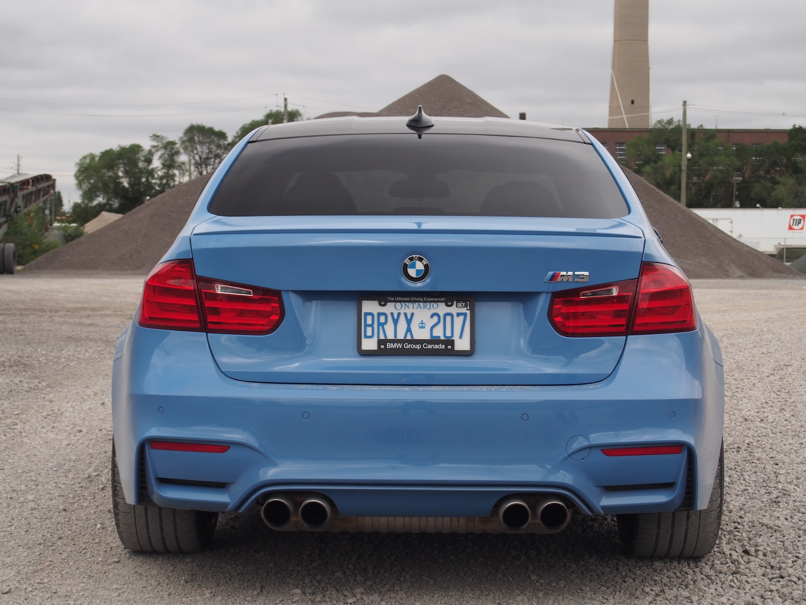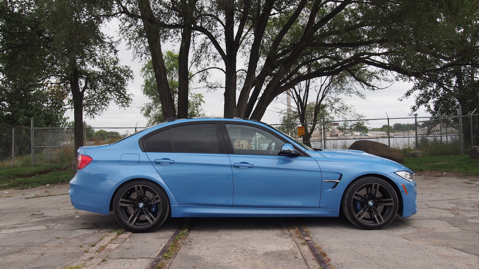 If I handed you $100,000 to spend on a BMW M3, how would you spec it up? What colour would it be painted, Austin Yellow or Yas Marina Blue like the one shown above? Automatic or manual transmission? 4-door sedan or 2-door coupe? This is what automotive journalists like us daydream about while we’re waiting in line at Starbucks ready to order that seasonal pumpkin spice latte. We occasionally peer into the parking lot in hopes of spotting a rare exotic or a new 2015 model that just rolled off the showroom floors. And then we spot our press vehicle for the week – one that can range from a low-end compact to a high-spec convertible. But for this sunny autumn week in Toronto, we’re test driving the 2015 BMW M3 Sedan and I couldn’t be more delighted. Daydream no more.