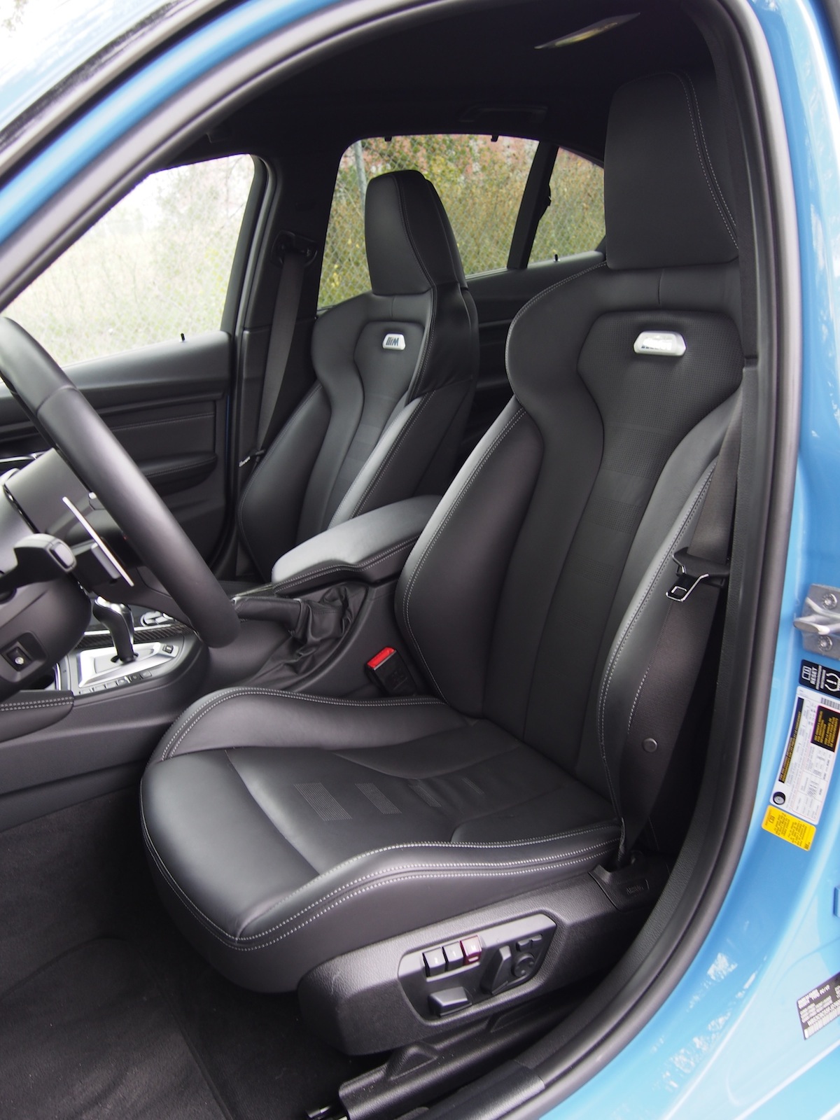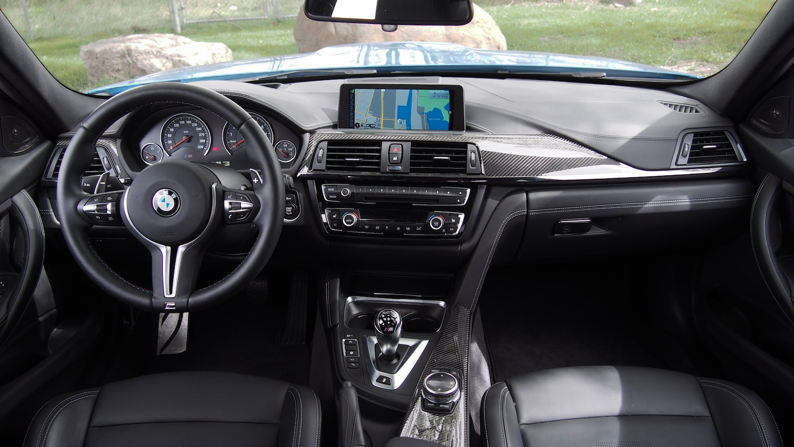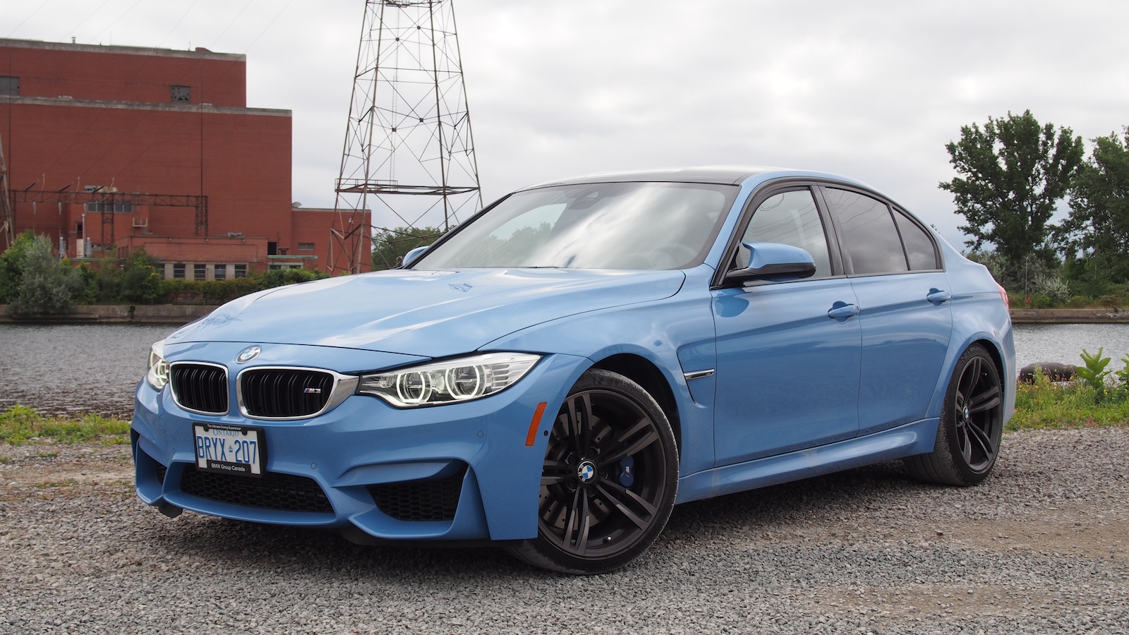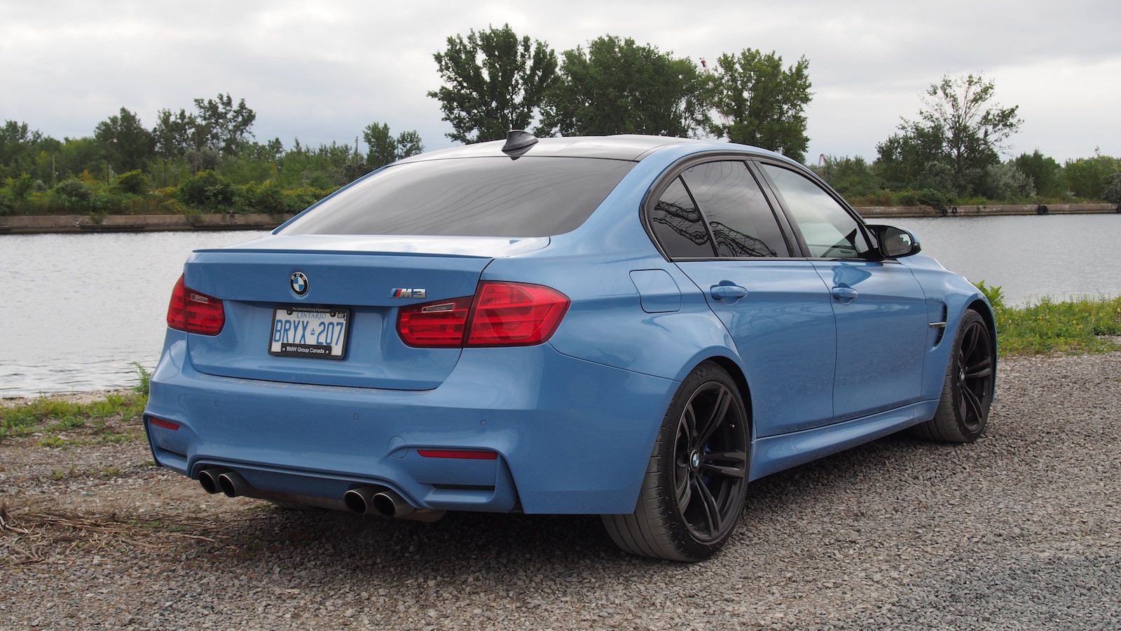 If I handed you $100,000 to spend on a BMW M3, how would you spec it up? What colour would it be painted, Austin Yellow or Yas Marina Blue like the one shown above? Automatic or manual transmission? 4-door sedan or 2-door coupe? This is what automotive journalists like us daydream about while we’re waiting in line at Starbucks ready to order that seasonal pumpkin spice latte. We occasionally peer into the parking lot in hopes of spotting a rare exotic or a new 2015 model that just rolled off the showroom floors. And then we spot our press vehicle for the week – one that can range from a low-end compact to a high-spec convertible. But for this sunny autumn week in Toronto, we’re test driving the 2015 BMW M3 Sedan and I couldn’t be more delighted. Daydream no more.