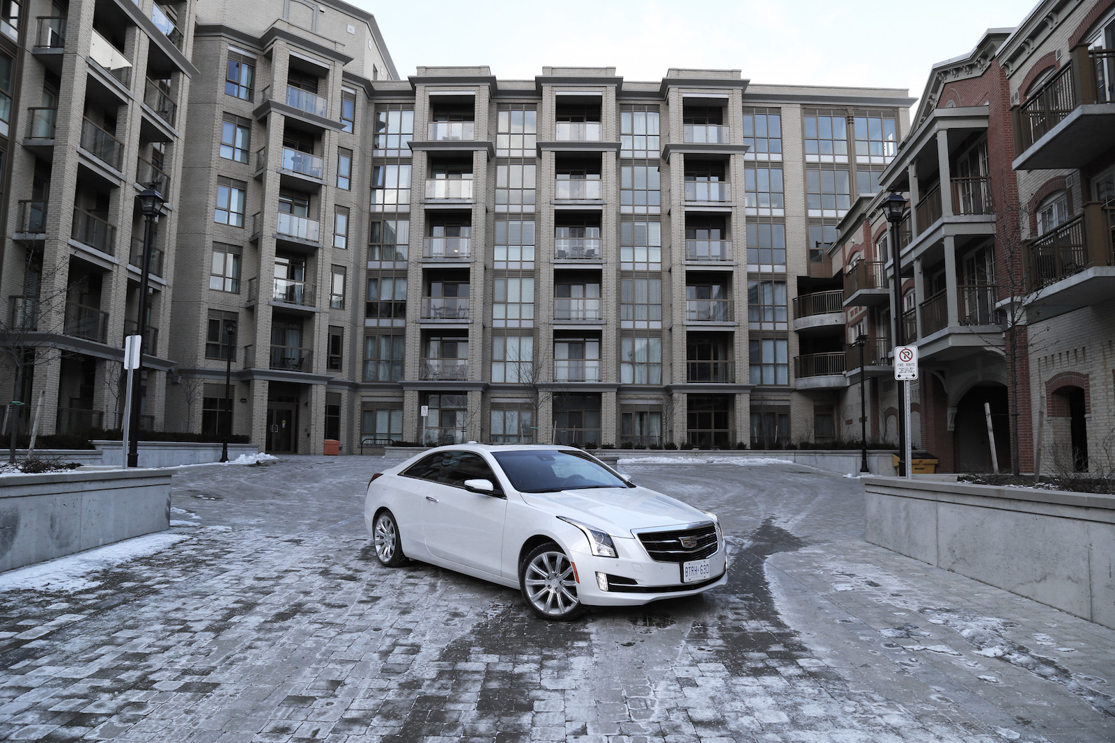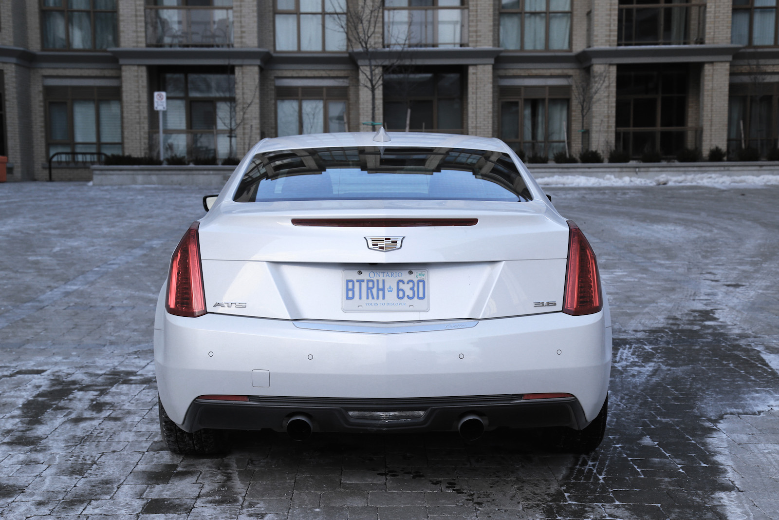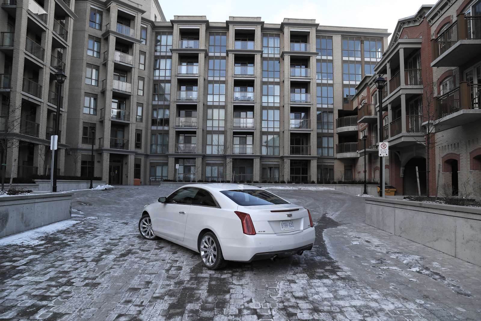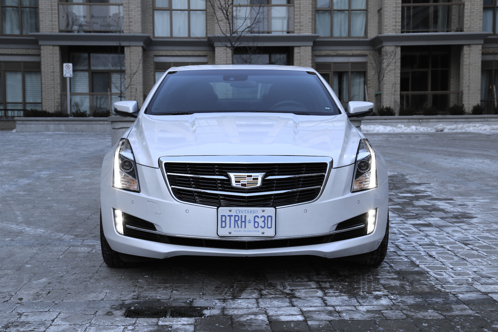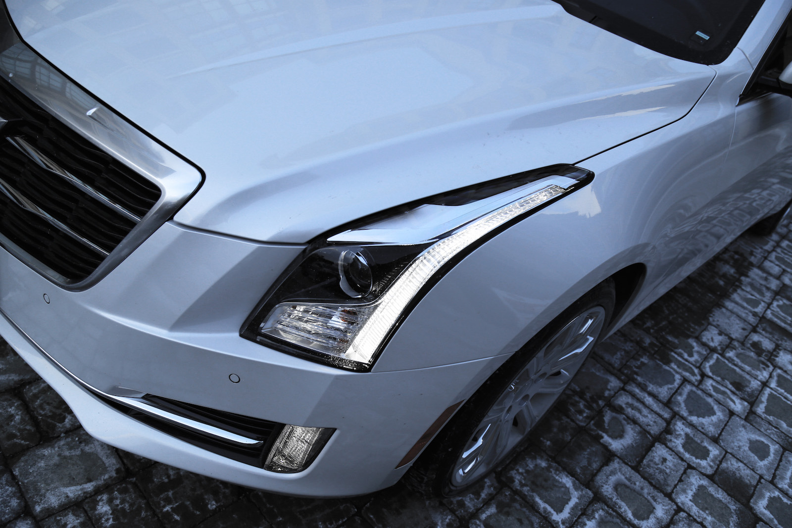 It was our first time driving with Cadillac’s new unwreathed crest. We like it, but we’re not as crazy about how the rest of the ATS Coupe looks. It has a wider front and rear track than the sedan, new sheetmetal on the doors, roof, fenders and trunk lid, but it’s not as exciting as we’d hoped. You can tell that Cadillac played it safe when transitioning the ATS from a 4-door sedan to a 2-door coupe. There’s no more arched hunchback from the previous CTS coupe or aggressive front angles. Instead, the ATS Coupe sports a low profile with an overall conservative demeanor. In my mind, it’s the suit and tie of sports coupes. The lines aren’t offensive and looks rather elegant in Crystal White Tricoat. This is a car you can show up with at the valet looking classy without the cheeky boy-racer looks you’d get from stepping out of a 435i Coupe. And did we mention those beautiful LED lights? After witnessing Acura’s Jewel LED lights on our Acura TLX tester last week, we’ll admit that it’s incredibly hard to choose favourites.