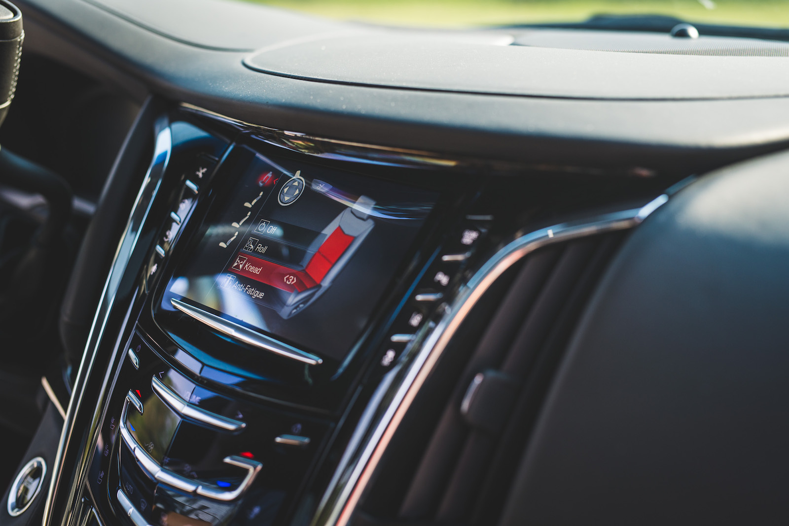 On the bright side, there’s a slotted pocket on top of the center console that acts as a storage area for your phone and doubles as a wireless phone charger. However you’ll need the accompanying adapter for your specific phone, which wasn’t available to us either. CUE – Cadillac’s infotainment system – continues to be aggravating with it’s sliding controls and convoluted menus, however the more we use it, the easier it gets over time. Be warned, the learning curve is steep. I should point out though that the screen’s quality and resolution is really, really good.
