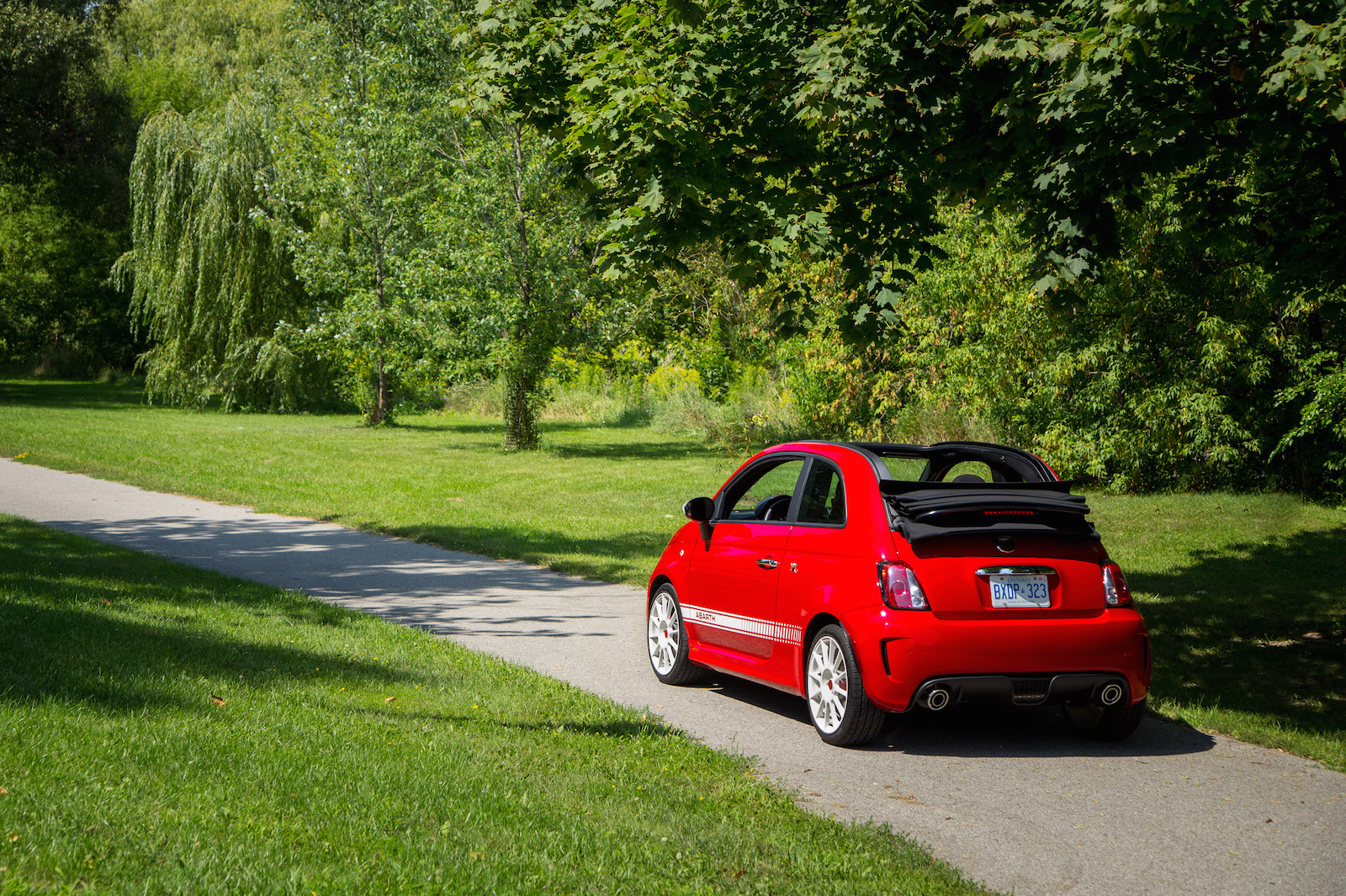 The 500c Abarth isn’t a full-on convertible per say, as it keeps its C-pillars intact. Instead, it’s almost like a large powered sunroof that folds back like a stack of Dominoes, and I love how you can put it exactly where you want it. In addition, you can also operate it while driving up to 80 km/h – meaning you can pull the top down even on the highway.