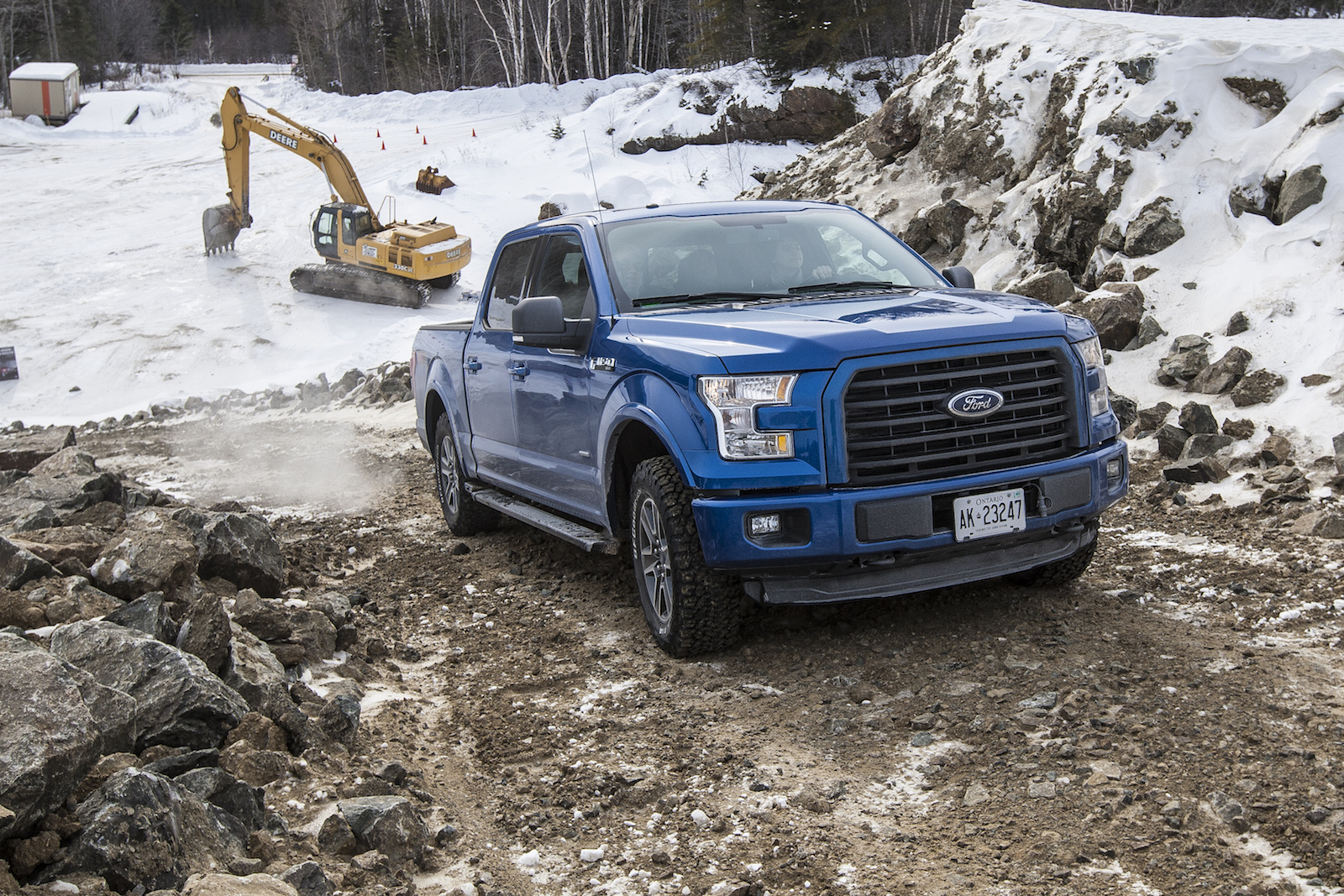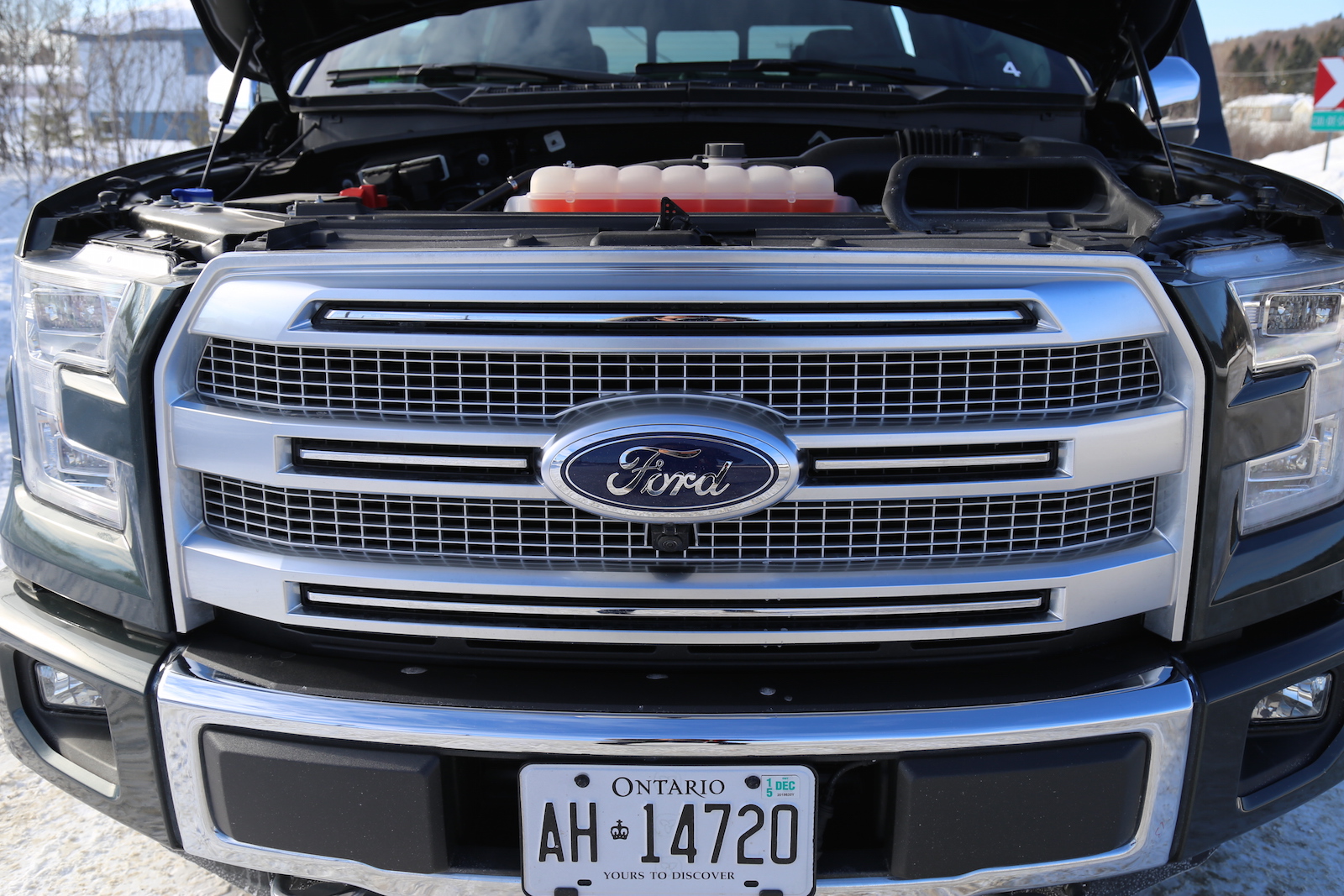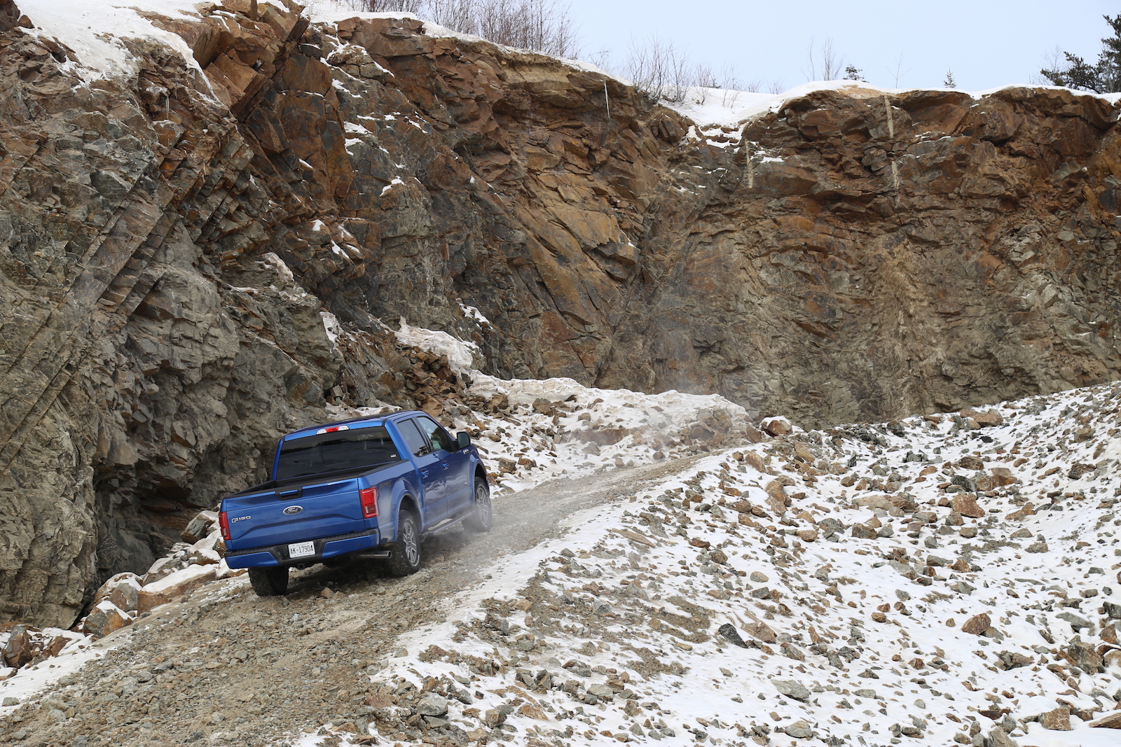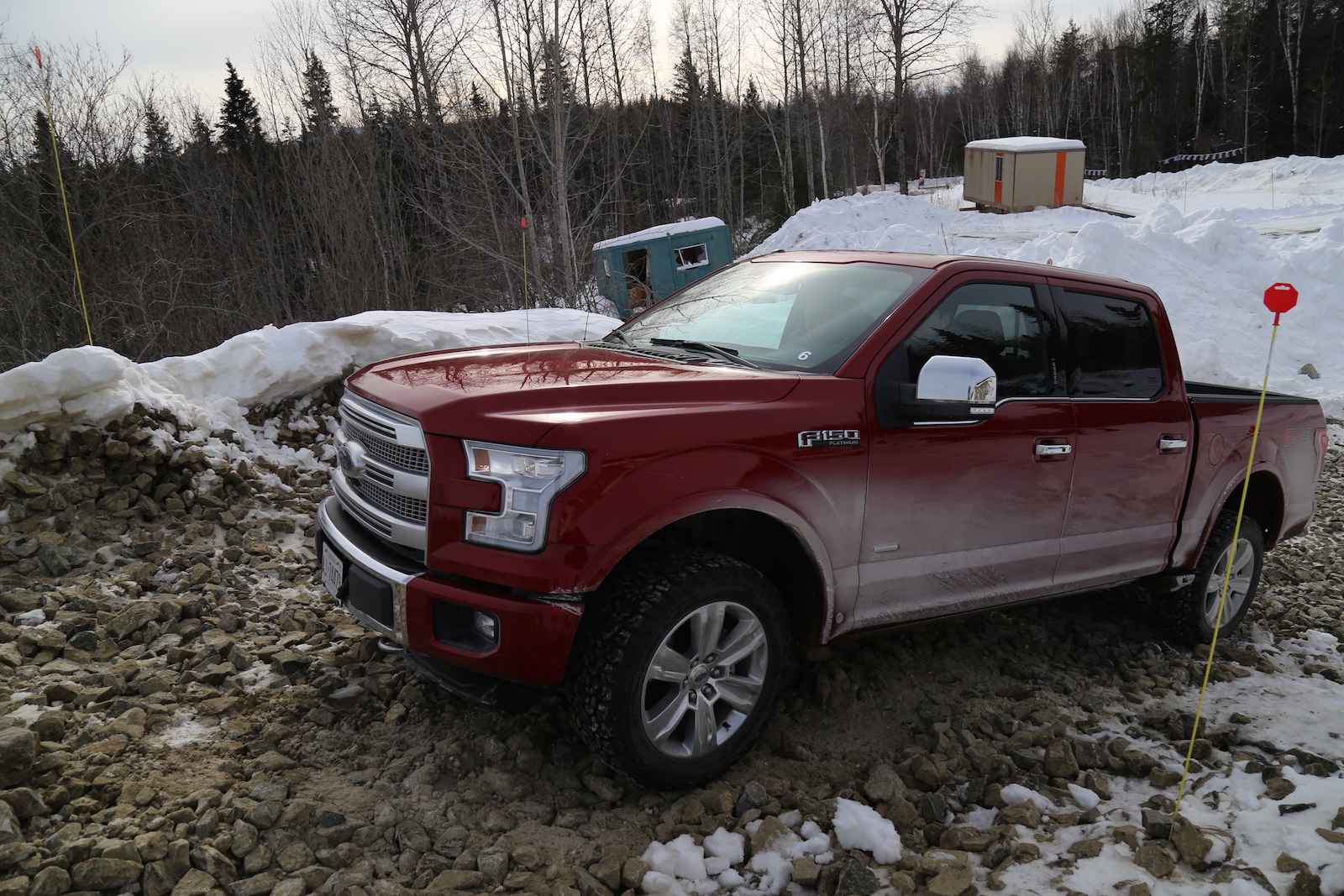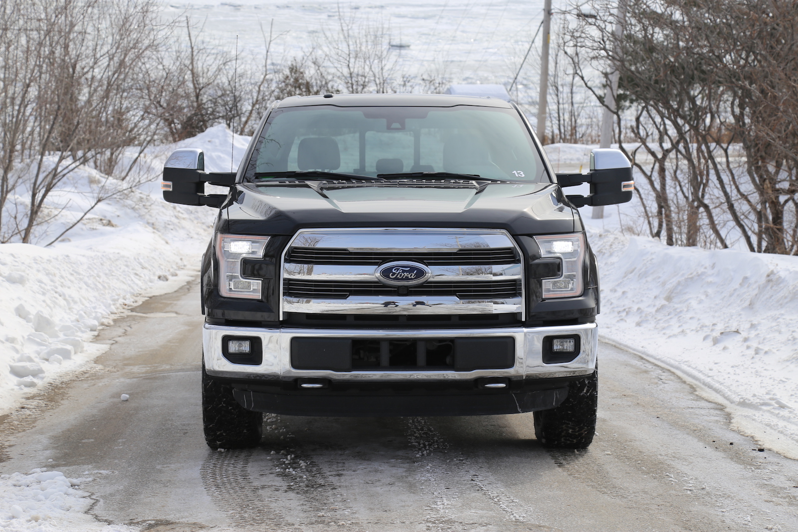 Ford generously set up three exercises to utilize their new F-150’s capabilities. The first was an off-road course littered with rocky uphill trails, icy steep downhills and uneven terrain. Leaving the F-150 in AUTO mode, it’s four-wheel drive system breezed effortlessly up the hills, not showing any cracks in confidence or finesse. The Hill Descent Control also worked brilliantly. Essentially you let go of the brake when going downhill, and the computers will take over and inch you to safety at the optimal speed. The next test was a handling course. It was around the slalom that the F-150 felt instantly lighter than its predecessor. With hundreds of pounds shed off, it turned quicker, stopped quicker, and accelerated quicker. We also had the chance to tow a trailer hitched up with two snowmobiles. The ride got mildly bumpier, but the F-150’s soft suspension delivered outstanding highway comfort even with the extra baggage.
