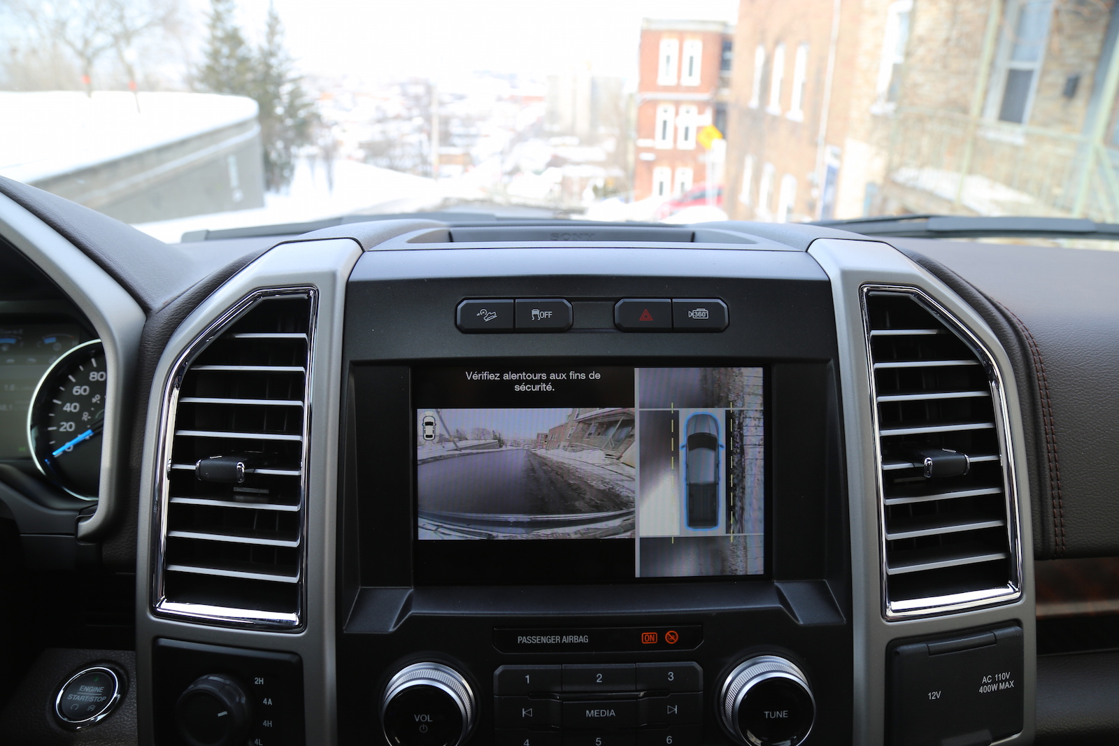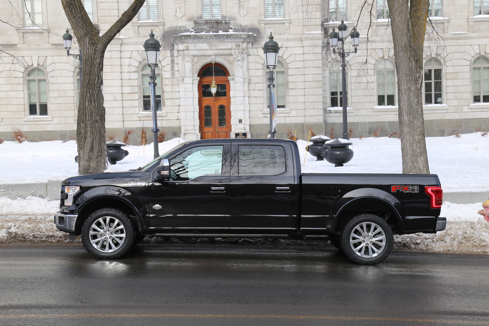Large windows and a lovely dual-panel sunroof flooded the cabin with light to create a very open concept. The sun also acted as a disco ball for the party of hard buttons on the center stack, thank goodness for hard buttons. The steering wheel also got an update; it’s beefier, more solid, and came with buttons cut out of a game of Operation. Other creature comforts included were massaged, heated, and cooled front seats – the luxury sedan of pickup trucks. The rear section of the SuperCrew trucks weren’t a bad place to be in. There’s no more transmission bump so the rear floor is actually flat. More legroom! The ride was soft, the seats felt like La-Z-Boys, and the cabin was incredibly quiet and refined, perfect for cruising along those sunny streets of Quebec.