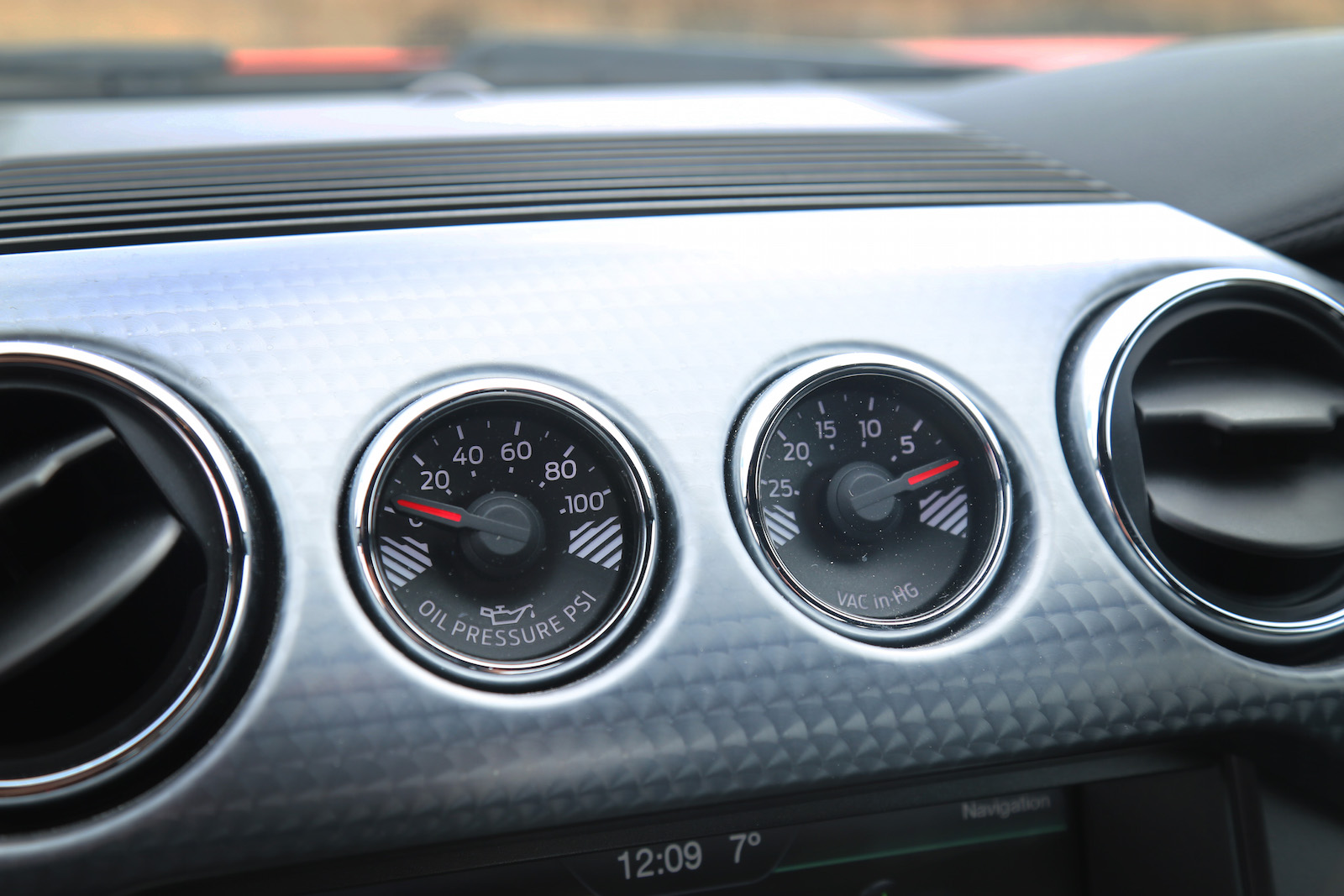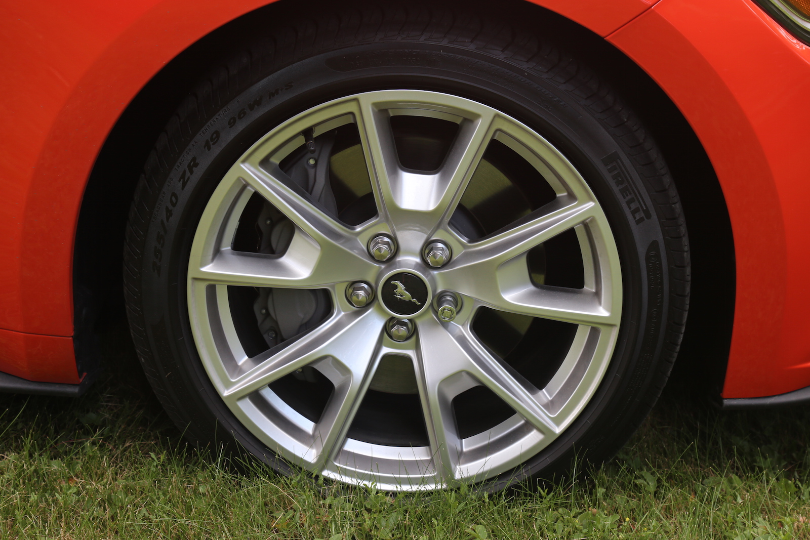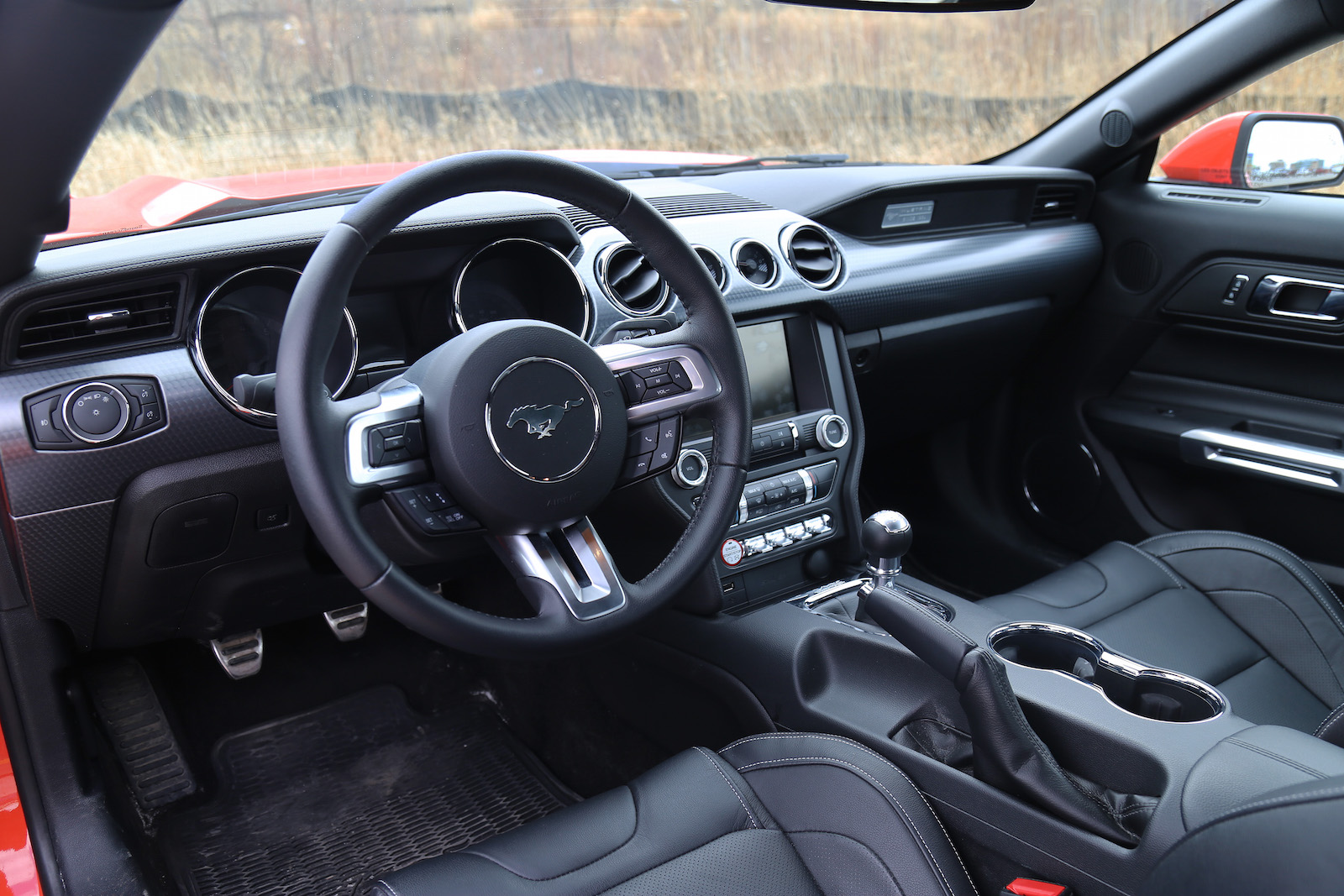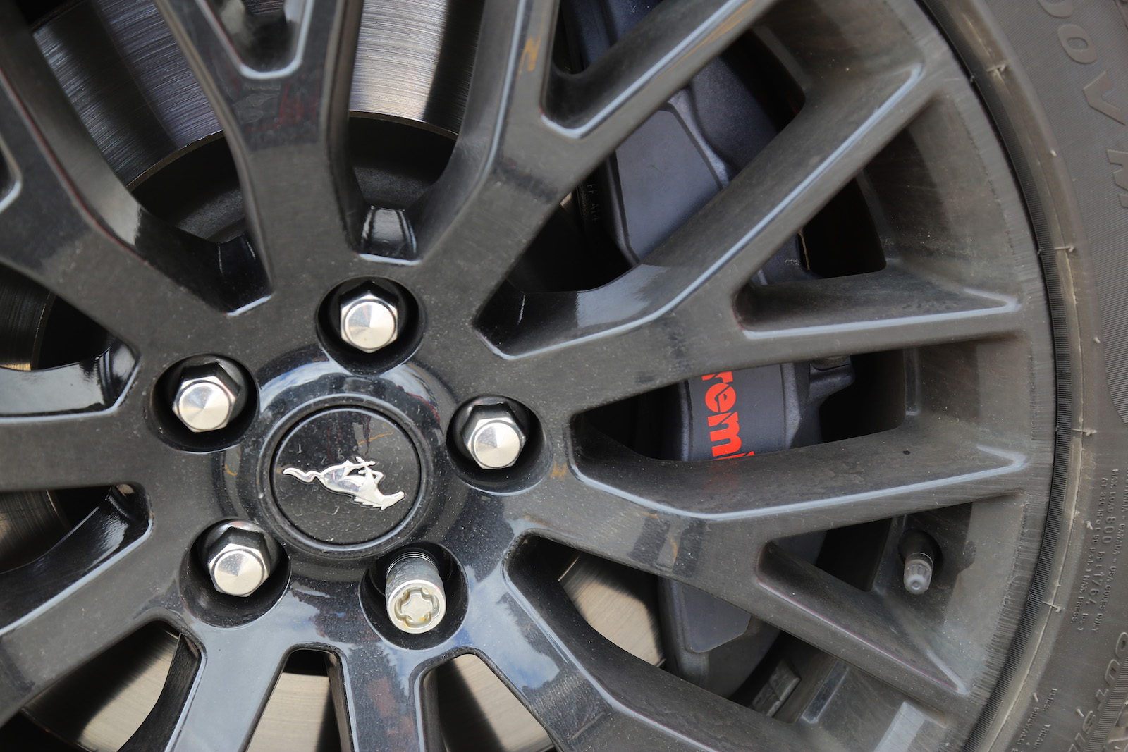 With traction control on, the GT will only fishtail if you force it with a heavy throttle and a sharp turn. The heavy front nose bites hard into the corners and we owe that infallible grip to the Pirelli Sottozero snow tires still lodged on our tester. When you do manage to swing the tail out like a hooligan, the Mustang still feels controllable, predictable, and precise even though it’s leaving tread marks on the tarmac. We were a little more daring than usual due to the larger and stiffer front Brembo brakes. Like your last clingy girlfriend, these brakes are astonishingly sensitive to any input and will quickly stop the car with the slightest touch. Compared with the four-piston calipers in the Ecoboost, the GT gets six-piston calipers to stop an entire army of horses.