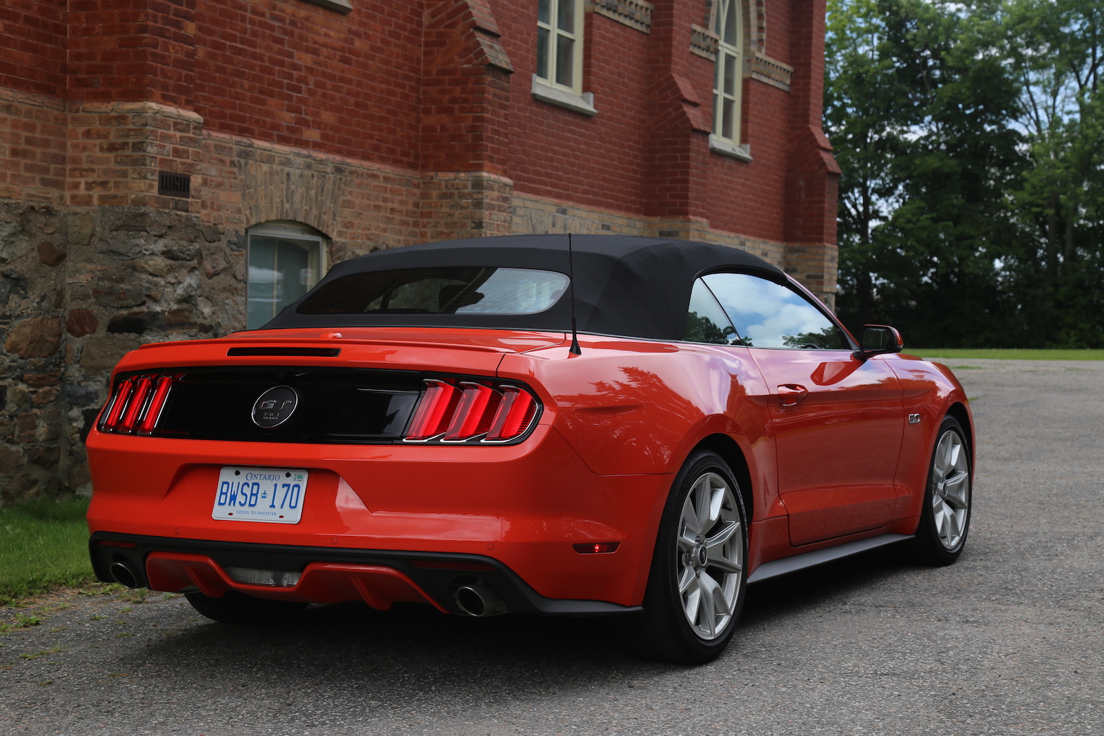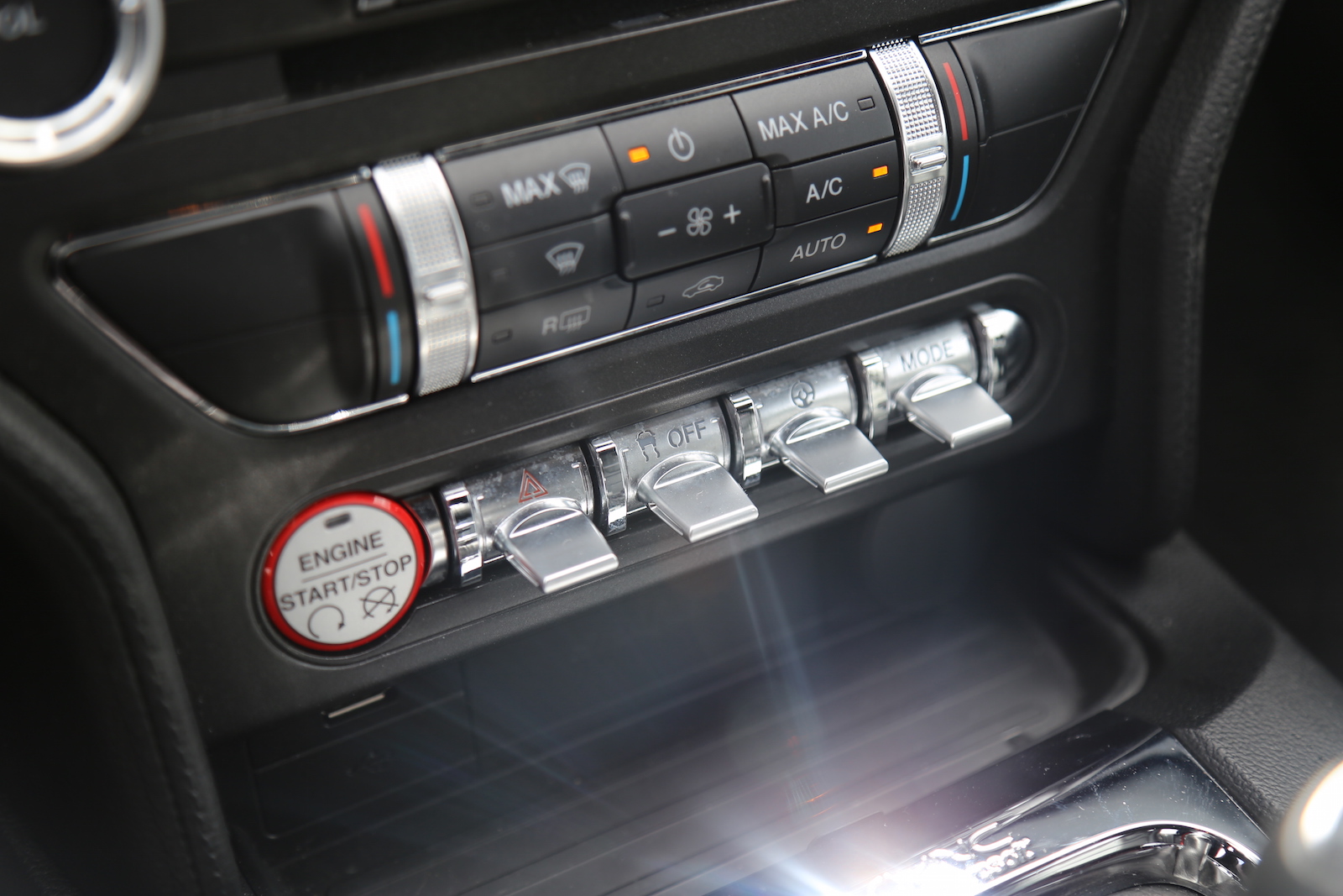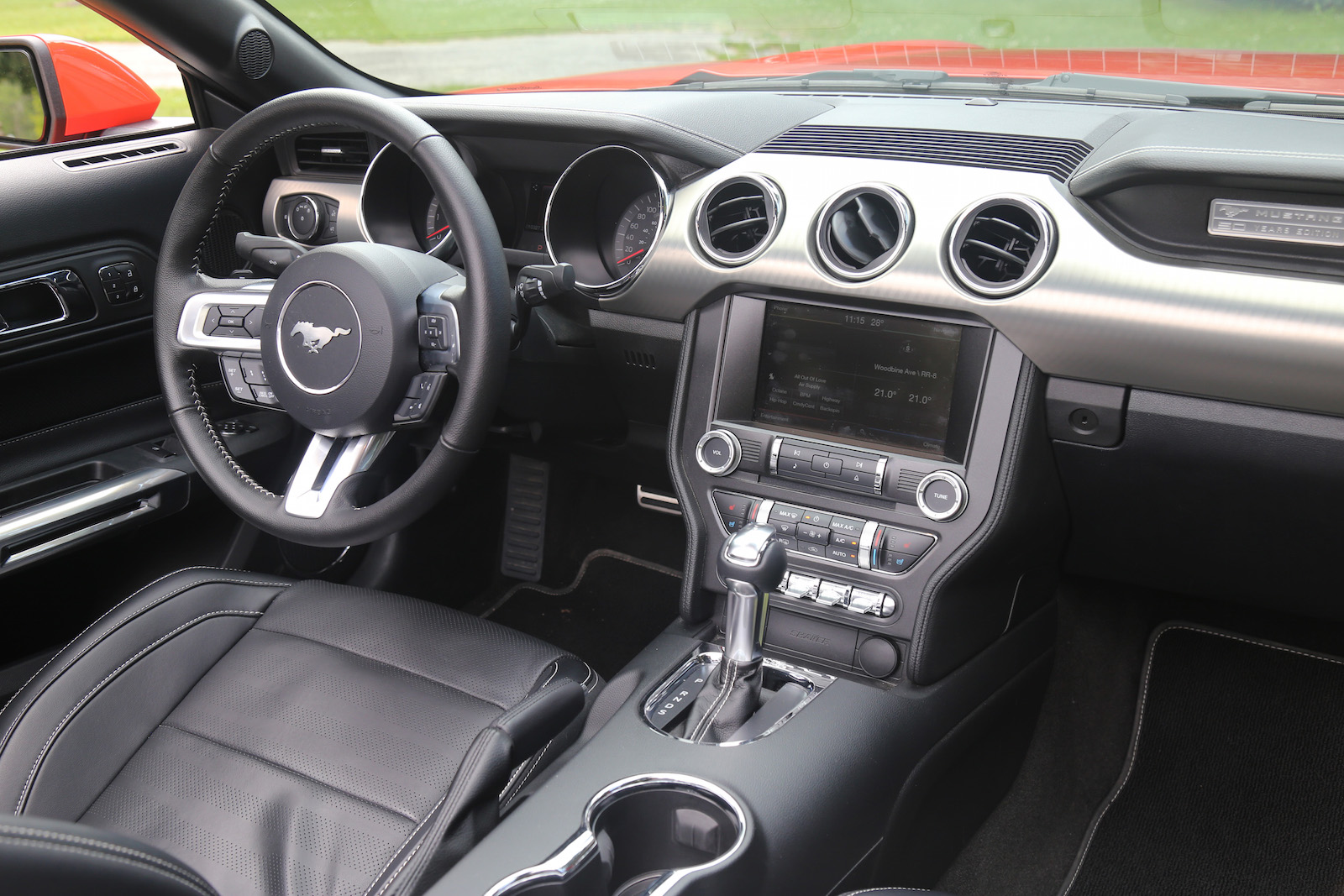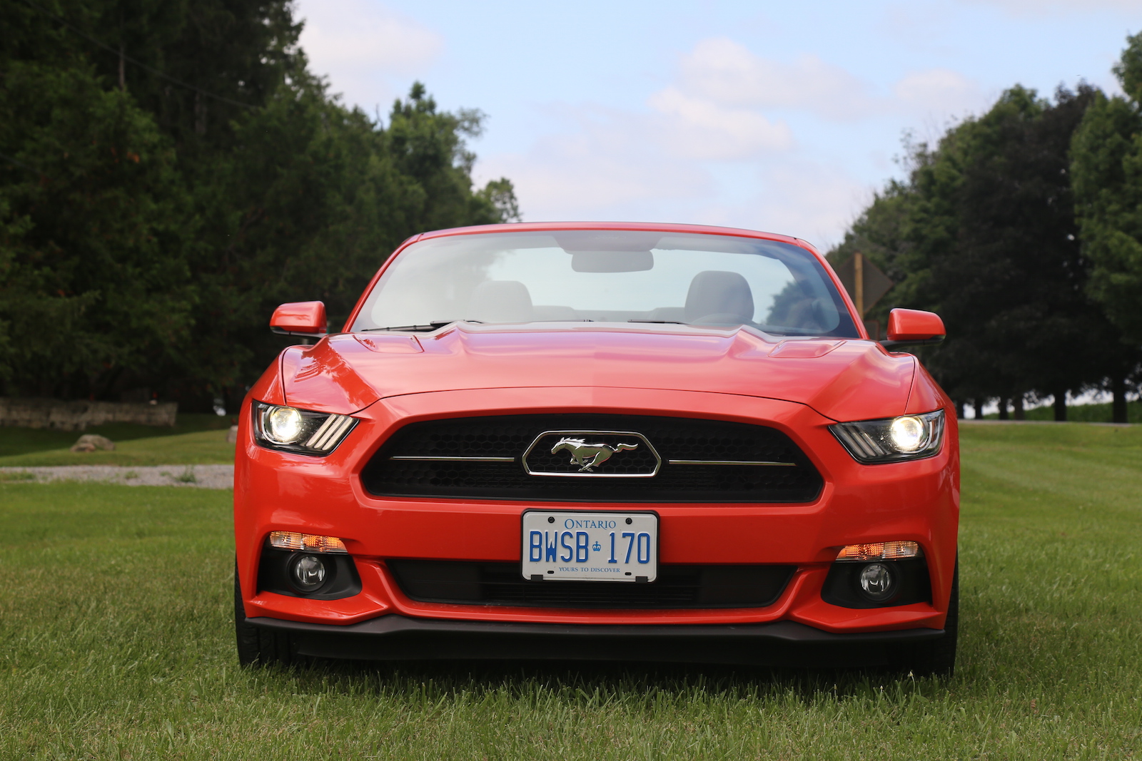 The Mustang GT holds a $9000 premium over the Mustang Ecoboost, and most of that extra cash is put towards the 5.0-litre Coyote V8 carried over from the previous generation. However, this V8 is a little different. Mustang engineers wanted to use the legendary Boss 302’s engine parts for better performance, but those were way too expensive to mass produce. Instead they found little tricks to enhance engine airflow: improved head flow, Boss 302-spec valves, stiffer springs, connecting rods, and tubular headers. More air into the engine, and therefore more power. The result is 435 hp at 6500 rpm and 400 lb-ft at 4250 rpm. The numbers run shy of the Boss 302’s specs (444 hp), but it does trump the 2014 Mustang V8 by 15 hp and 10 lb-ft. Our GT tester also came equipped with the GT Performance package (different from the Ecoboost Performance Package) that added stiffer front springs, a rear sway bar, tuned up chassis, larger Brembo six-piston brake calipers, 19-inch wheels, a strut-tower brace, K-brace, and a 3.73 Torsen rear axle. For $3700, that’s pretty much a steal.