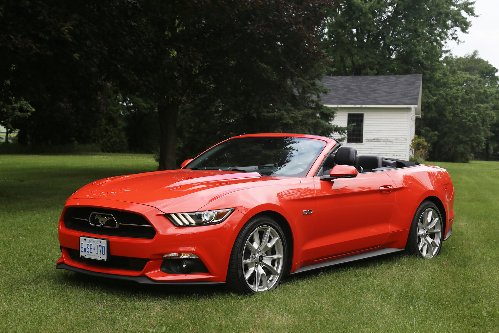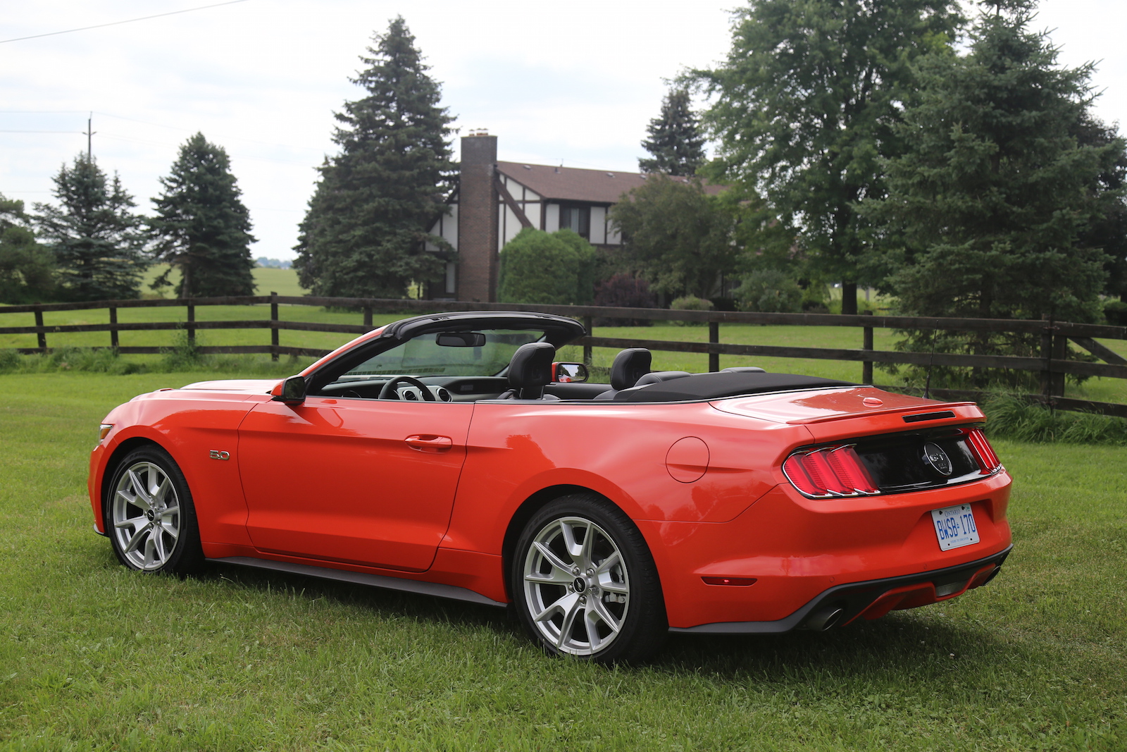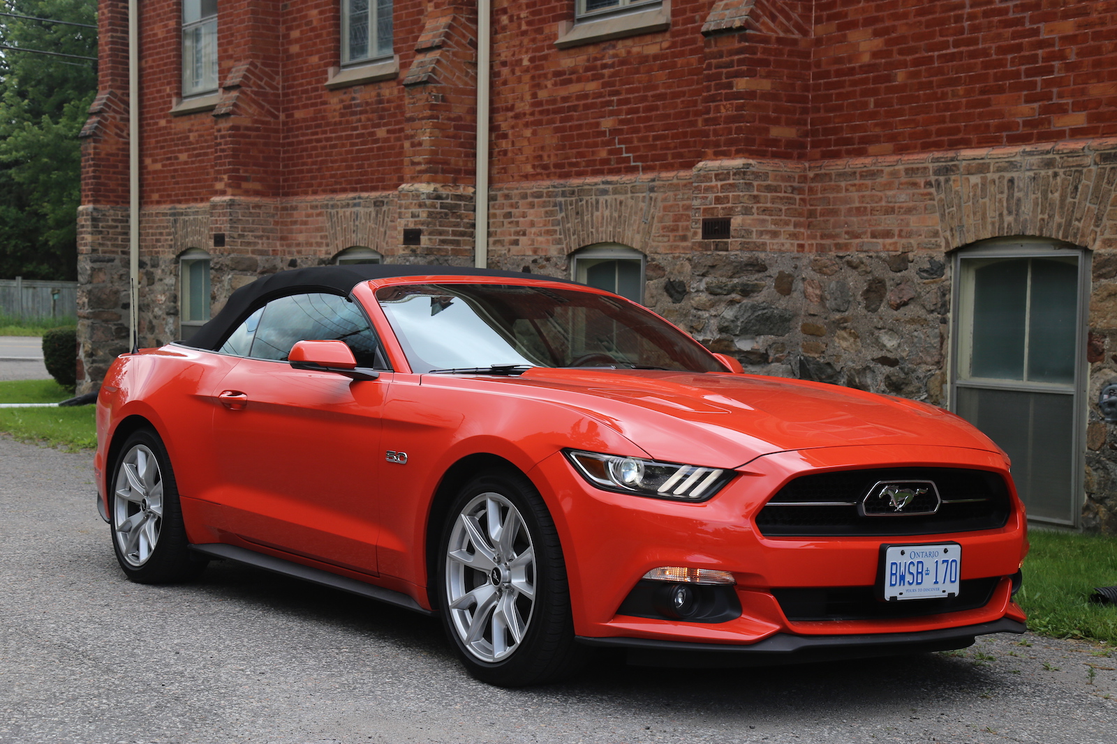 The Mustang GT holds a $9000 premium over the Mustang Ecoboost, and most of that extra cash is put towards the 5.0-litre Coyote V8 carried over from the previous generation. However, this V8 is a little different. Mustang engineers wanted to use the legendary Boss 302’s engine parts for better performance, but those were way too expensive to mass produce. Instead they found little tricks to enhance engine airflow: improved head flow, Boss 302-spec valves, stiffer springs, connecting rods, and tubular headers. More air into the engine, and therefore more power. The result is 435 hp at 6500 rpm and 400 lb-ft at 4250 rpm. The numbers run shy of the Boss 302’s specs (444 hp), but it does trump the 2014 Mustang V8 by 15 hp and 10 lb-ft. Our GT tester also came equipped with the GT Performance package (different from the Ecoboost Performance Package) that added stiffer front springs, a rear sway bar, tuned up chassis, larger Brembo six-piston brake calipers, 19-inch wheels, a strut-tower brace, K-brace, and a 3.73 Torsen rear axle. For $3700, that’s pretty much a steal.