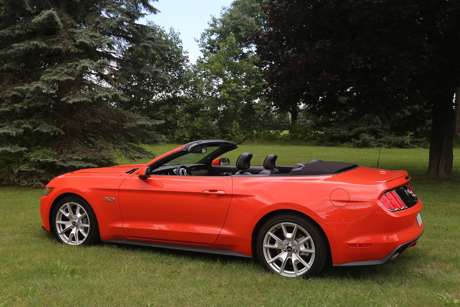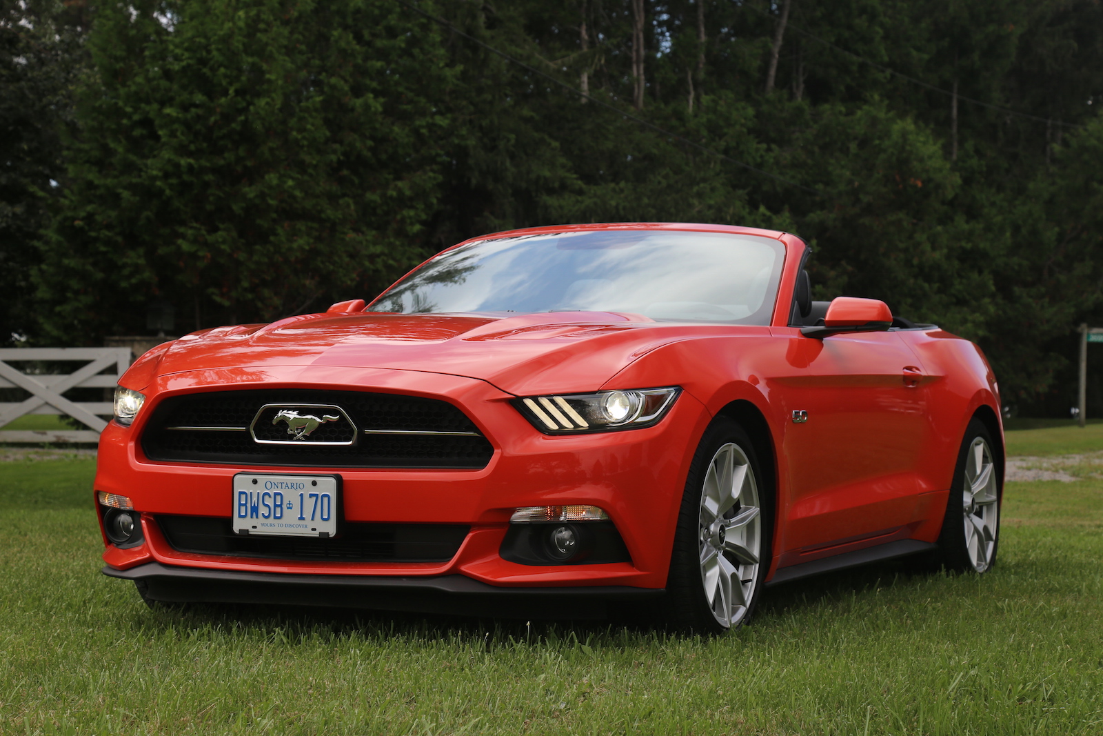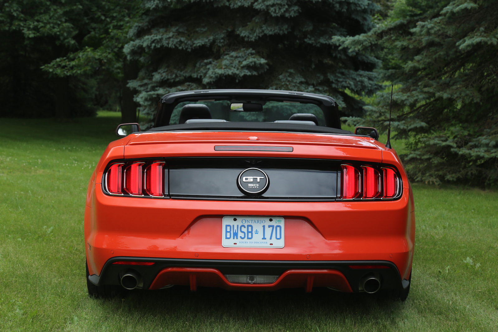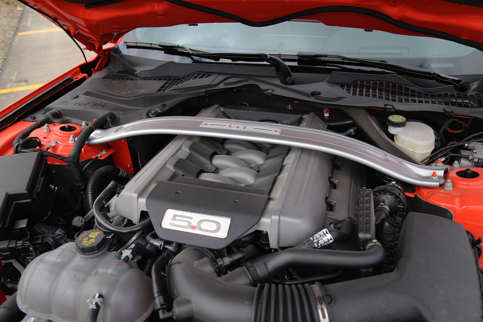 The Mustang GT holds a $9000 premium over the Mustang Ecoboost, and most of that extra cash is put towards the 5.0-litre Coyote V8 carried over from the previous generation. However, this V8 is a little different. Mustang engineers wanted to use the legendary Boss 302’s engine parts for better performance, but those were way too expensive to mass produce. Instead they found little tricks to enhance engine airflow: improved head flow, Boss 302-spec valves, stiffer springs, connecting rods, and tubular headers. More air into the engine, and therefore more power. The result is 435 hp at 6500 rpm and 400 lb-ft at 4250 rpm. The numbers run shy of the Boss 302’s specs (444 hp), but it does trump the 2014 Mustang V8 by 15 hp and 10 lb-ft. Our GT tester also came equipped with the GT Performance package (different from the Ecoboost Performance Package) that added stiffer front springs, a rear sway bar, tuned up chassis, larger Brembo six-piston brake calipers, 19-inch wheels, a strut-tower brace, K-brace, and a 3.73 Torsen rear axle. For $3700, that’s pretty much a steal.