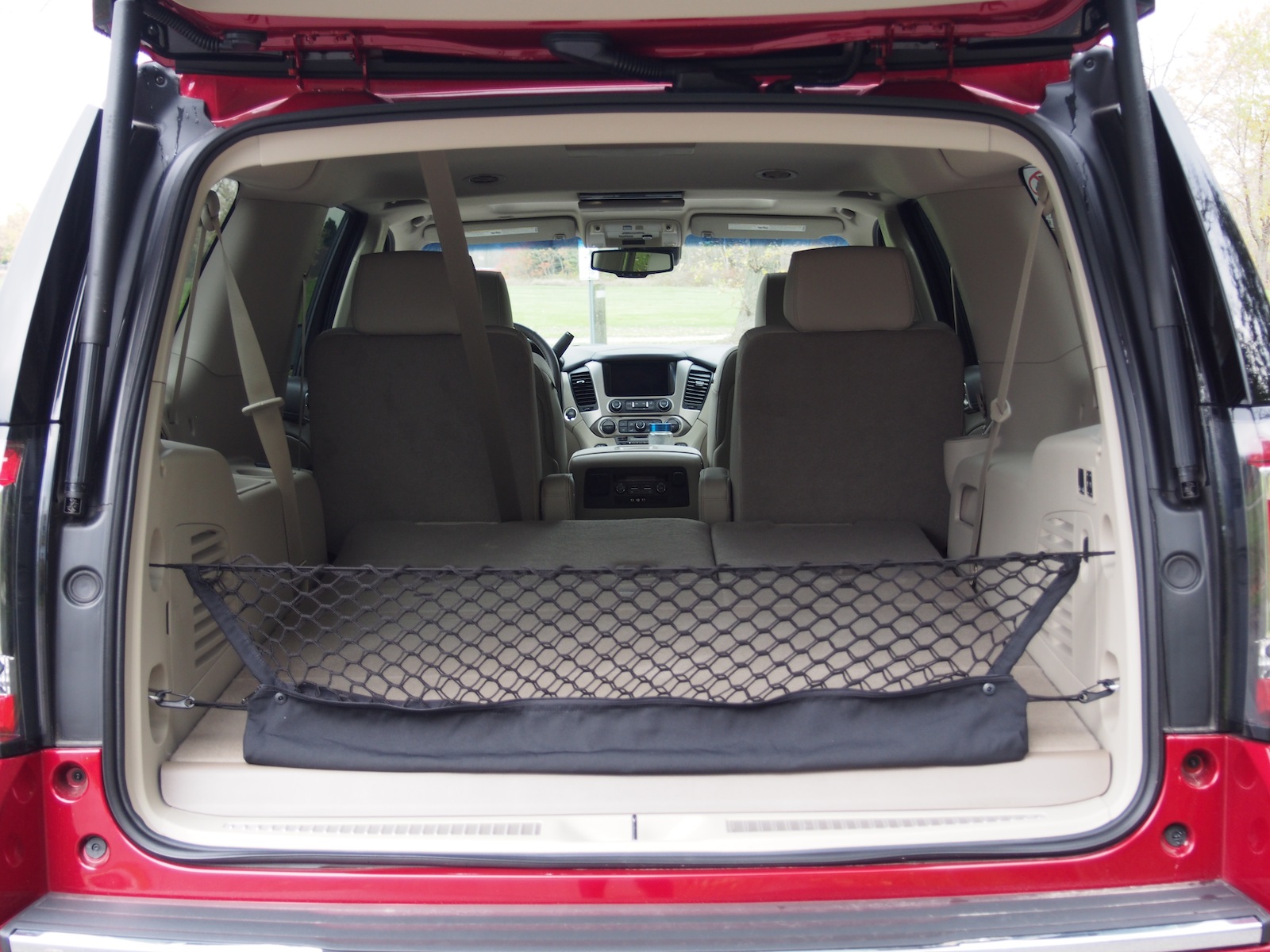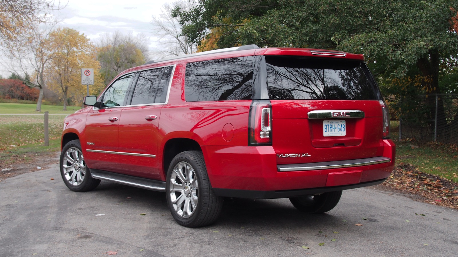“Look Daddy! Is that a fire truck?” a little boy in the distance screamed. His father shrugged his shoulders and hastily tugged him along. With a handful of groceries, I didn’t even bother correcting them. Apparently the Yukon XL looks like a mini firetruck thanks to the Crystal Red paint ($515) it’s wearing. All that is missing is a ladder and a hose, though I’m not sure mini is the right word to describe this behemoth. XL stands for exactly what you think it might – extra large – and it stretches the standard Yukon’s wheelbase by 355 mm and a total of 518 mm overall. Storage space continues to be sublime, though the meticulous eye would notice that it’s almost 10% less than the 2014 model. That precious space has been relocated to the third row seats to essentially solve previous complaints of deficient legroom. That’s not to say the trunk isn’t cavernous. With the second and third row seats folded down, the Yukon XL offers 3430 litres of cargo room, identical to the Suburban (3430 L) and comparable to the Escalade ESV (3424 L). The trio may share the same platform, but the Yukon XL rides a sliver higher by 10mm.