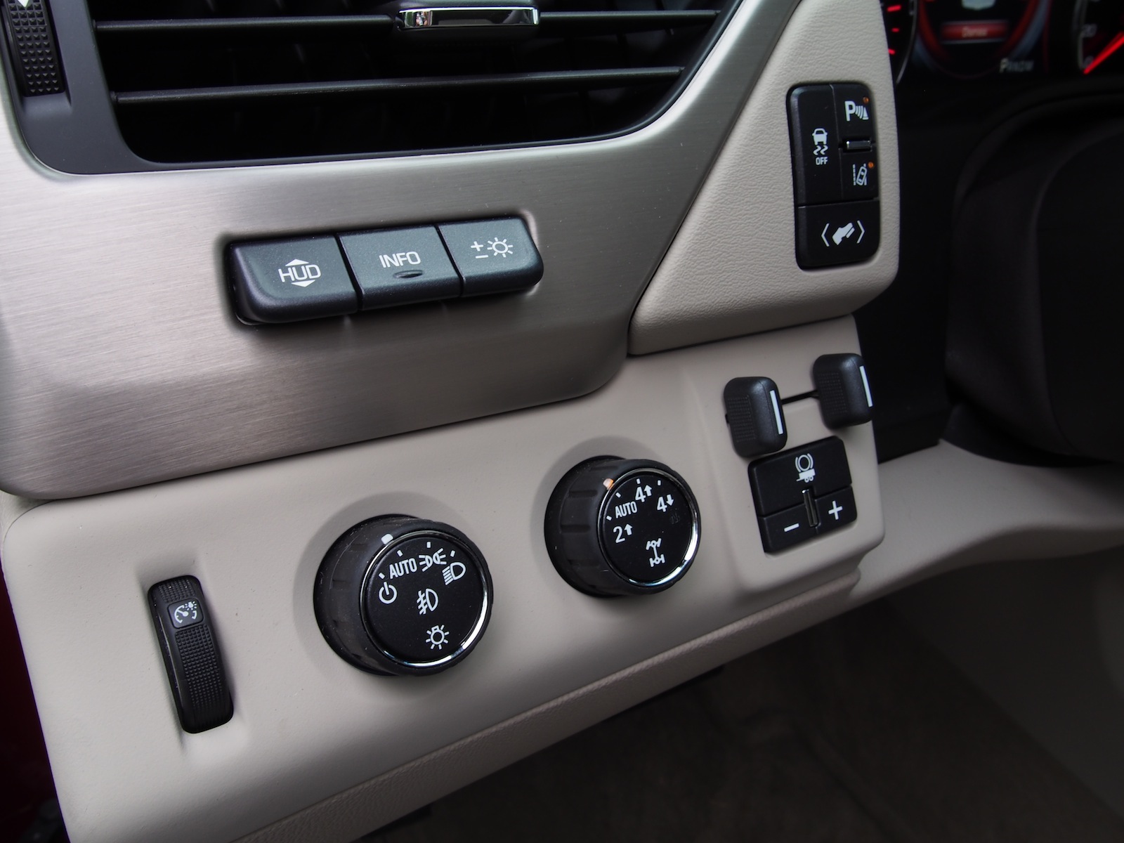 The steering wheel is chunky and nicely weighted, and the audio controls are cleverly stashed behind the wheel where paddle shifters would normally sit. The pick-up truck gear wand is back, and so is the infamous hidden cubby behind the display screen. GMC’s IntelliLink infotainment system continues to be convoluted, but it isn’t as frustrating as Cadillac’s CUE. There is a steep learning curve as you figure out how to navigate within the sub-menus, but at least there are hard buttons to guide your step.