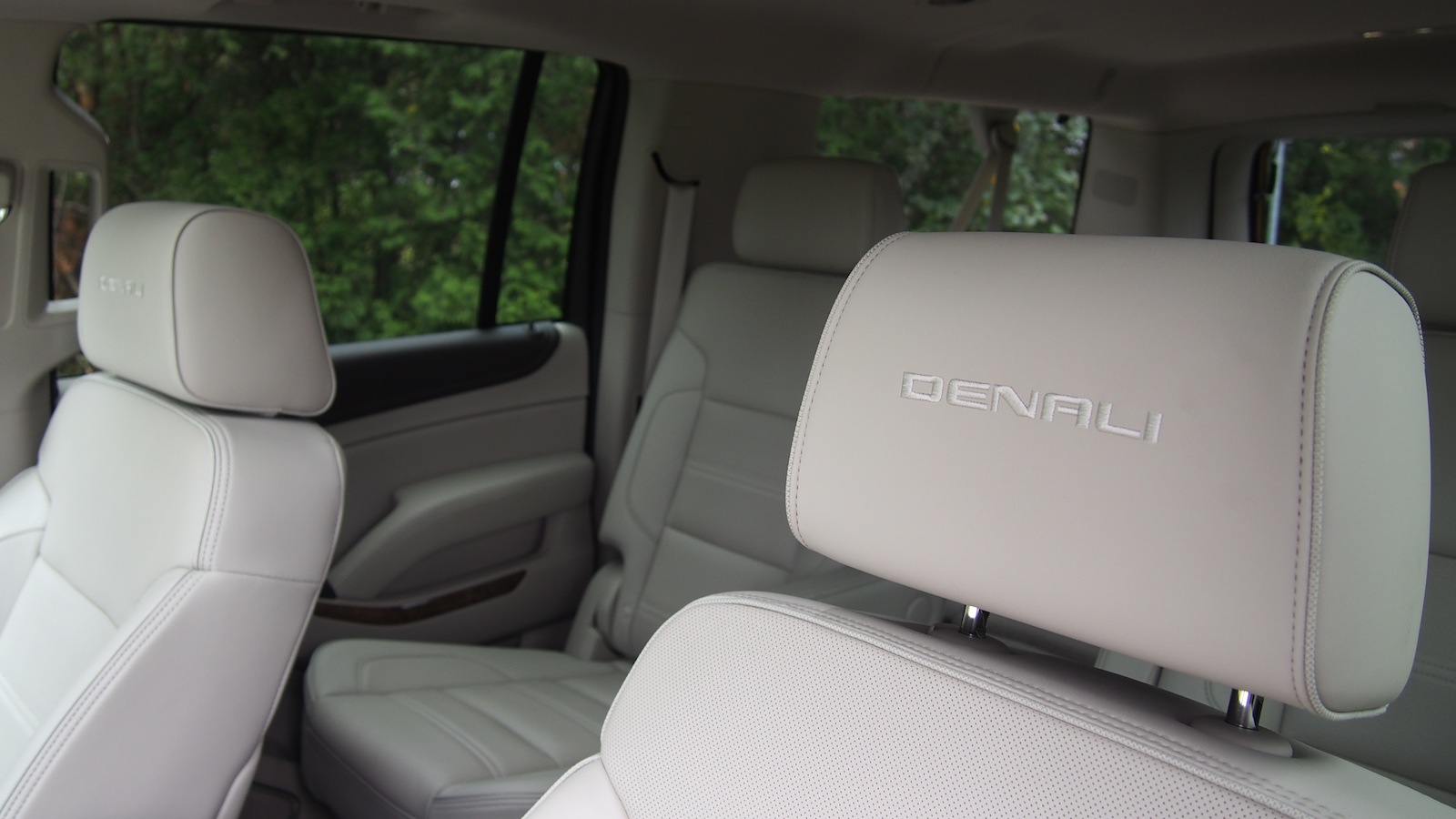 Where the Yukon XL begins to set itself apart is with the optional Denali package. It adds cosmetic upgrades such as an imposing three-dimensional grille mesh, HID projector-beam headlights, chrome accents sparkling at every crevice, massive 22-inch wheels, and optional power retractable steps (not on our tester). The Denali also offers the same 6.2-liter V8 engine found in the Escalade that boasts a whopping 420 hp and 460 lb-ft of torque and replaces the standard 5.3-liter EcoTec3 V8 that holds 355 hp and 383 lb-ft.