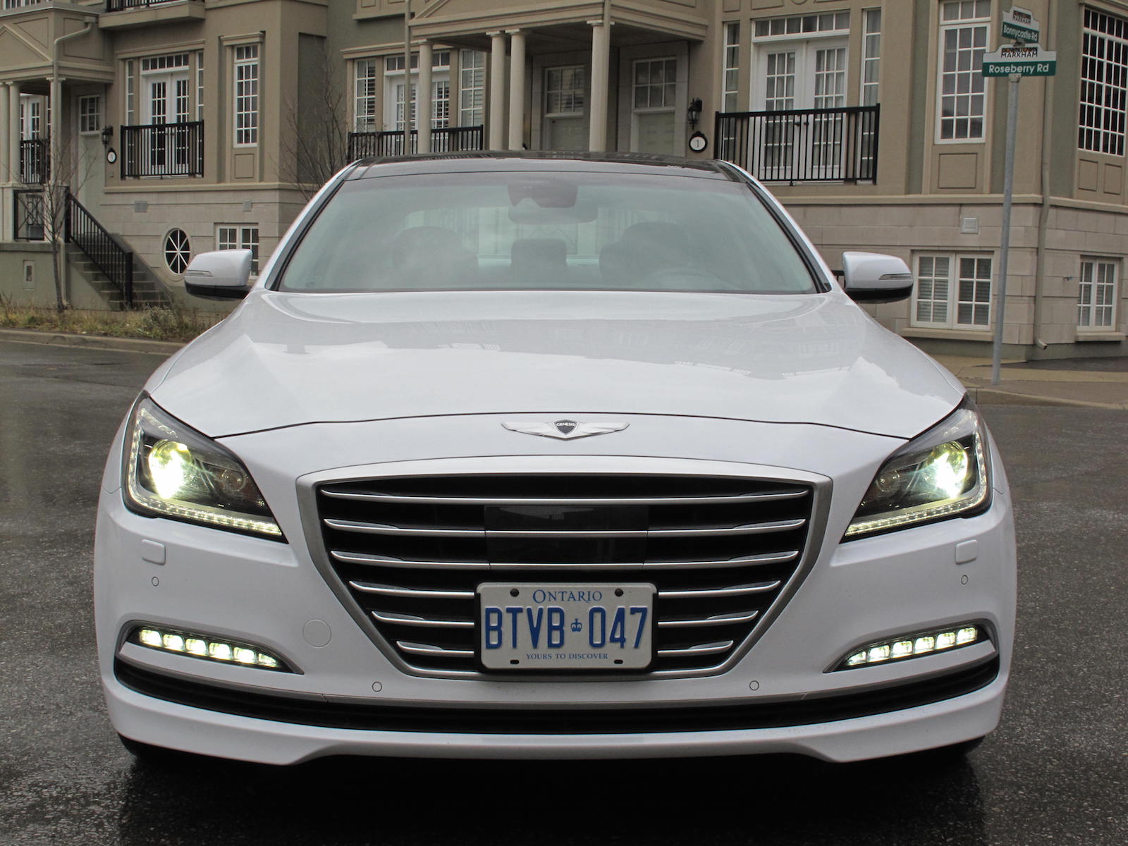 Snowbound Canadians will be happy to hear that HTRAC, Hyundai’s all-wheel drive system is standard on all Genesis models. Short for Hyundai TRACtion, it isn’t the fanciest acronym out there – xDrive, 4MATIC, Quattro – but it does a brilliant job at keeping the four wheels locked and planted. However I did have a minor quarrel with the tires it was wearing, a set of Hankook Ventus S1 nobles. They’re great all-season performance tires that work well in the dry, and we recently had a chance to test them out on a circuit too, but they were atrocious in the snow. Earlier in November there was unexpected snowfall while I was up in Hamilton visiting a friend, the first snowfall of the year actually. It was a real challenge having to trek my way back to Toronto the next day – unpaved roads with a camouflaged white Genesis – thank goodness for all the safety systems. Slow was the key word, yet the tires couldn’t manage to find grip despite all-wheel drive. Wheels kept spinning and the ABS constantly kicked in, sparing the precious front end from merging with a group of trees. I made it home safe and sound, but not without sweaty palms and a racing heartbeat. I never believed in all-seasons anyways.