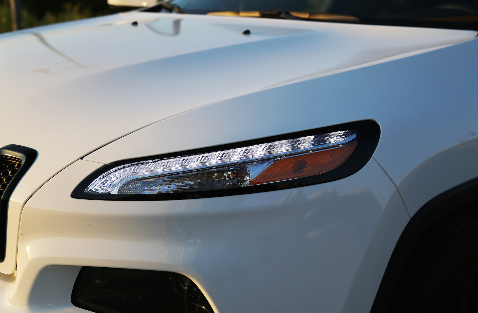 Most people are on the fence about the Cherokee’s new looks. Our friends and colleagues have wrapped up quite a list of appropriate names, calling it everything from the Polar Bear to the Squinty Asian. Our particular tester came equipped with the special edition Altitude Package ($495) that deletes all the chrome parts and replaces them with black accents on the grill, roof rails, bumpers, headlights, and sinister looking 18-inch wheels. The Bright White paint is a good choice with this package, as it heavily accentuates the added detail and generates an exterior look that overestimates the Cherokee’s $28,195 MSRP. In my opinion, it looks even better in Granite Crystal Paint.