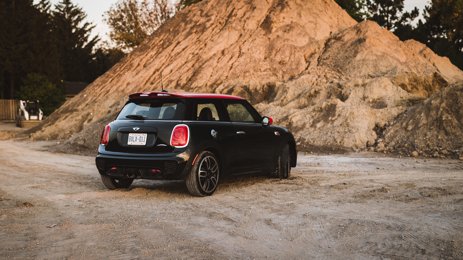 Our JCW tester was optioned out with the Dynamic Damper Control (as part of the $1,150 Loaded Package) that allows you to choose from three driving modes: Sport, Mid, and Green. The latter dials back the throttle significantly and aims to improve fuel efficiency blah blah blah – no one buying a JCW is going to want to drive frugally, let alone with a flaccid gas pedal. Do yourself a favour and make a habit of dialing the car into Sport mode every time you hop in. Not only does it firm up the ride but the throttle also sharpens up, the gears get squeezed out to their maximum, and the exhaust livens up for quite a wonderful experience.
