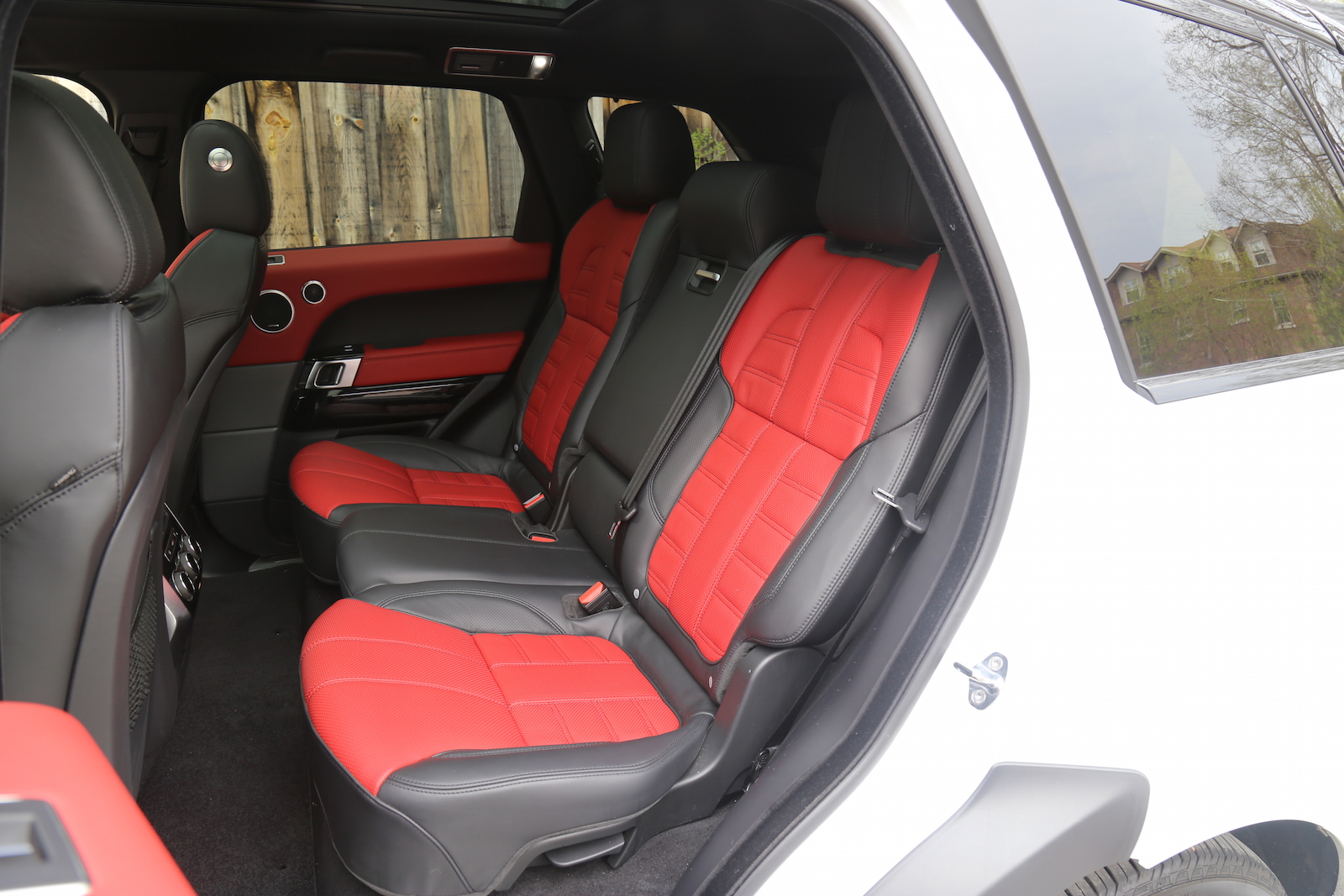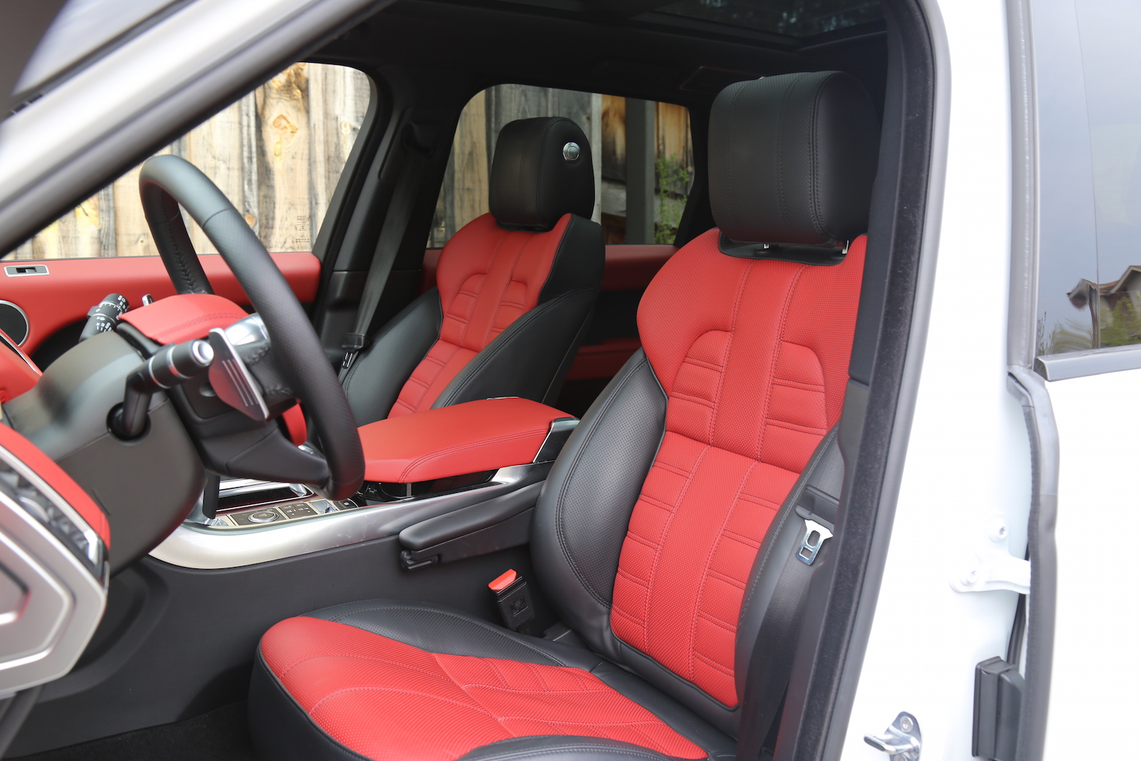 Hop inside and the jaw dropping continues. Red leather! Or what Land Rover calls Pimento. I actually prefer the tan-coloured leather from our Range Rover tester over this one, but the white exterior and red interior make for a 10/10 combination. I love the simplistic cabin and the high-up driving position. You feel like a king lodged on your throne as you overtake those hatchbacks you’re “forced” to share the road with.