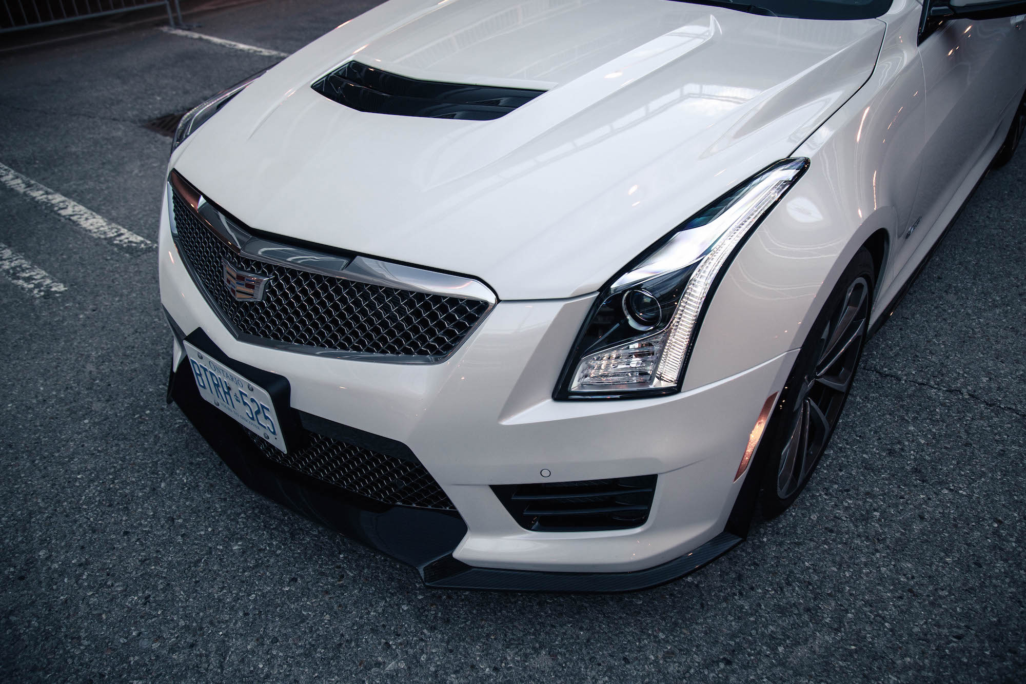 The ATS-V is Cadillac’s first real pursuit of the sport-coupe kings, mainly the BMW M4 and on paper, it looks like it’s got what it takes: a 3.6-litre twin-turbo V6 engine delivering 464-hp, a rear-wheel drive setup with Magnetic Ride Control from a Corvette, and it’s got carbon fibre everywhere from the front lip spoiler to the new front hood. It also comes with a manual transmission that dishes out neat tricks like launch control, rev matching, no-lift shift – I could go on and on but fact of the matter is, things are looking good for the V.