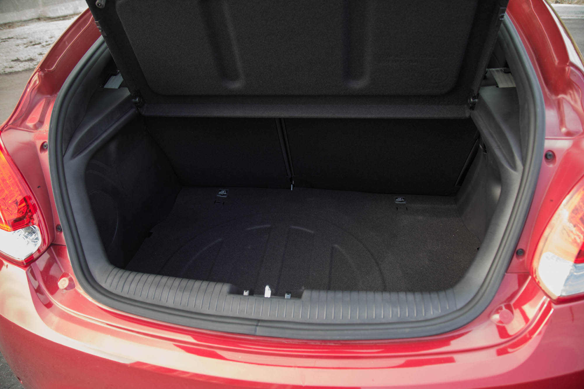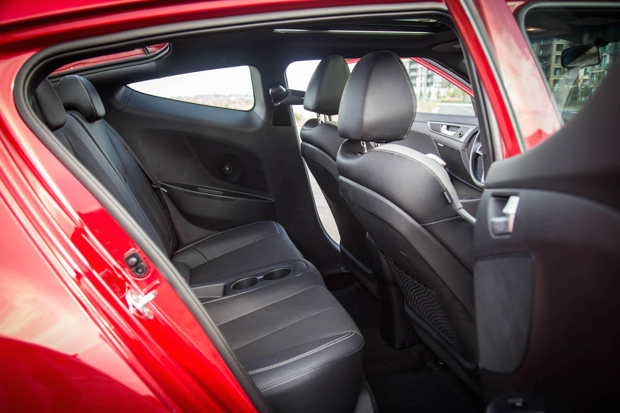 The amount of cargo space is impressive compared to its boxier proportioned rivals in this segment like the Volkswagen Golf and Ford Fiesta, but where the Veloster suffers is with back seat headroom. Due to the sleekly angled roofline, taller passengers will have a hard time keeping their scalp in pristine condition. Squeezing into the small rear entry portals aren’t an easy feat either, but at least there’s an expansive panoramic sunroof that will keep feelings of claustrophobia back there at bay.