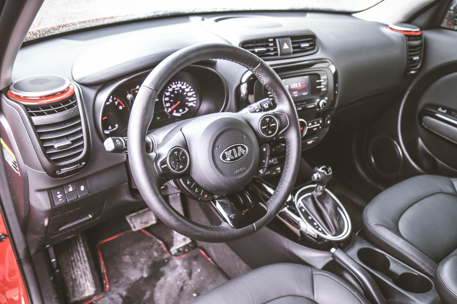 The Soul is not only a well-thought out piece of machinery, but it also offers great value at its price point. The SX trim ($23,995) is already equipped with leather seats, power folding mirrors, keyless start, a rear view camera, and a heated steering wheel that looks like Mickey Mouse.