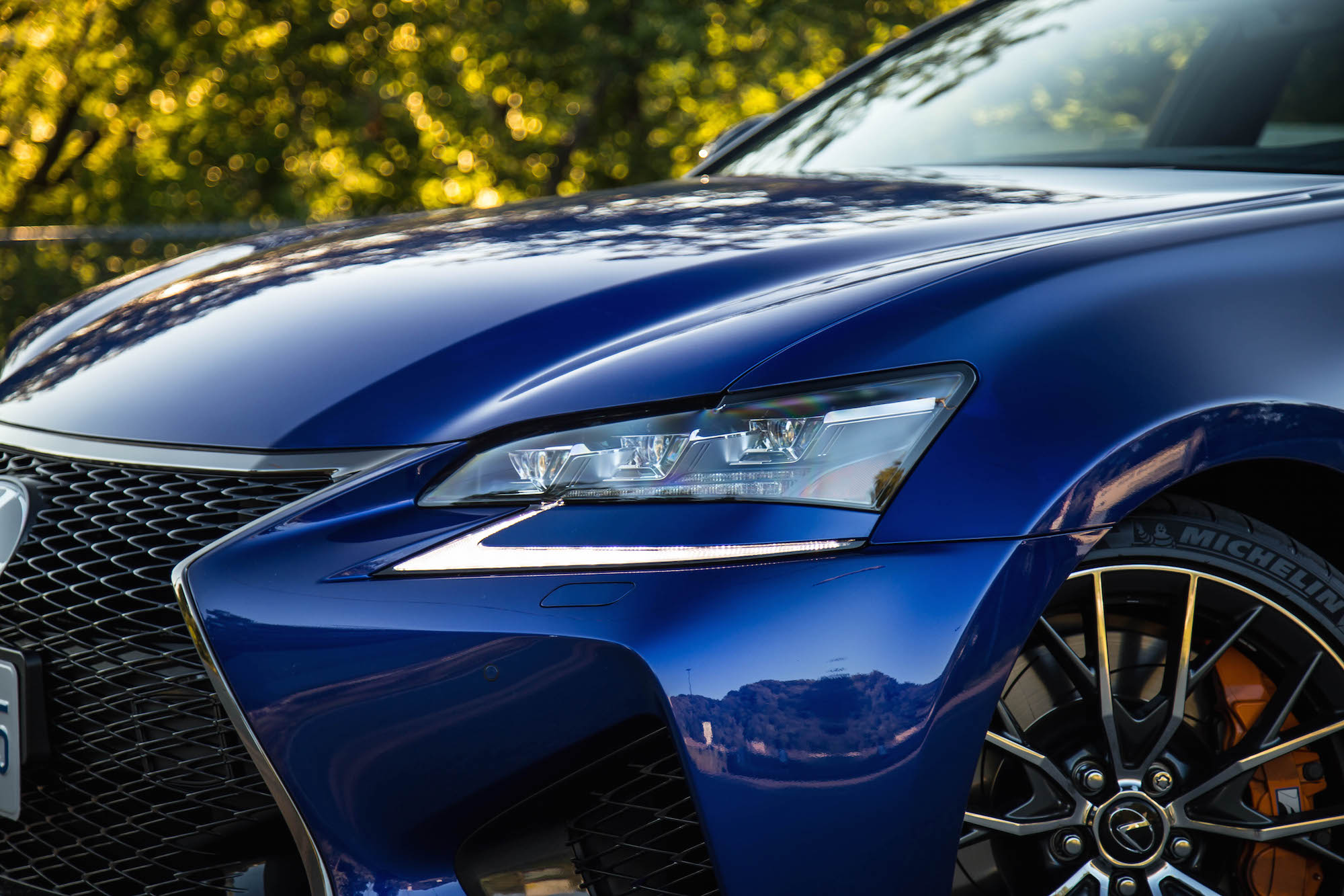 The entire suspension has been reworked for the GS F, including firmer springs, bushings, and unique forged aluminum control arms. There is no adjustability, but the result is a slightly more performance-oriented ride than the soft and compliant one provided by the standard GS.