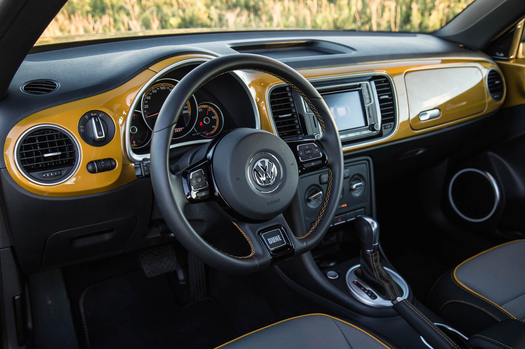 The exclusive Sandstorm yellow is the highlight of the show, one that is striking enough that even Darude would approve of. It has a nice sparkle and tint, and would feel just at home on the Beetle as it would a six-figure supercar. If you’re not feeling as adventurous though, VW will sell you one in black or white as well.
