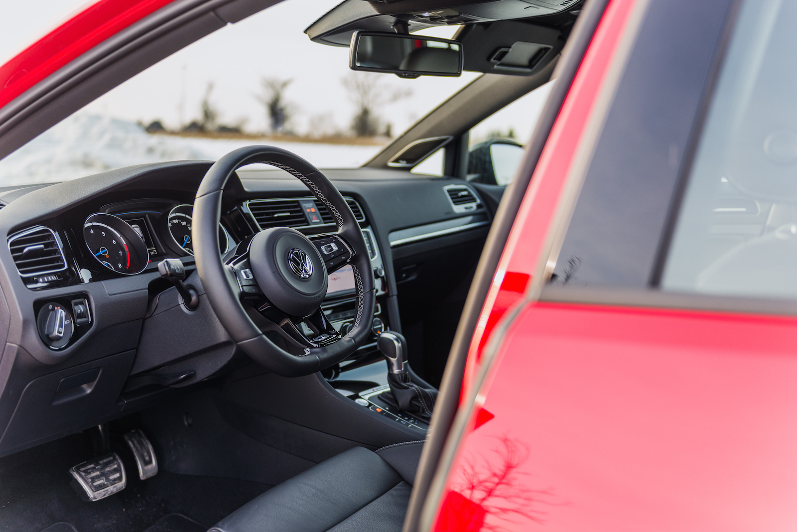 Furthermore, we got the opportunity to test the Golf R during Toronto’s first snowfall last week, and I’m happy to report that it handled brilliantly. Despite the tendency to understeer, traction was good and the R put power down like nothing else on the road. Those grippy ContiWinterContact tires helped to seal the deal. Snow is no obstacle for the R, and in regards to those large 19-inch wheels, the R rides fairly comfortably and delivers good on-road manners.