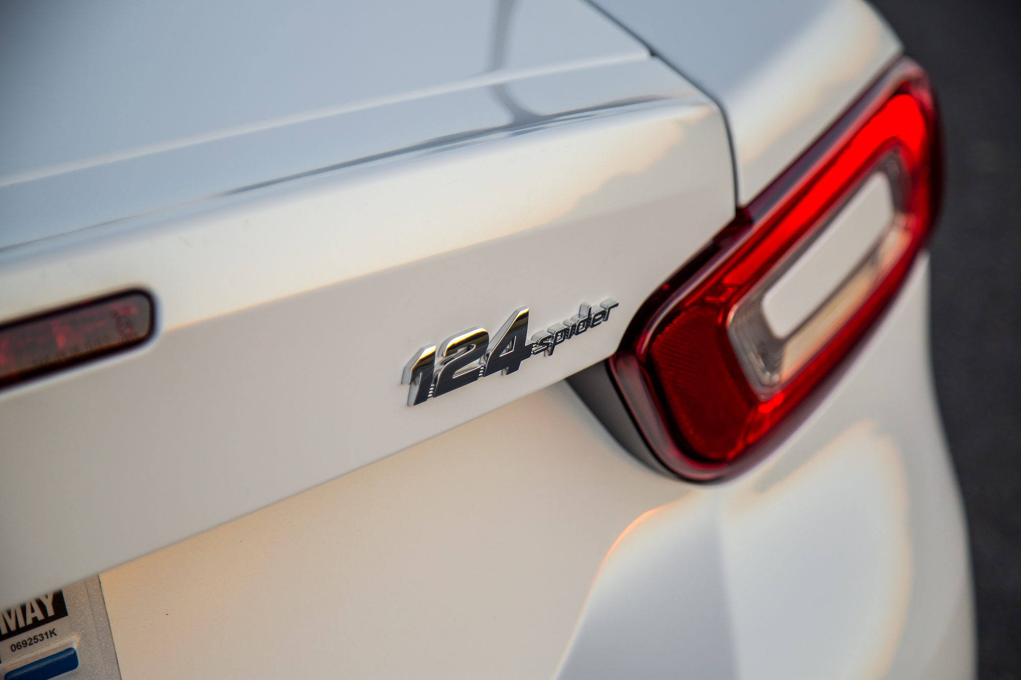 I’ve never seen a white Miata before, so this elegant pearl coating on our Fiat makes it look, to my eyes at least, twice as expensive as the Mazda. The lines turn lustrous, the saddle brown seats give it an appealing contrast, and the body shape helps accentuate those aggressive front hood creases.