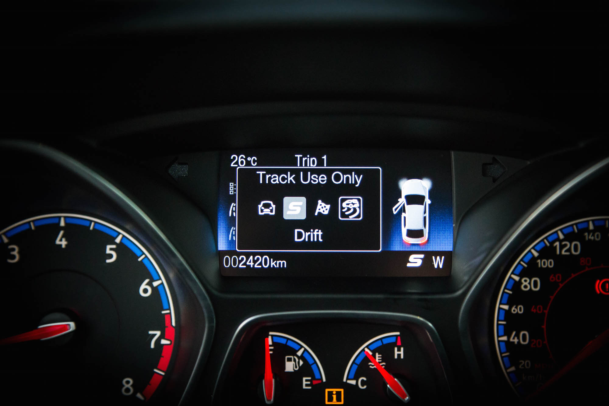 Now about that last mode, aptly labeled “Drift Mode.” Who knew this serendipitous setting would turn into one of the RS’ biggest selling points? When you read the press release, Ford calls it “controlled oversteer.” We call it “Holy crap, I can drift!”