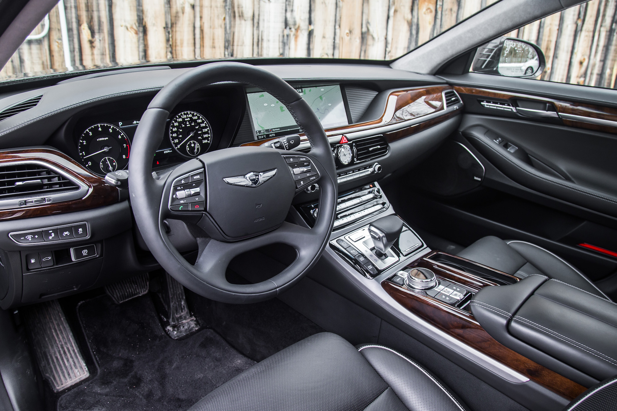 In an effort to rid the G90 of any old habits, the new model adopts the massive hexagonal grill first introduced in the outgoing Hyundai Genesis, now the G80, along with sleeker headlights and a winged badge perched on the hood – no more flying hood ornament here. But when passerbys ask if this is the new Bentley, you know it’s got the winning complexion. And those swooping waterfall taillights seem to be ripped straight off a Jaguar XJ. But it’s the way that Genesis amalgamates these design cues together that makes the G90 so imposing on the streets, though a little bit generic.