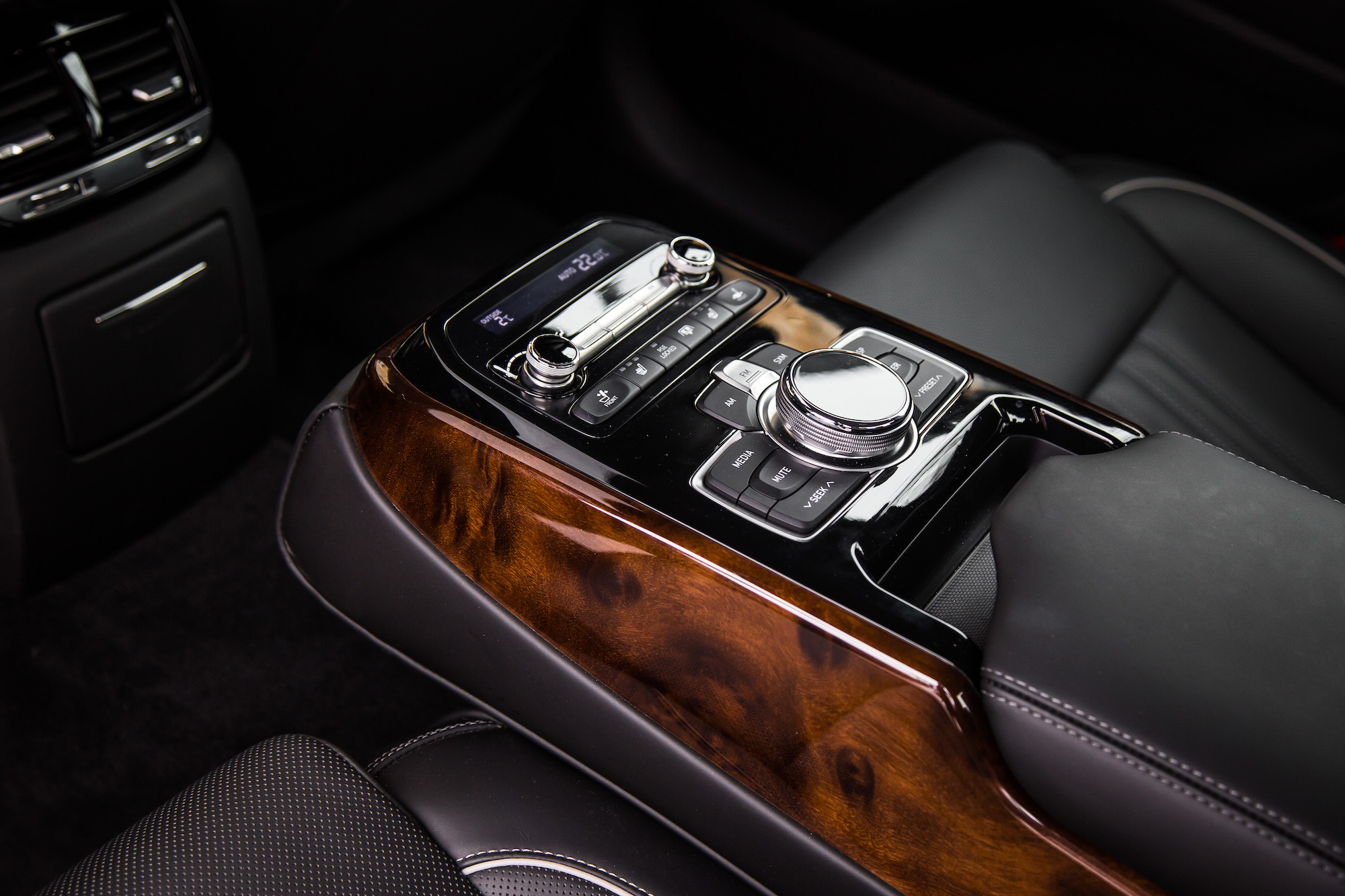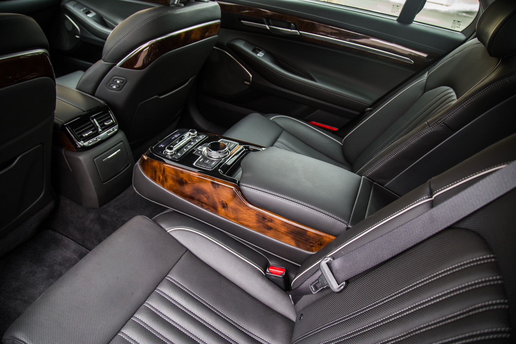 However the real gem of the G90 is in the back – hire a chauffeur because the two rear seats are something special. A control panel drops down from the center armrest to operate everything from the air vents to the side and rear sunshades. Disappointingly, there are no rear display screens but I assume the front display is so big you won’t need it. The rear right passenger can also adjust the front seat via the side bolster for some VIP leg-stretching treatment (think 750Li Executive Lounge, just without the elevated footrest).