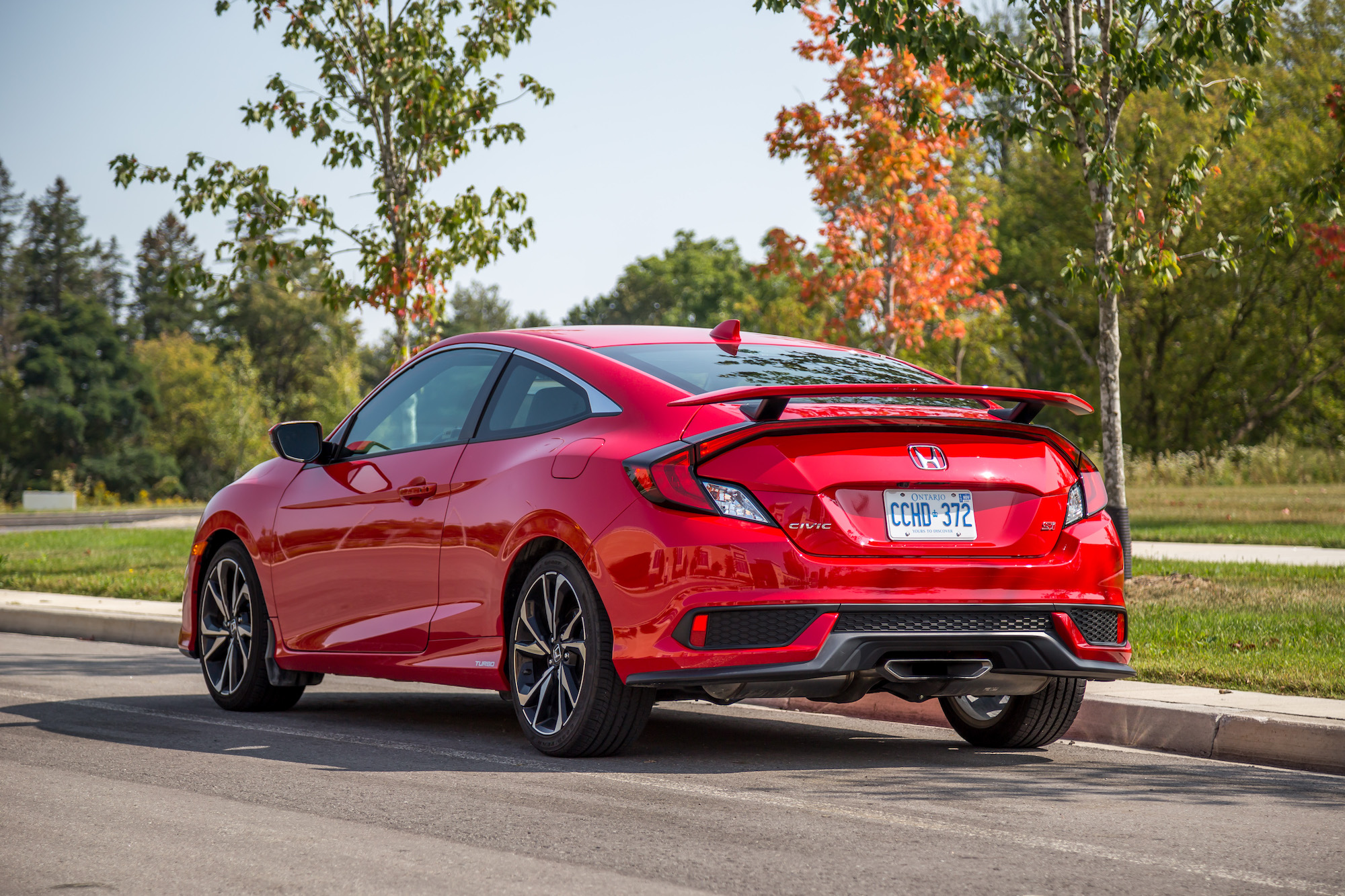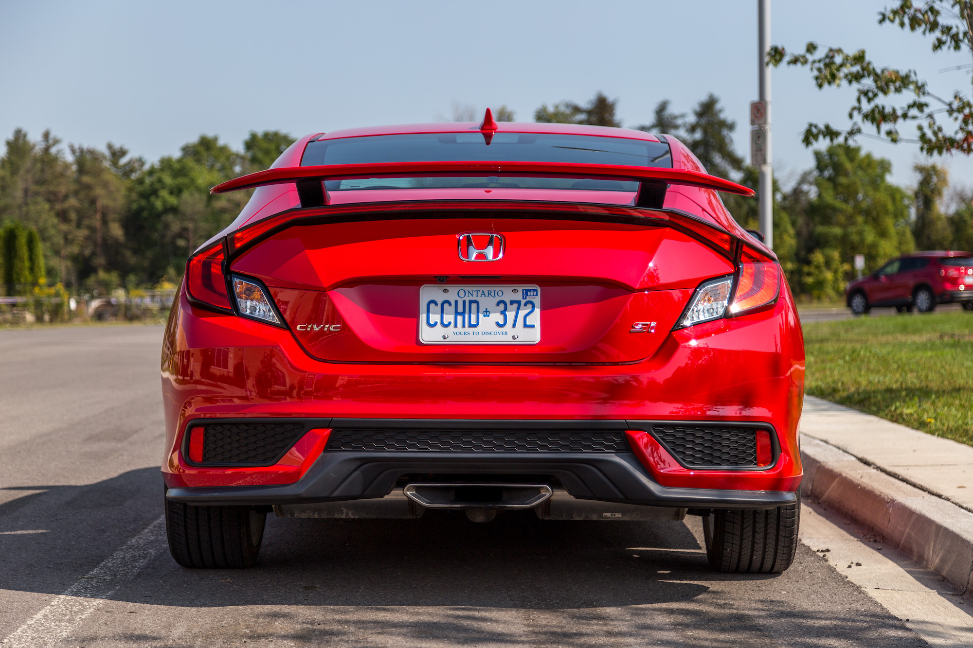 The Civic Si uses the same engine as the Civic EX-T and Touring trims, a 1.5-litre turbocharged inline-four, but the Si beefs it up with bigger turbos and better exhaust flow, leading to a power bump of 31 hp and 25 lb-ft. Total output is now 205 hp and 192 lb-ft. That power is routed through a short-throw six-speed manual (the only transmission choice available) to the front two wheels. The Civic Si also weighs less and is more rigid than the outgoing model. It’s fitted with a sports suspension, a variable electric powered steering rack, two-mode adaptive dampers, a helical limited-slip differential, larger front brakes, and wider 18-inch tires.