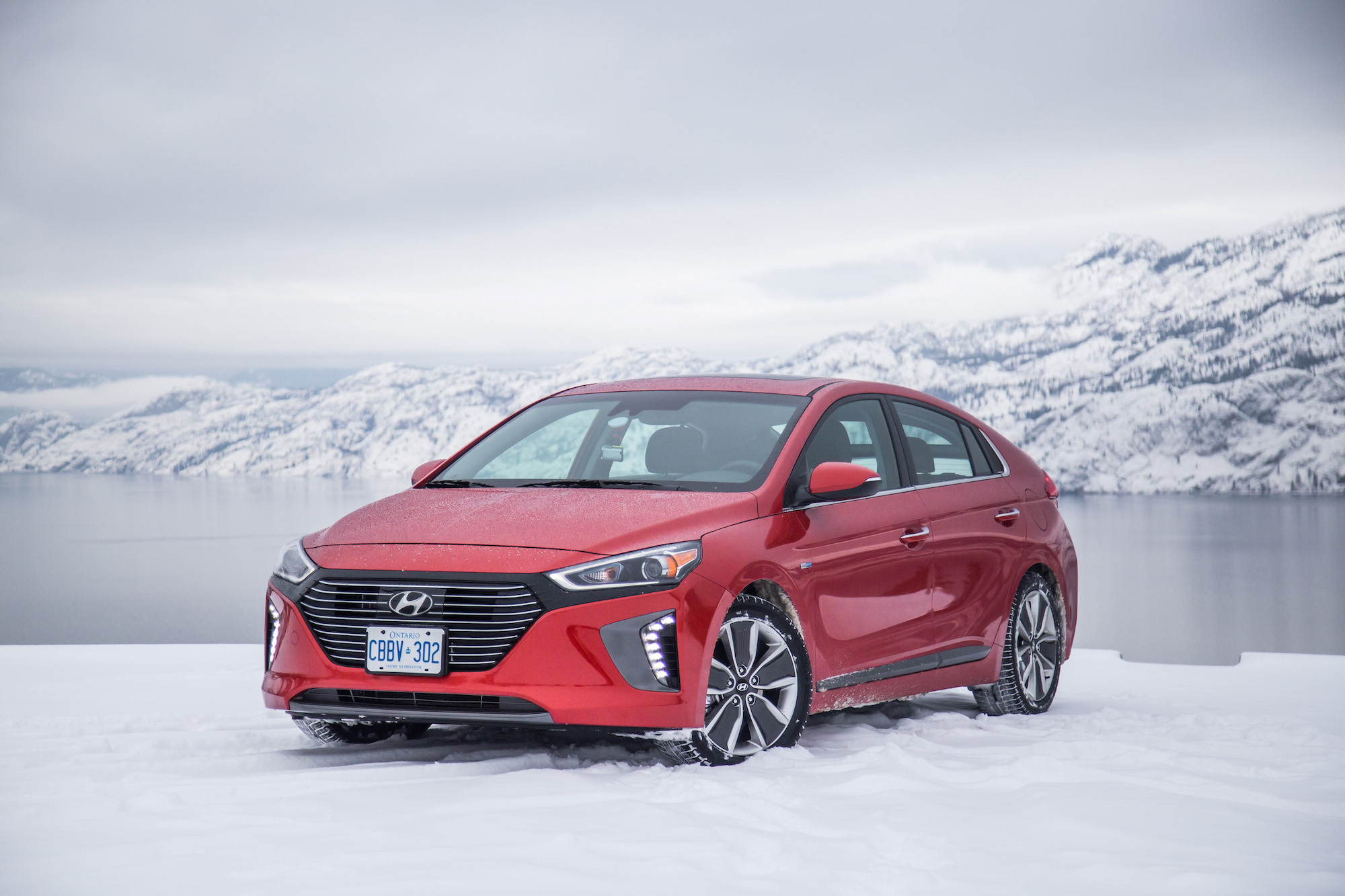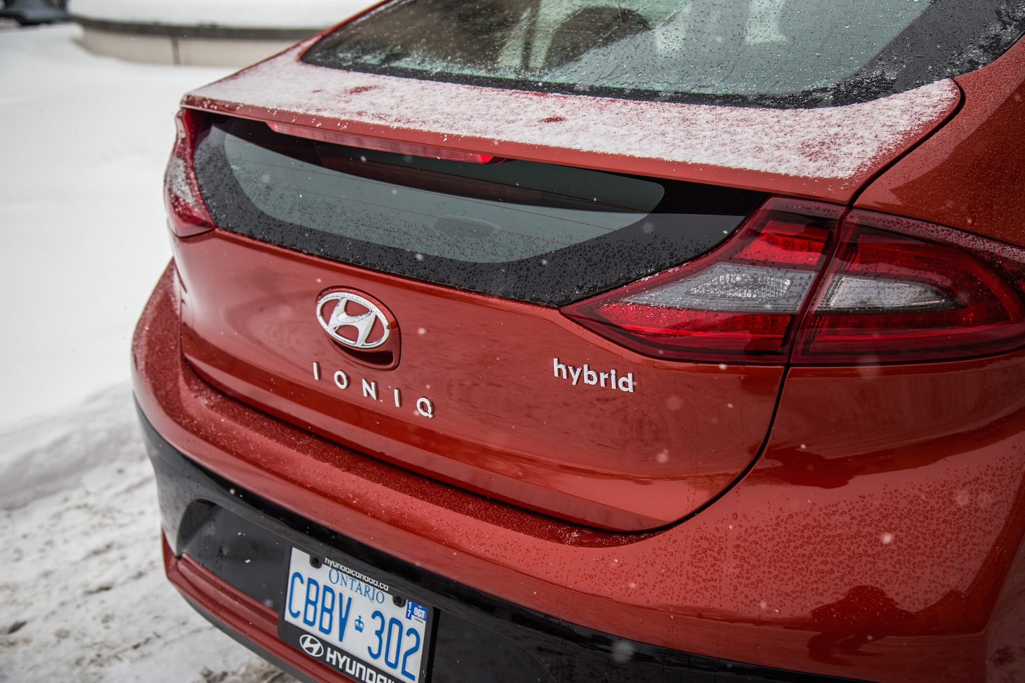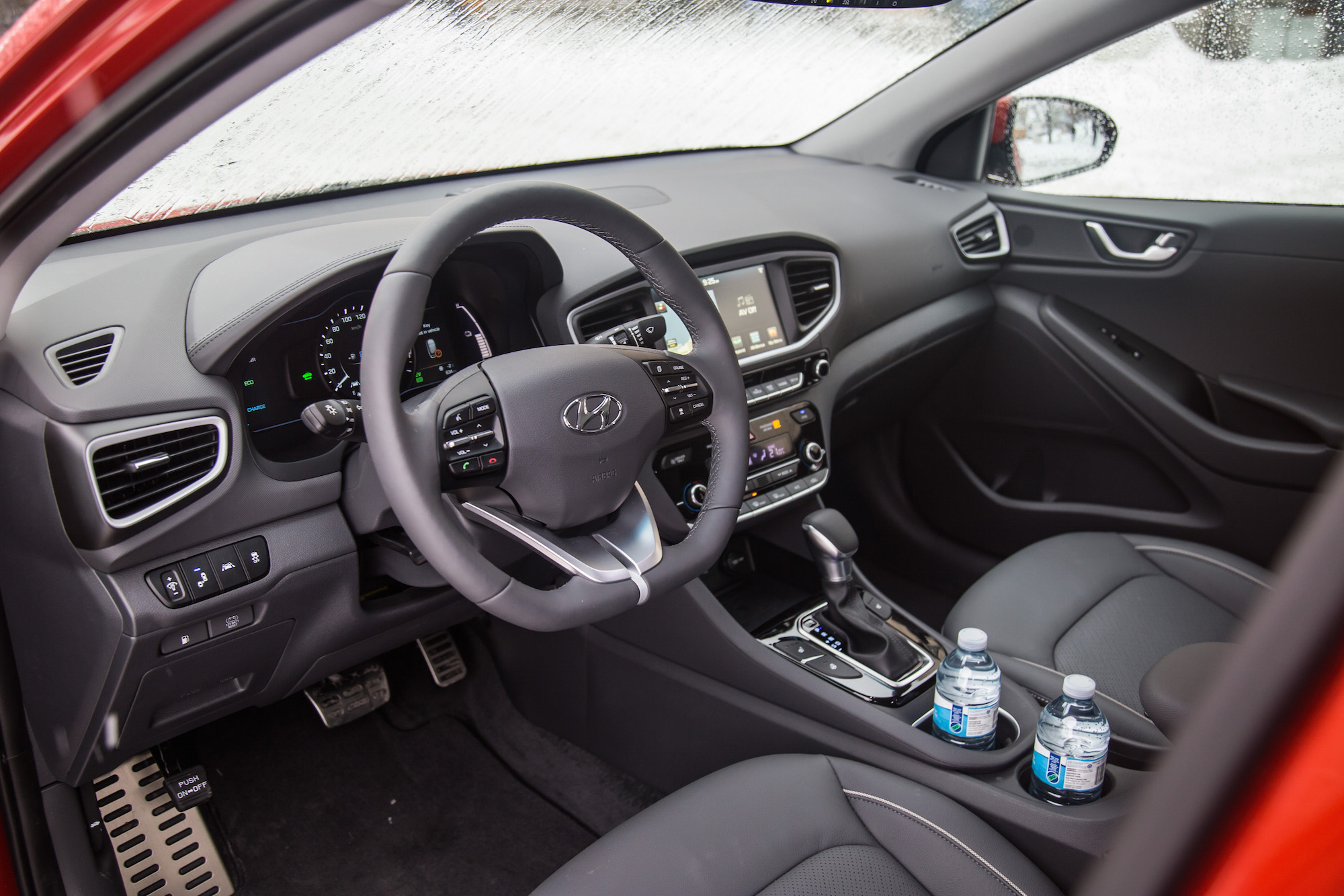 While the snowy weather conditions were far from ideal, we were able to get some decent first impressions of the Ioniq. We hopped into a bright orange Hybrid first, and slid away towards the many wineries that engulf the west coast.