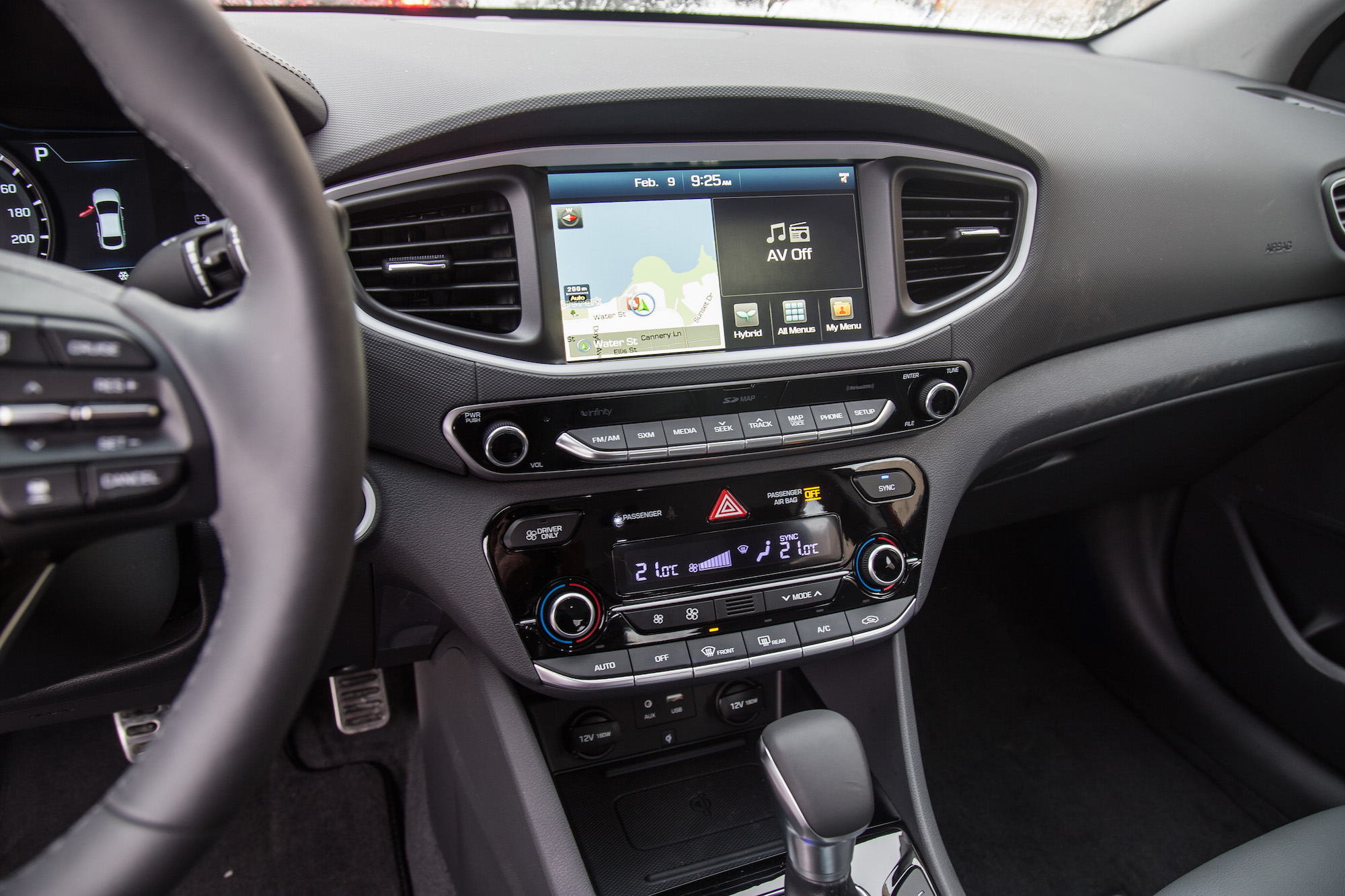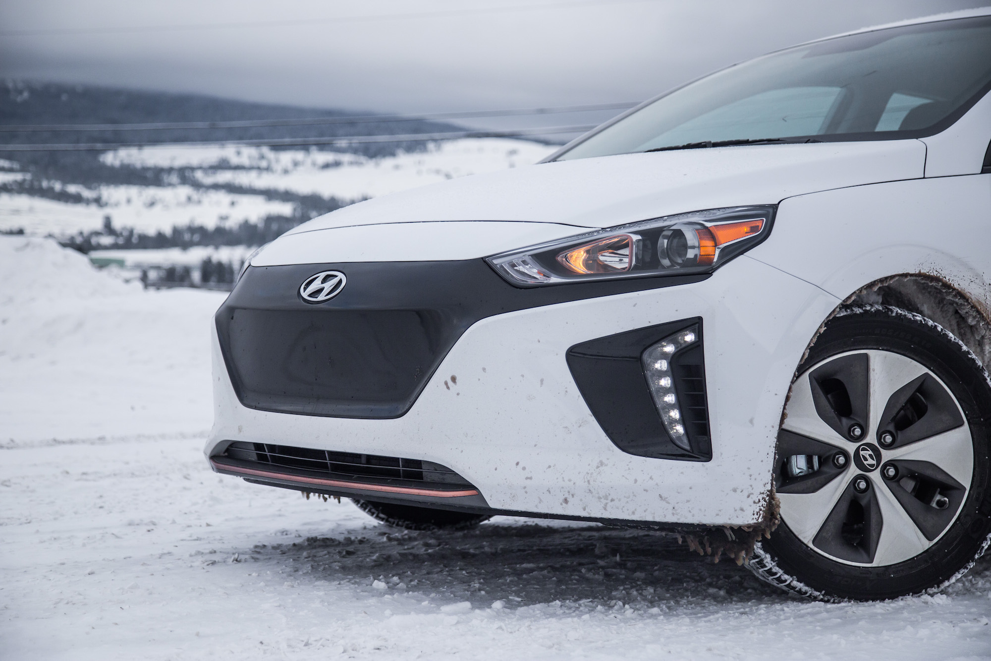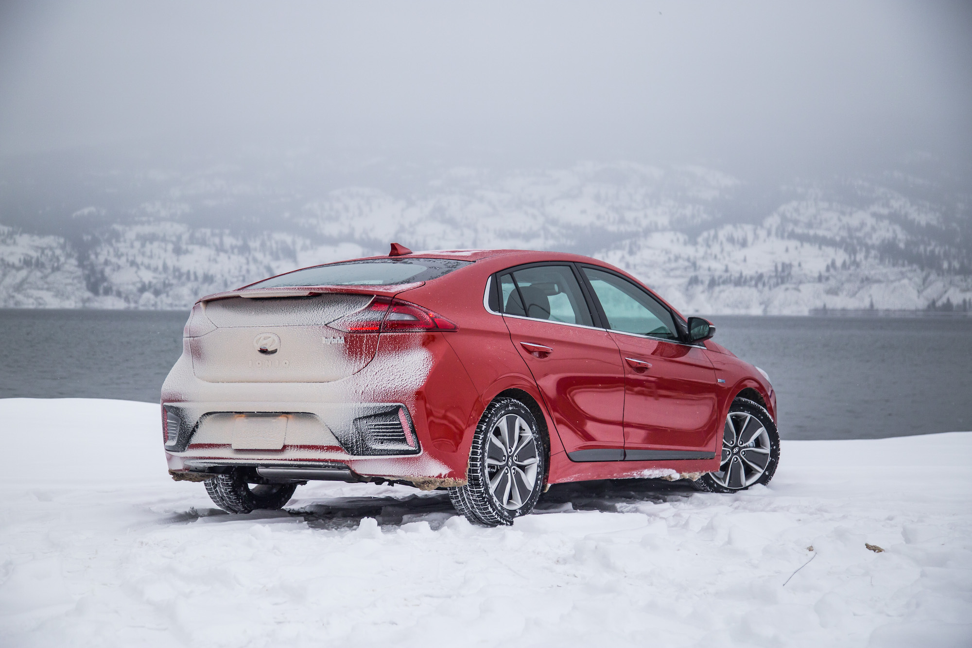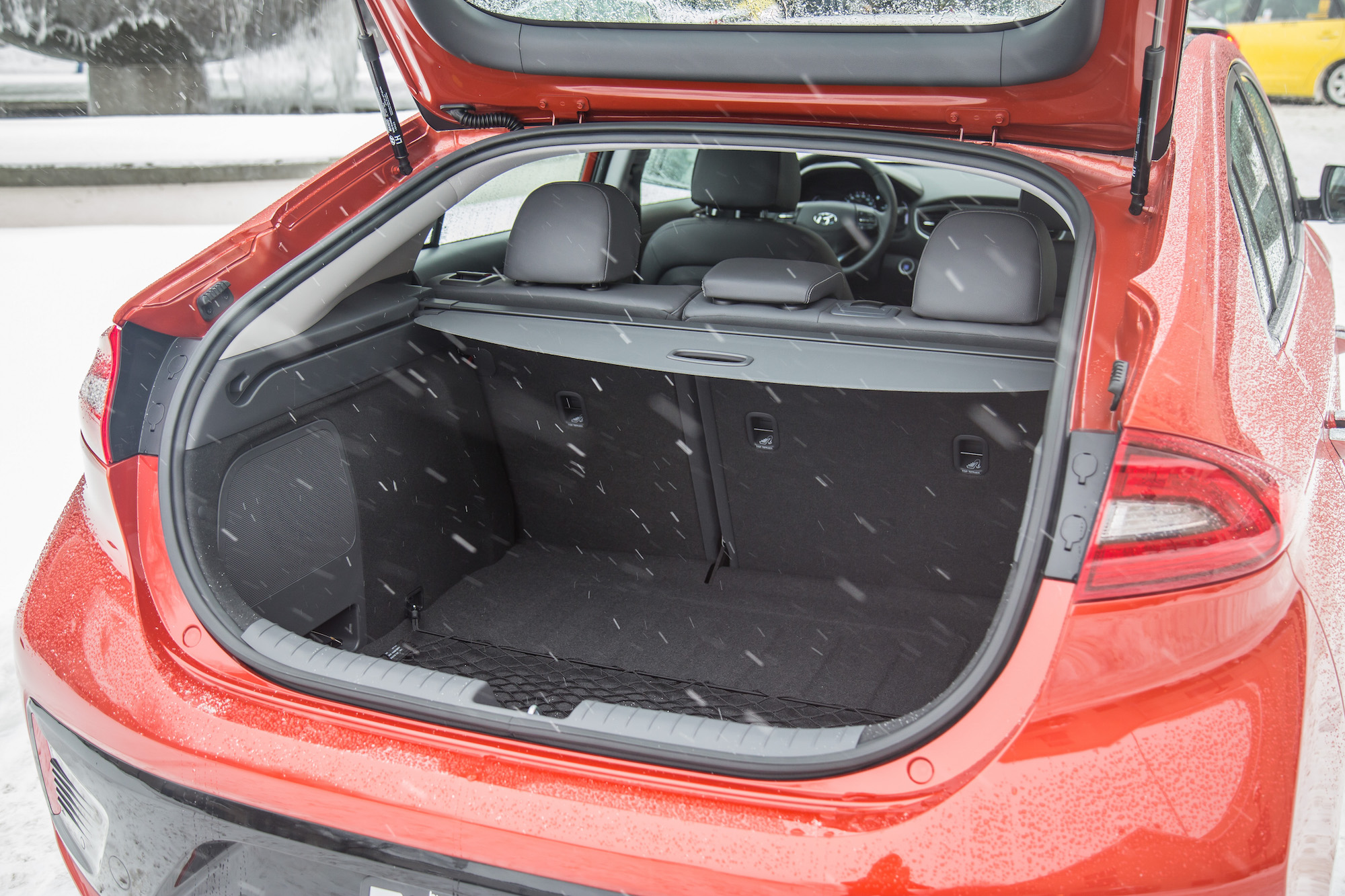 While the snowy weather conditions were far from ideal, we were able to get some decent first impressions of the Ioniq. We hopped into a bright orange Hybrid first, and slid away towards the many wineries that engulf the west coast.