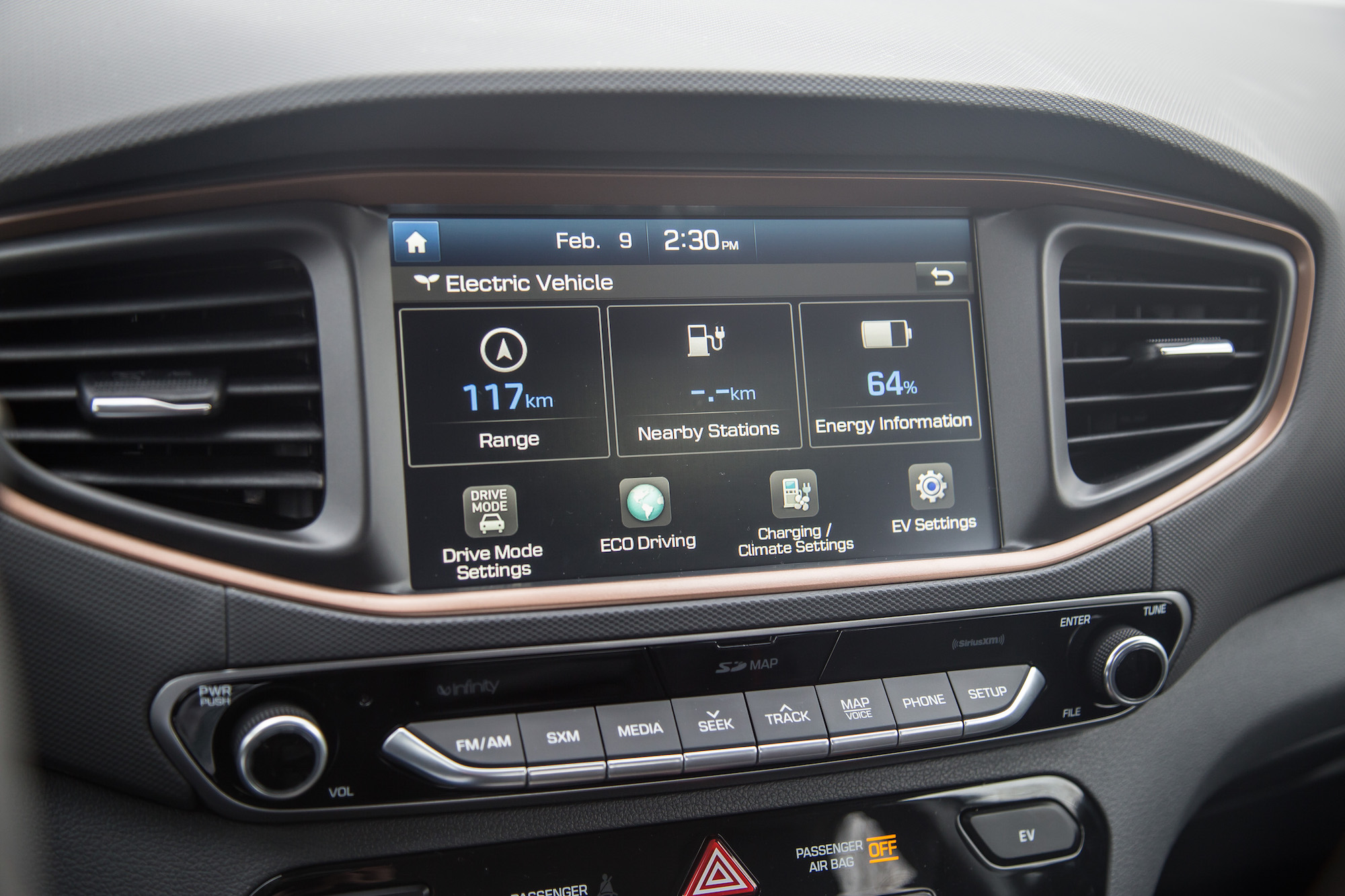 Hyundai has done a phenomenal job cleaning up the interior, and though the materials aren’t of the highest quality, they are made from eco-friendly and recyclable sources. It also matters where it counts – soft leather on the gear shifter and steering wheel, without the obligatory futuristic vibe emanating from every panel and gauge.
