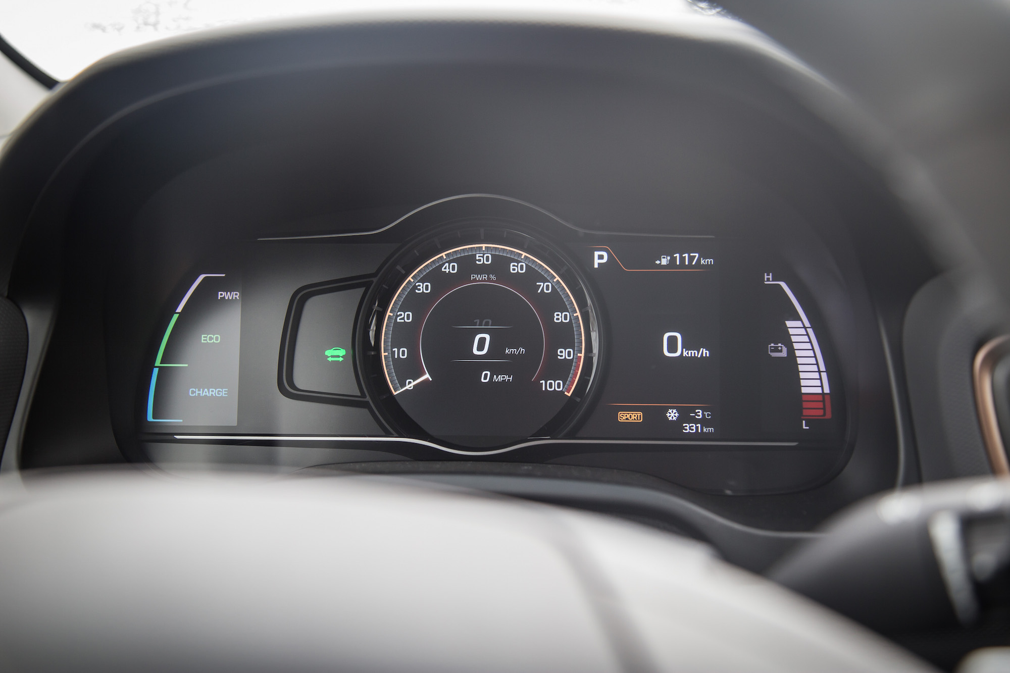 This also engages Sport Mode, remapping the transmission to delay shifts, increasing the steering ratio and responsiveness, and changing the digital instrument cluster to a sportier theme. The electric motor also provides a little bit of extra assistance, making the Ioniq feel livelier.