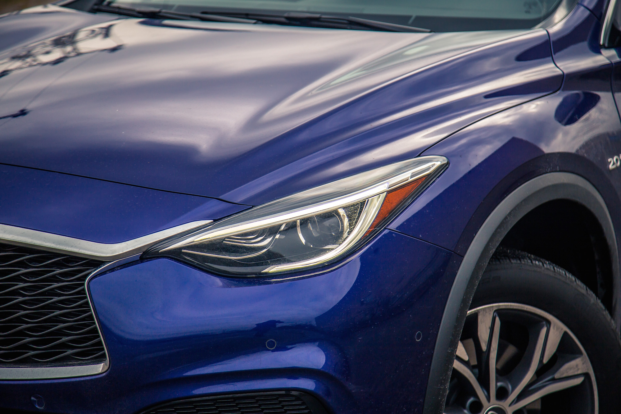The QX30 uses the same engine, transmission, platform, all-wheel drive system, and interior buttons and knobs as its GLA counterpart. That means under the hood is a 2.0-litre turbocharged four-cylinder delivering 208 hp and 258 lb-ft through a 7-speed dual clutch transmission.