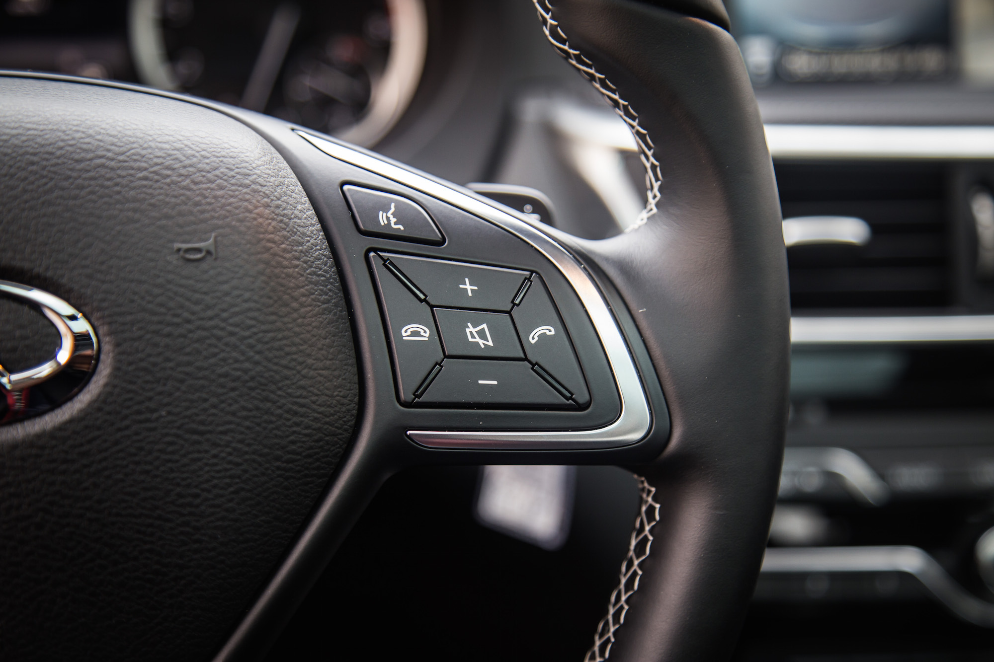 Whereas the exterior is distinctively Infiniti, the interior is where remnants of the Daimler relationship begin to show. The switches, knobs, steering wheel, and even the center gear shifter are all plucked straight from the GLA. Infiniti has done a nice job of cleaning it all up though with its own unique touch.