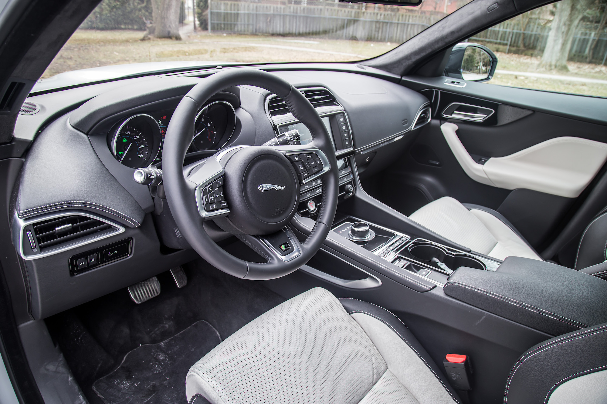 The interior keeps its English charm with signature Jaguar design cues like the rising rotary gear dial and swooping dashboard. The steering wheel, though too concave for my liking, feels nice to grasp and all the buttons and dials are within ergonomic reach.