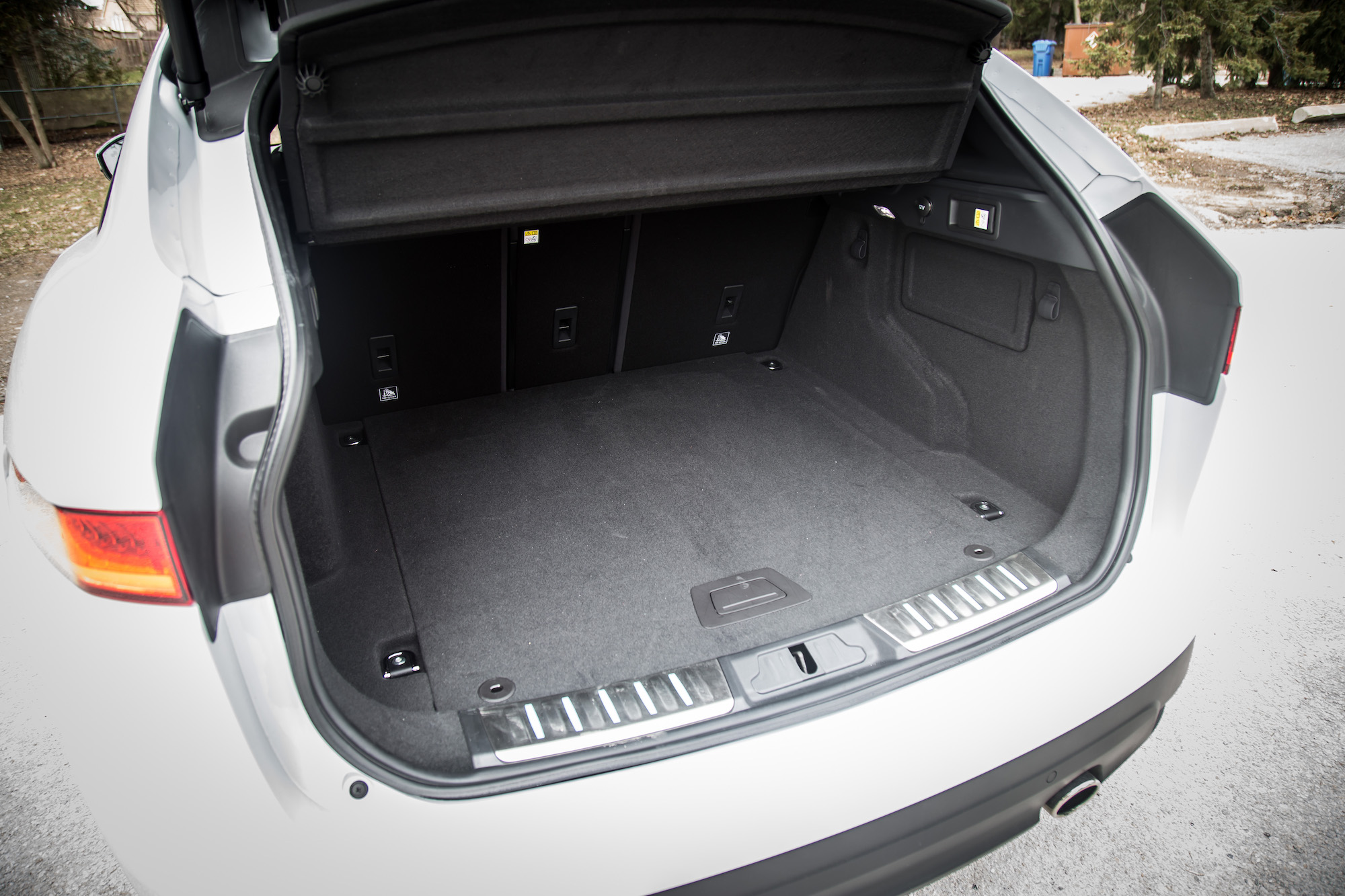 The V6 is tame at low speeds – it’s quiet and collected, just the thing you want in a luxury crossover. But give it some gas and the blown V6 really begins to howl at the higher RPMs. To add to the drama, the exhaust sings a raspy note, just like the seductive F-Type but without the pops and bangs. Forward propulsion is near instant and it certainly doesn’t feel 40-hp slower than the S model we tested a few months back.