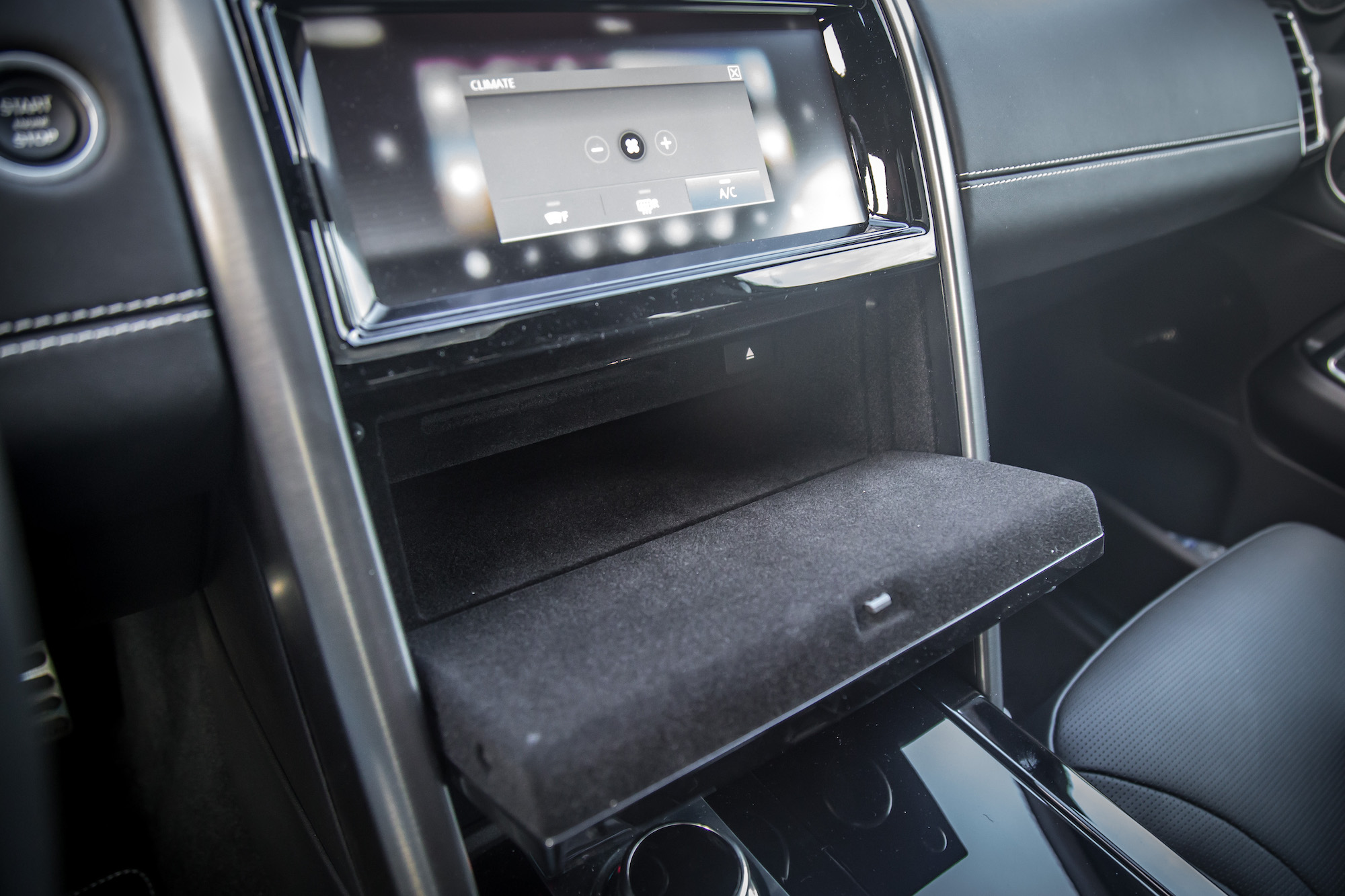 Storage space is also heavily improved over the outgoing LR4. The side cubbies are much bigger, the HVAC control panel in the center stack can be ejected to reveal a hidden cubby behind like the outgoing Escalades and Tahoes with their “drug cubby”. There are also many dedicated vertical slots for smartphones lingering around the center console as well, and six 12V power sockets and nine USB charging points that are spread throughout the cabin to ensure every passenger has maximum connectivity.