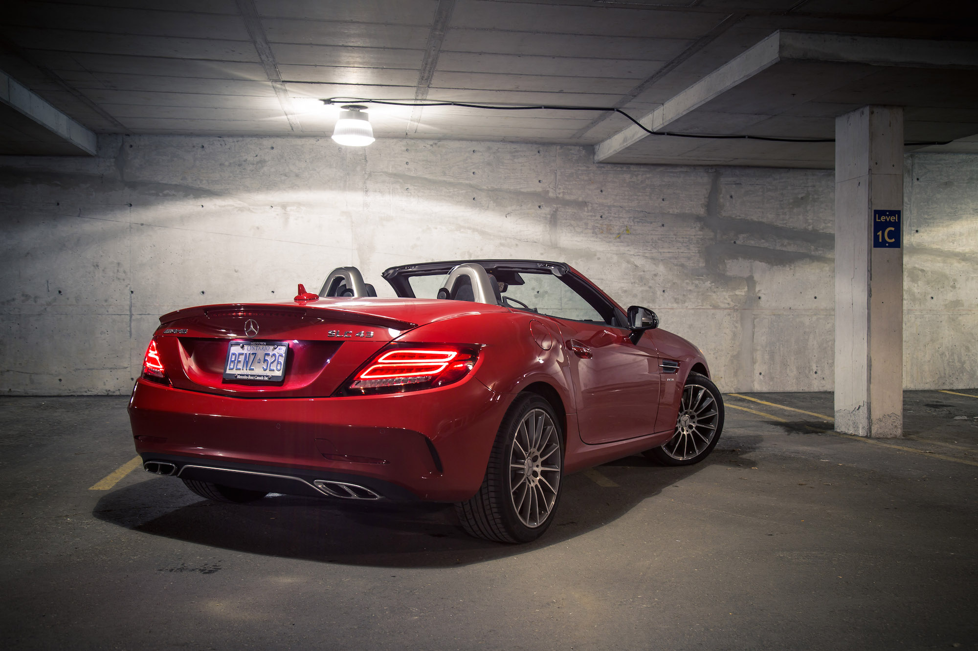 To me, the SLC is more of a stylish weekend getaway machine. Rather than drawing appeal from buyers wanting to carve switchback roads, the SLC attracts an audience that wants a practical hardtop roadster that embodies the perfect ratio between comfort and performance, and all it takes is a few buttons to swap between them. Go ahead. Let the exhaust flaps open, and pull that roof down. Cruising in style and refinement is what the SLC was made for, no matter the name, no matter the weather, and no matter the road.