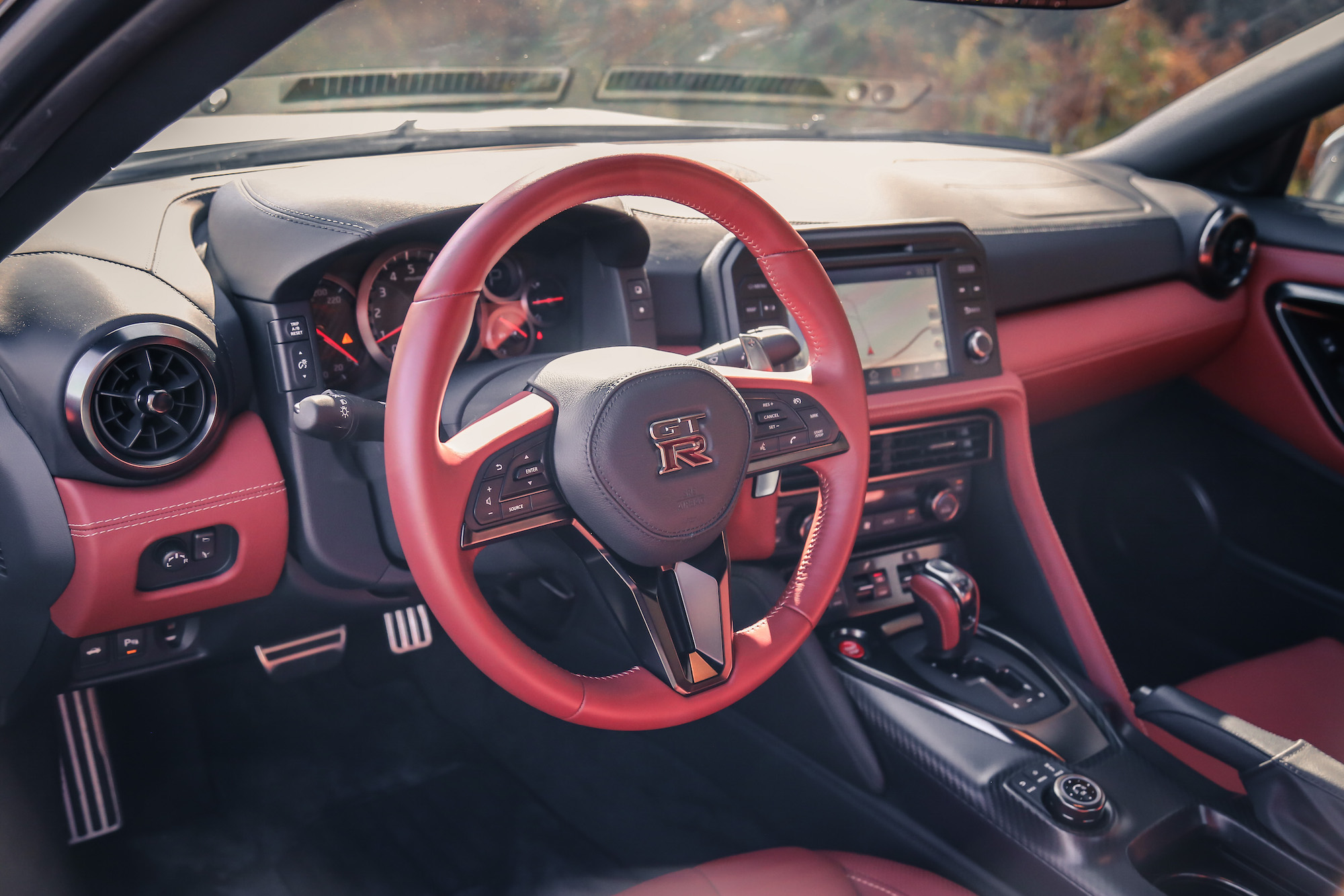 The entire dashboard is brand new, with Nappa leather gracing every surface it can find. Buttons, knobs, and switches will look familiar if you’ve been in a modern Nissan Maxima, but it never looks cheap or out of place. The three-spoke steering wheel has also been put under the knife, sporting a handsome new design with the paddle shifters mounted to the wheel itself instead of the column.