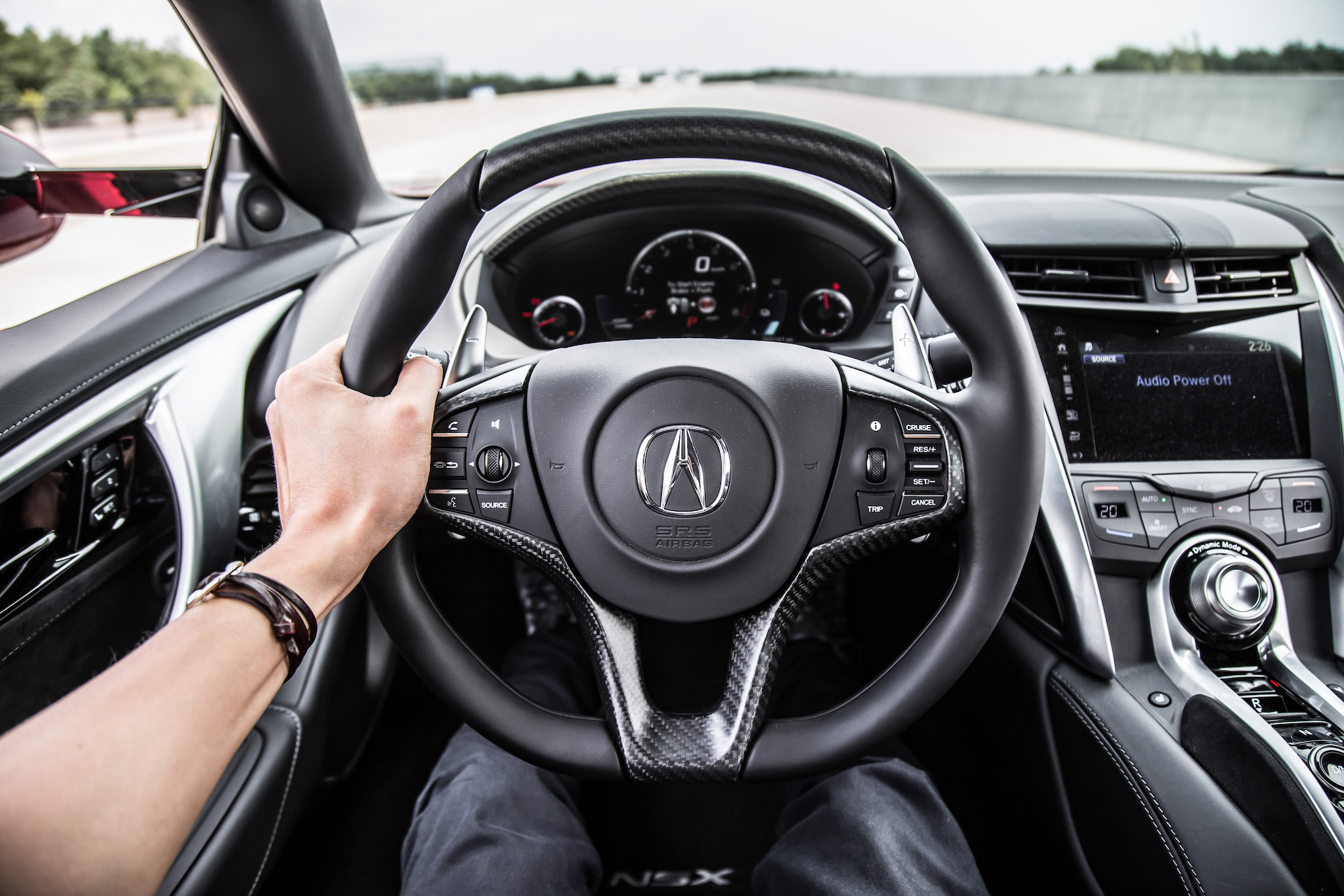 Compared to its main rivals, the NSX does not sound that great either. The trick exhaust emits a decent grunt and baritone growl that reverberates and excites the cochlea, but it does not come close to the lion’s roar of the Ferrari or the flat-plane crank howl of the McLaren’s V8. The NSX soundtrack just isn’t distinctive enough and fails to be sonically unique – Hondas and Acuras of late just don’t can’t quite nail the exhaust down, the same goes for the new Civic Si and Civic Type R. When viewed alone as a V6 though, the noise is impressive, but not $200,000 impressive. On the bright side, none of the exhaust is artificially piped through the speakers for those worried about auditory trickery: Acura only utilizes a tube that draws sound noise from the engine bay and directs that sound back into the cabin. So what you’re hearing isn’t an mp3 file, it’s the true engine noise. Kudos to that, but you can listen to our Exhaust Notes video to hear it for yourself.