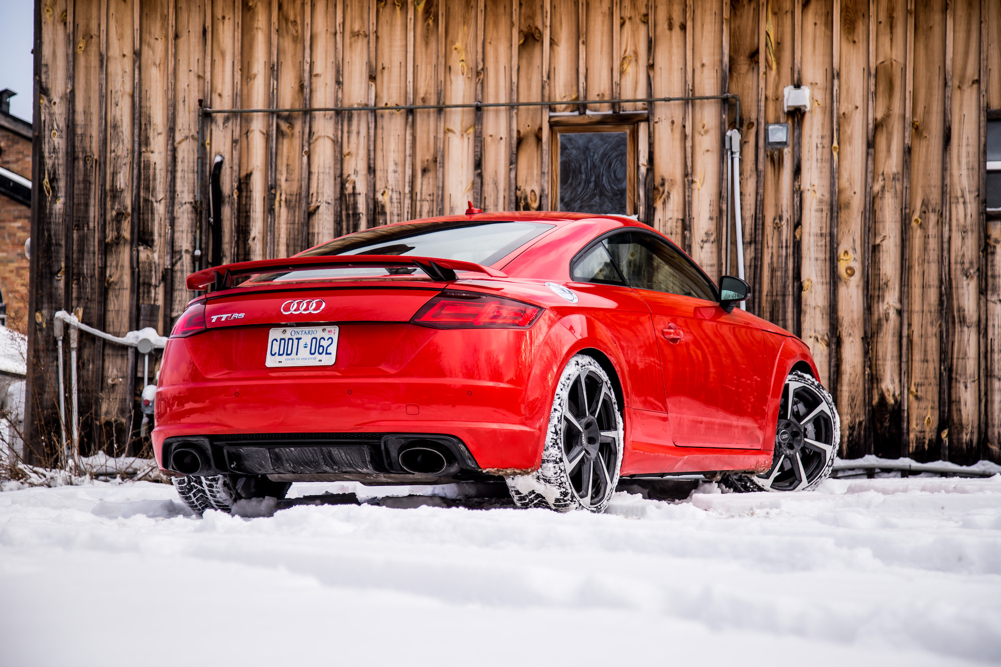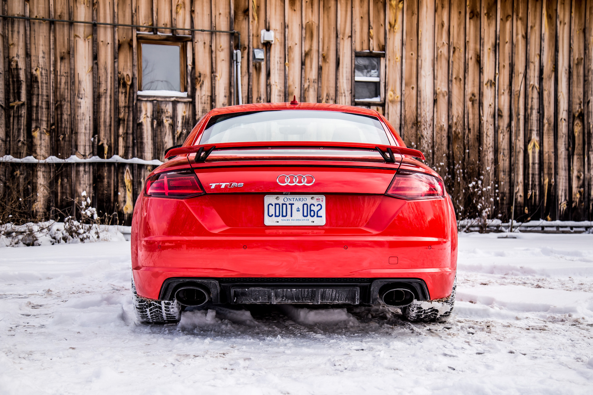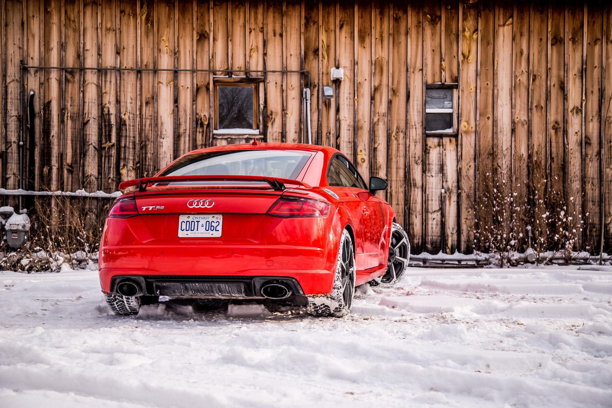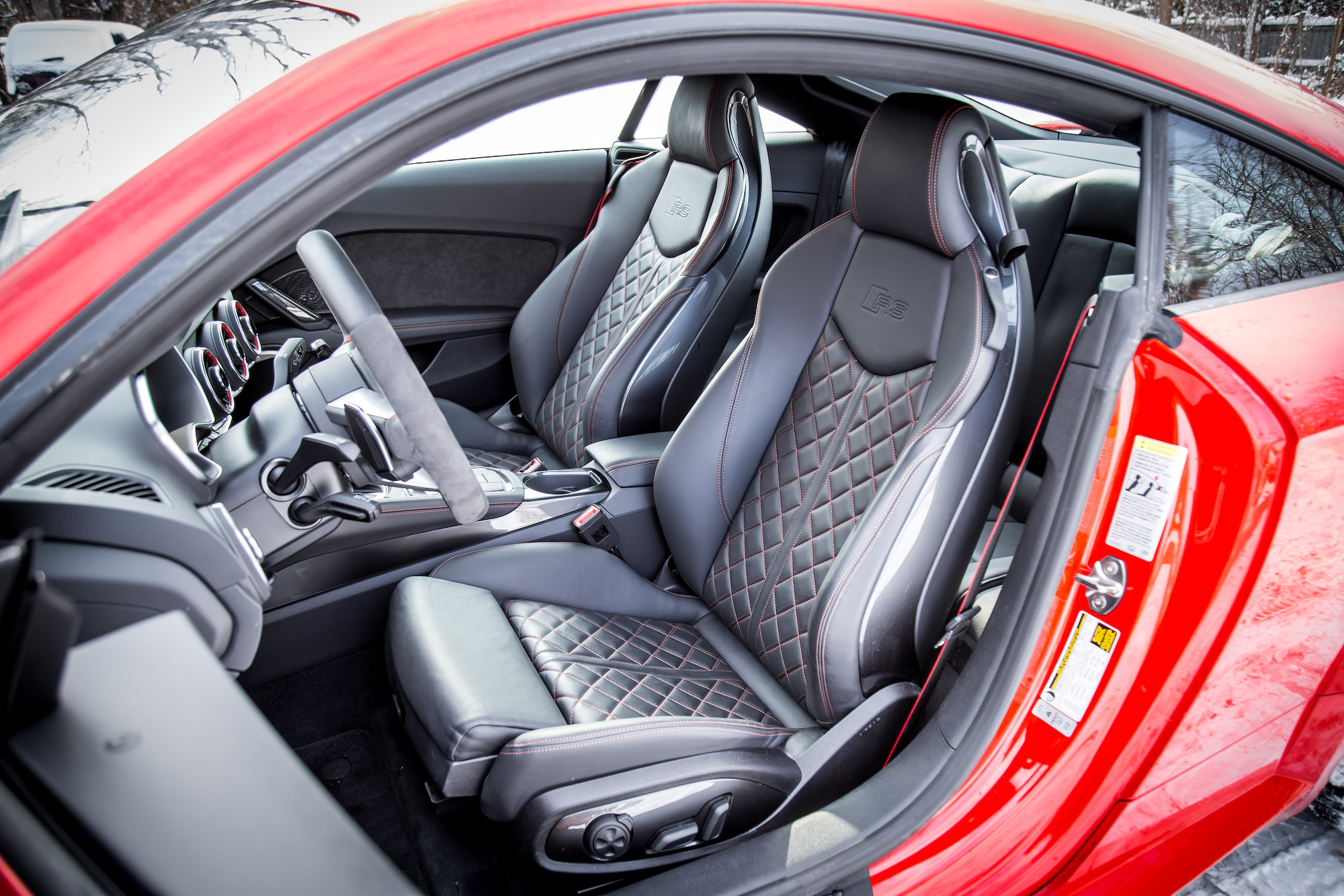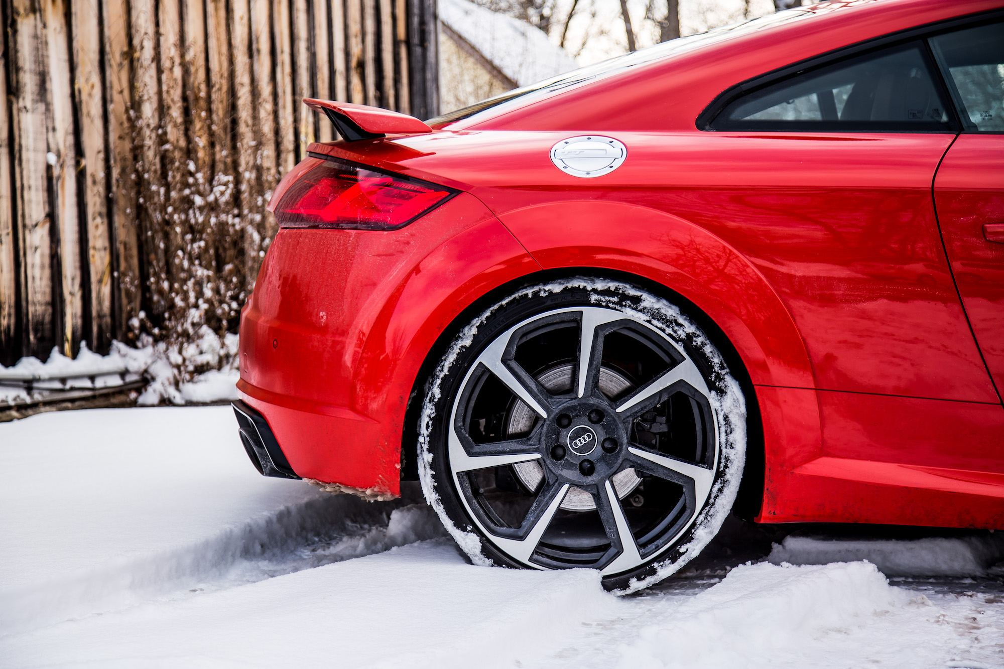And the same goes for cornering too. Like the Golf R’s 4MOTION, the quattro system is technically full-time AWD, meaning it sends power to all four wheels all the time, but most of the power by default is sent to the front wheels. Enthusiasts may bemoan this, but the TT RS can in fact send 100% of that power to the rear, and it does so willingly, just not often, adding to the car’s divine traction on slippery surfaces. Even with a blanket of fresh snowfall on the road, this Audi bites down without any hints of wheel spin and carries on its business as if the roads were dry. Getting it sideways takes a little bit of work but after adding some extra throttle mid-corner, its short wheelbase will happily oblige, rewarding you with grin-inducing drifts.