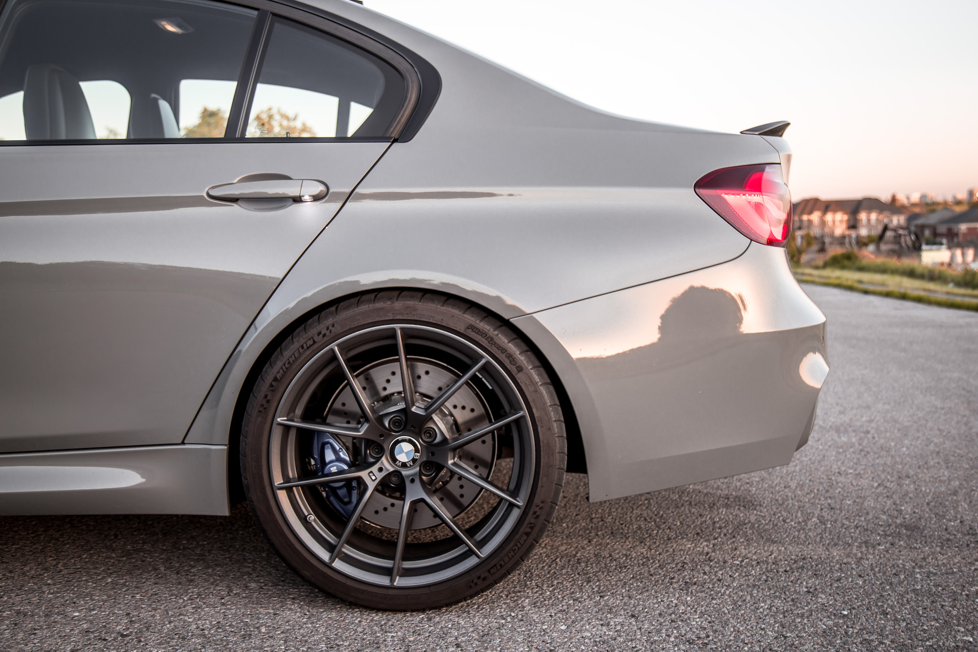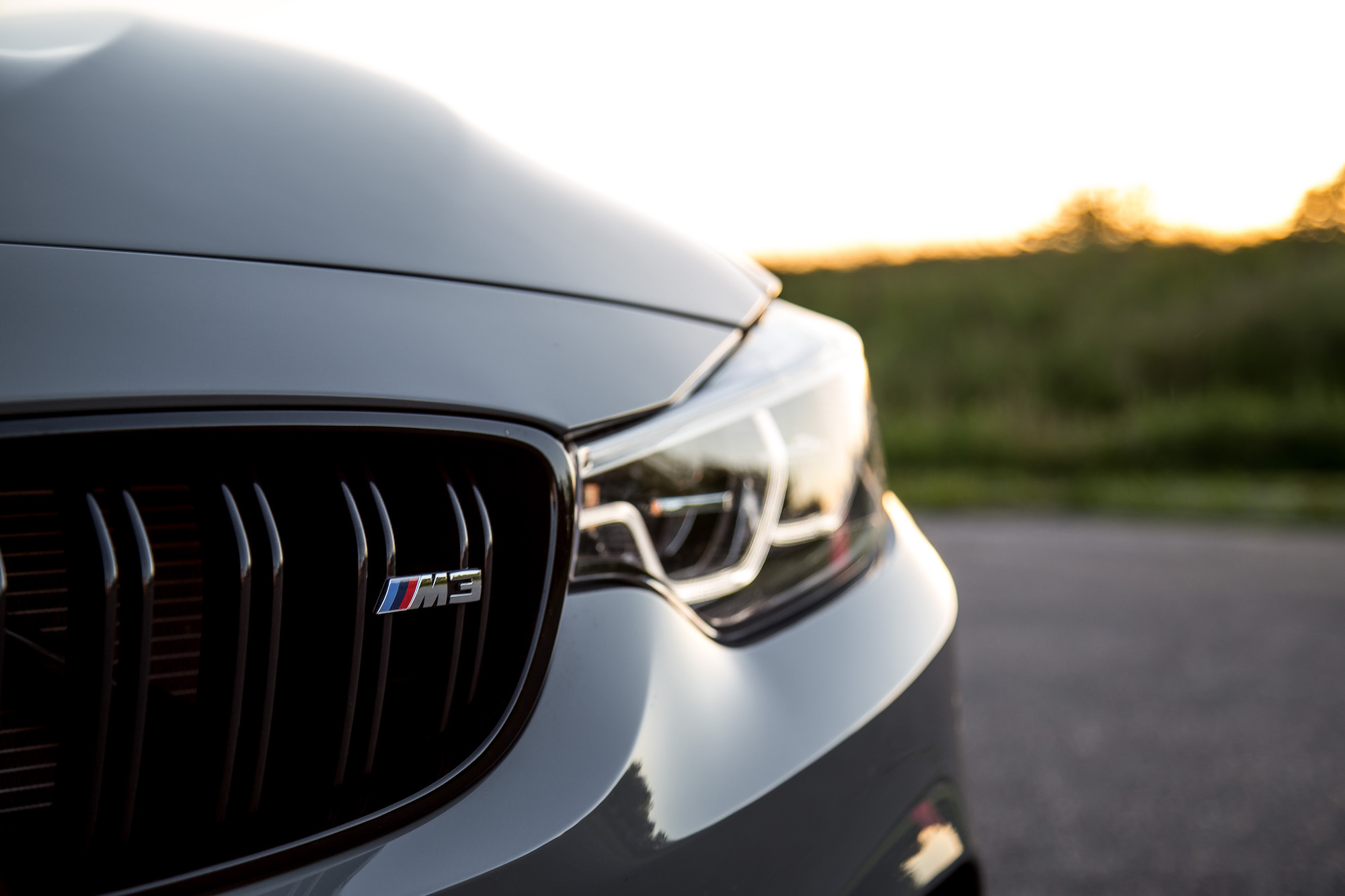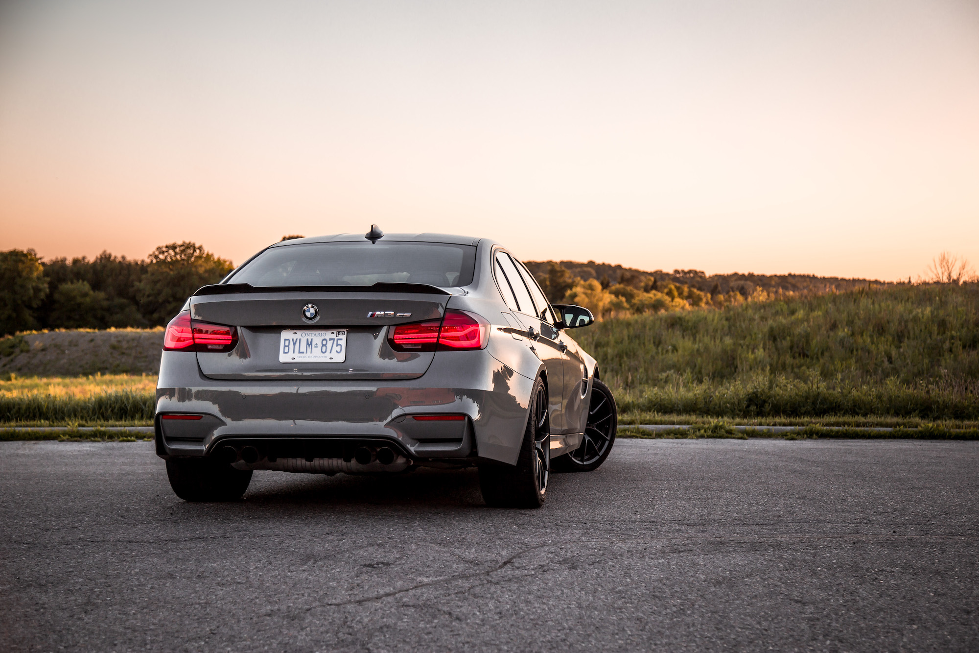 In CS tradition, the entire vehicle is put through a diet with an intensive use of carbon fibre reinforced plastic. The front hood itself is 25% lighter and the fixed carbon fibre roof saves another 6 kilograms while also lowering the center of gravity. But what the M3 loses it also gains in other areas with a carbon front splitter, lip spoiler, rear diffuser, newly developed ten-spoke alloy wheels inspired by the design of the BMW M4 DTM racing car, Michelin Pilot Sport Cup 2 tires, and some exclusive paint colours like the Lime Rock Grey in our photographs.