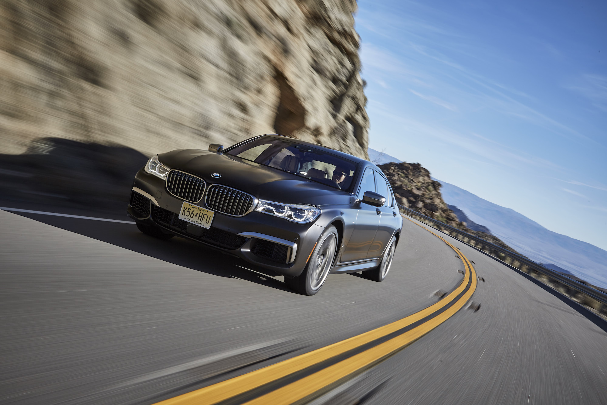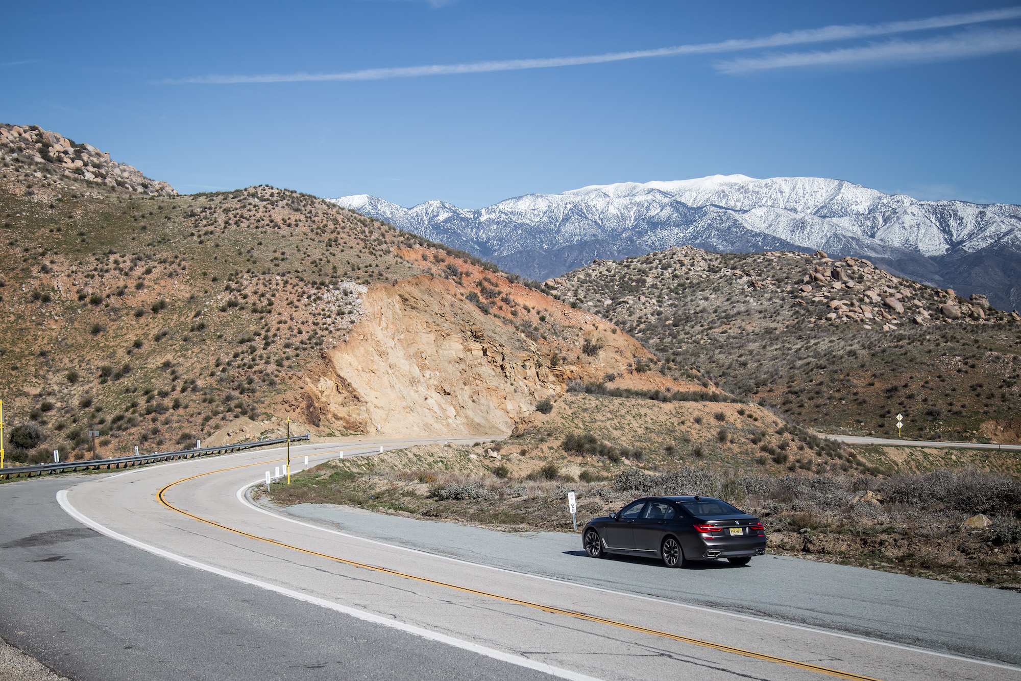 I was skeptical at first. Who in the right mind brings a 7 Series to a racetrack? It’s the last place you would find one of these cruise missiles, except in the parking lot reserved for airport limousines. Luckily (we had a huge breakfast), our first stint involved a cozy drive up the Palm to Pines Highway on the outskirts of Palm Springs.