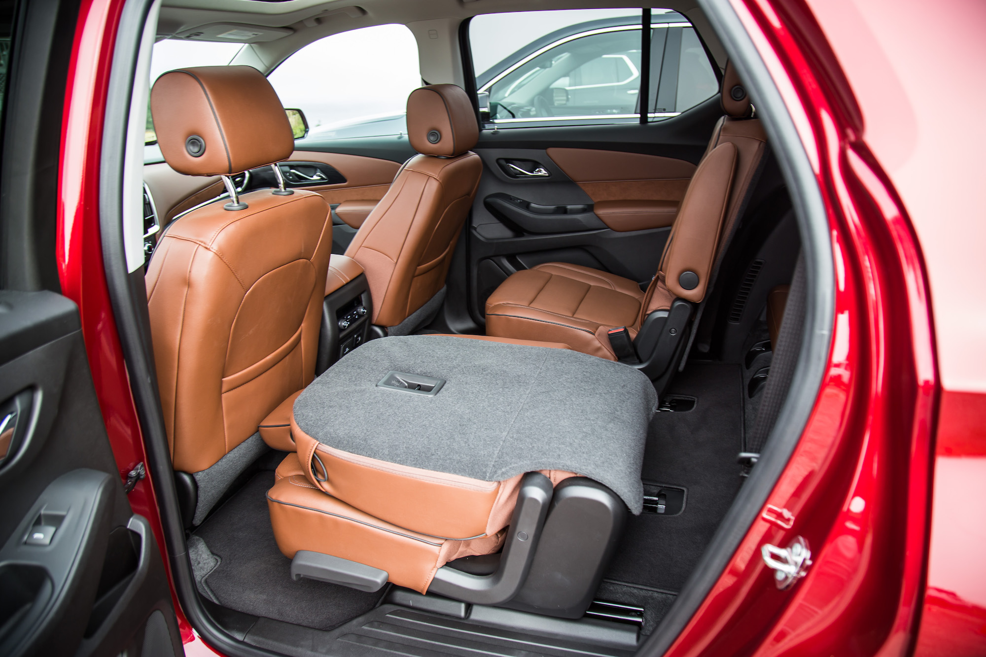 The Traverse offers a trim that appeals to everyone, ranging from the base LS ($34,990), LT Cloth, LT True North, RS, and Premier. There is also a new High Country trim ($58,590), which Chevrolet says is like the Denali of the GMC lineup. Sitting at the top of the Traverse food chain, High Country adds exclusive 20-inch polished wheels, Loft Brown leather interior, suede microfibre accents, twin-clutch AWD system, a power folding third row seat, and High Country badging on the exterior, floor mats, and headrests.